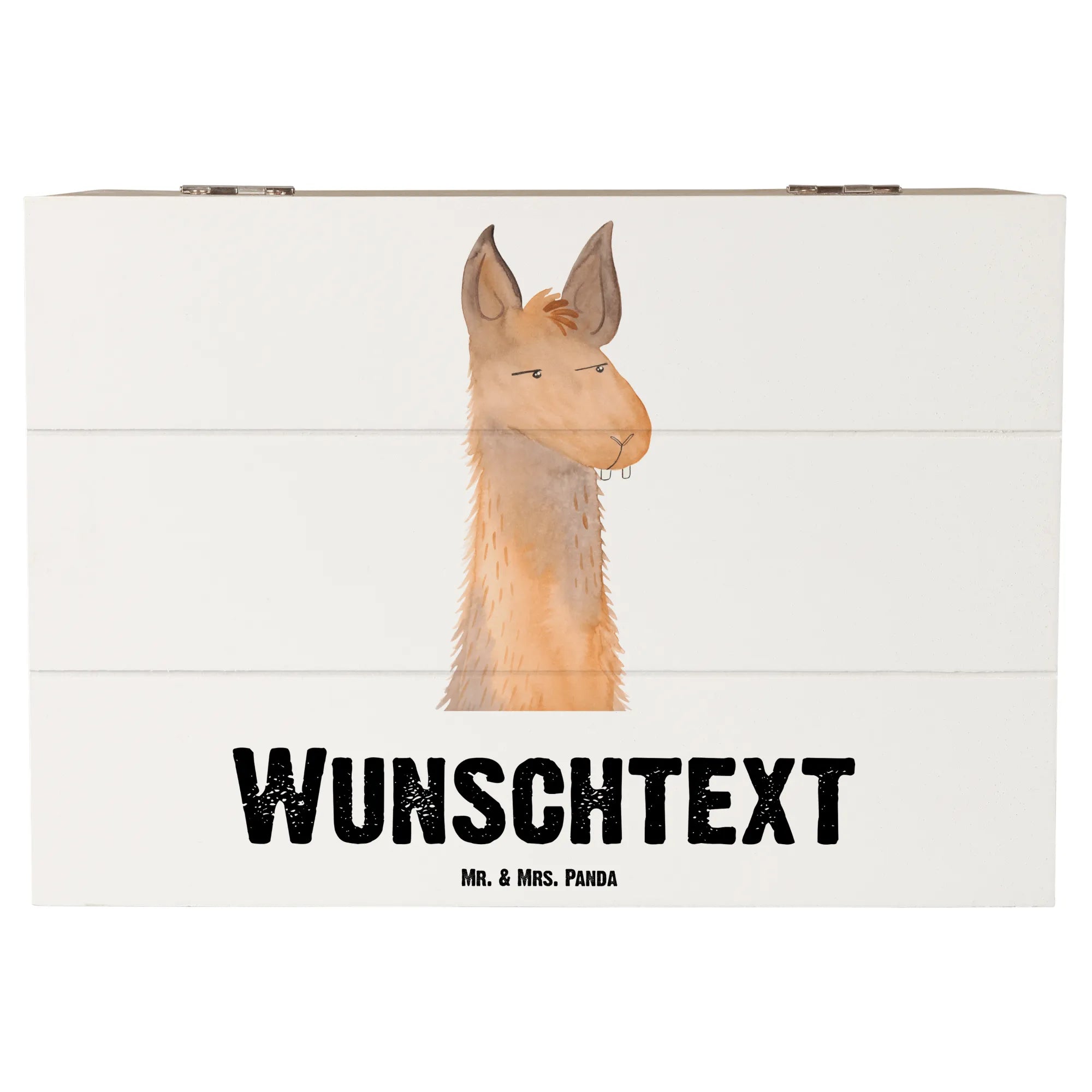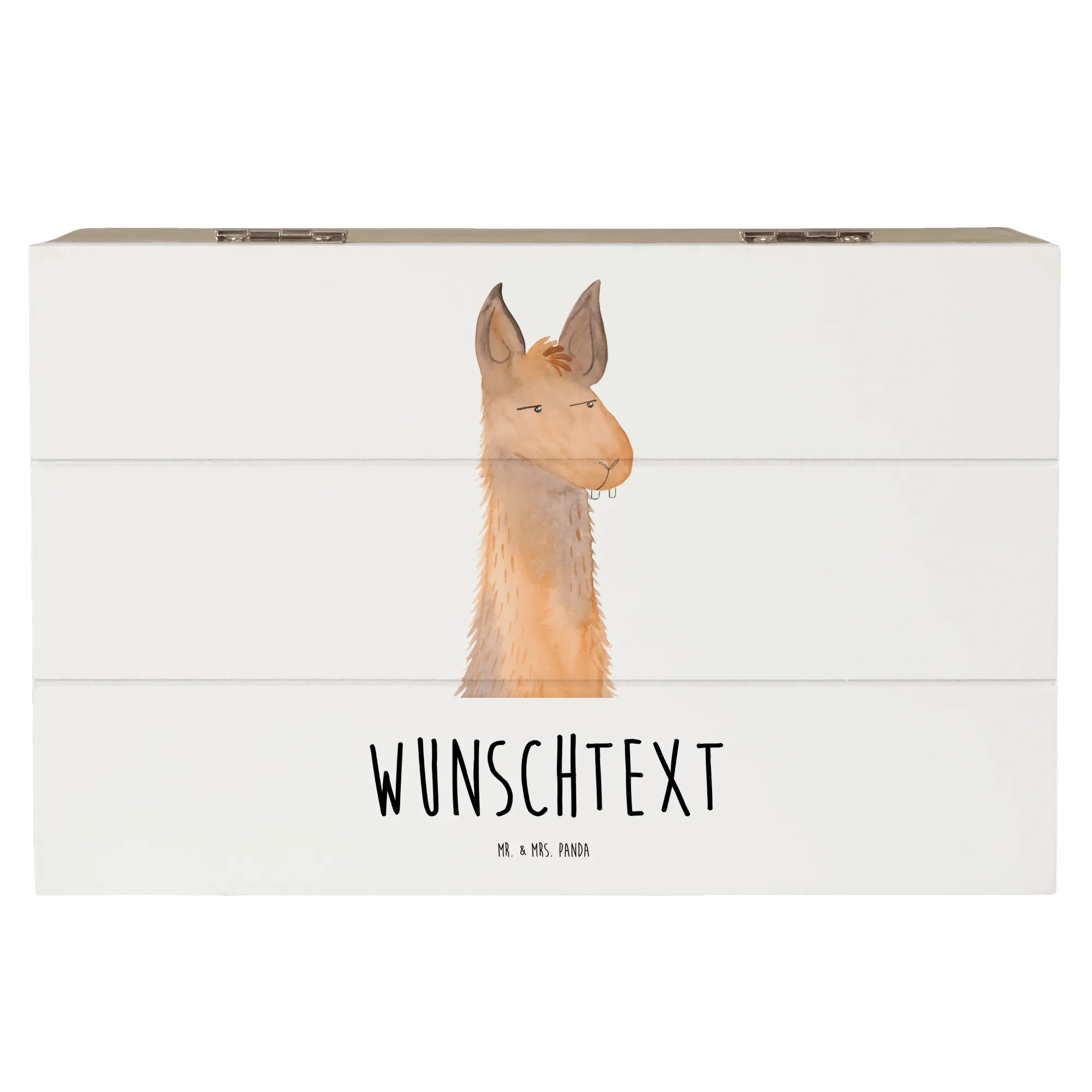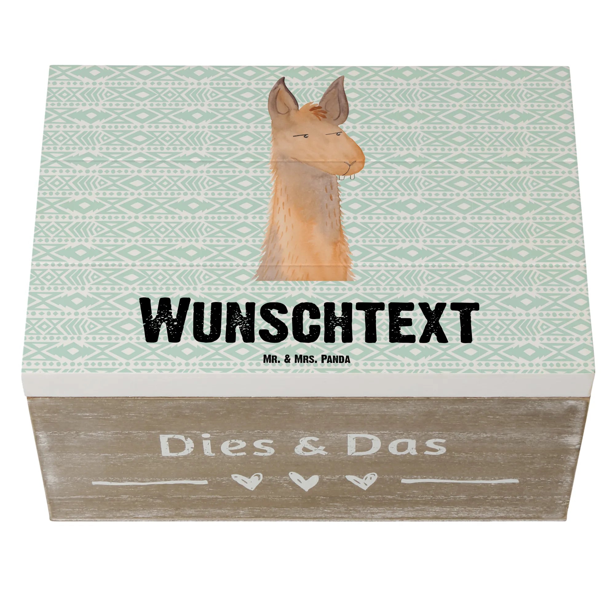 Personalised wooden chest llama head Annoyed - 22 x 15 cm - Aztec blue