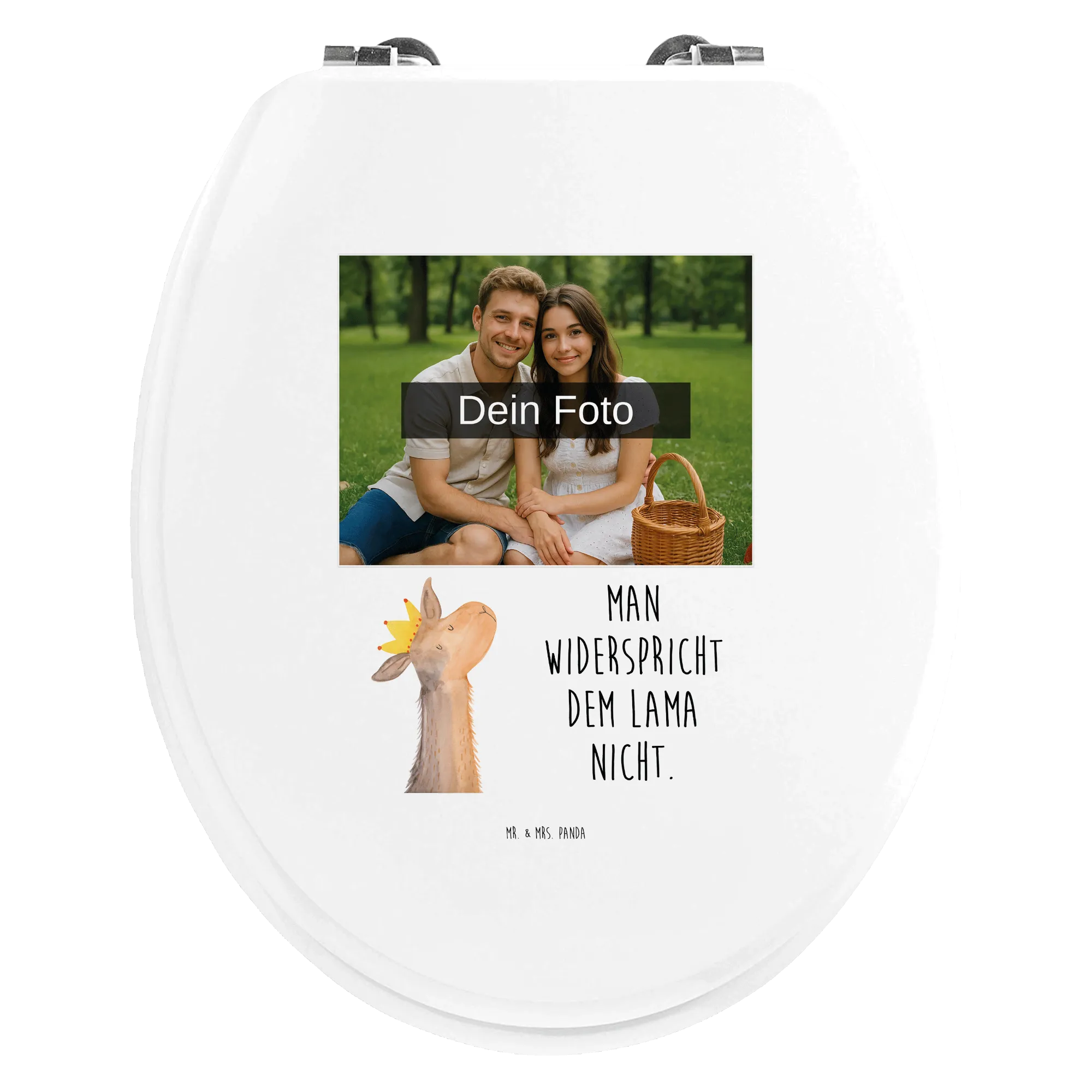 Personalisierter Foto WC Sitz Motiv Lamakopf König - Hartfaser Holzkern Weiß