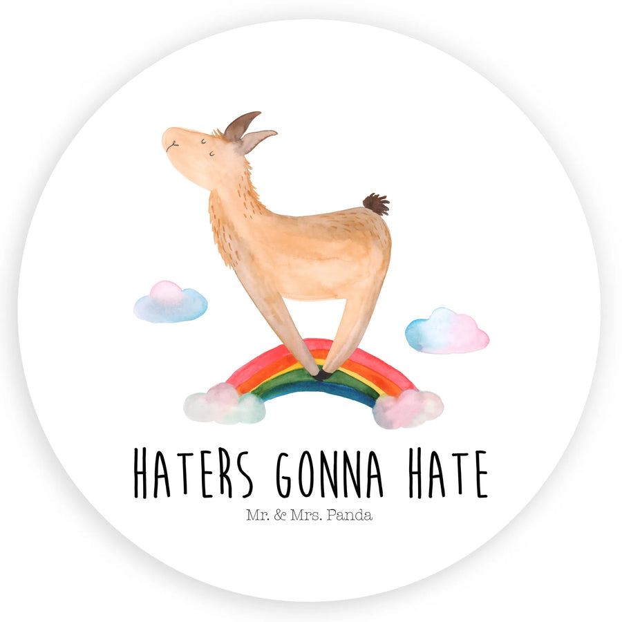 Round sticker lama rainbow - 80mm Round Sticker - with saying