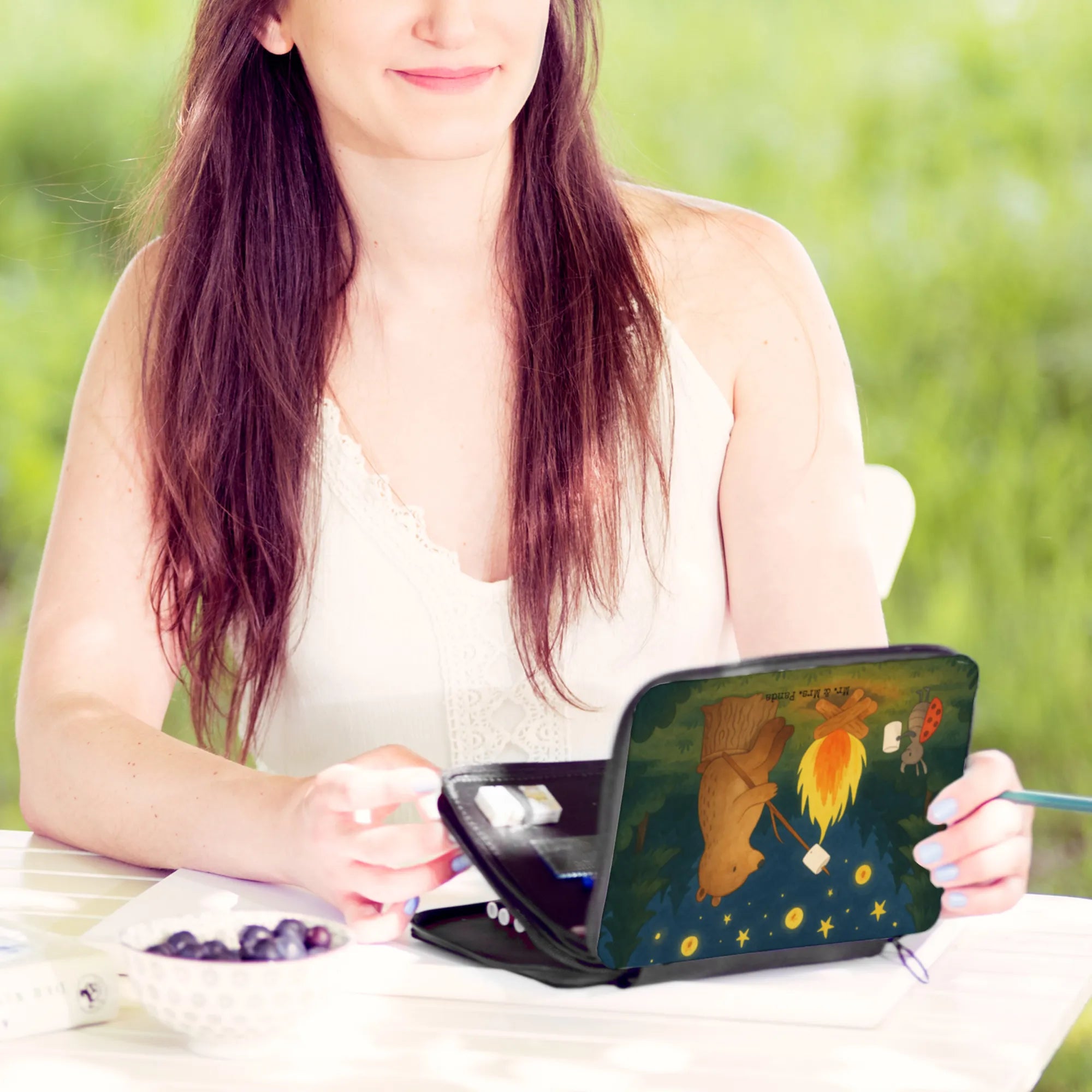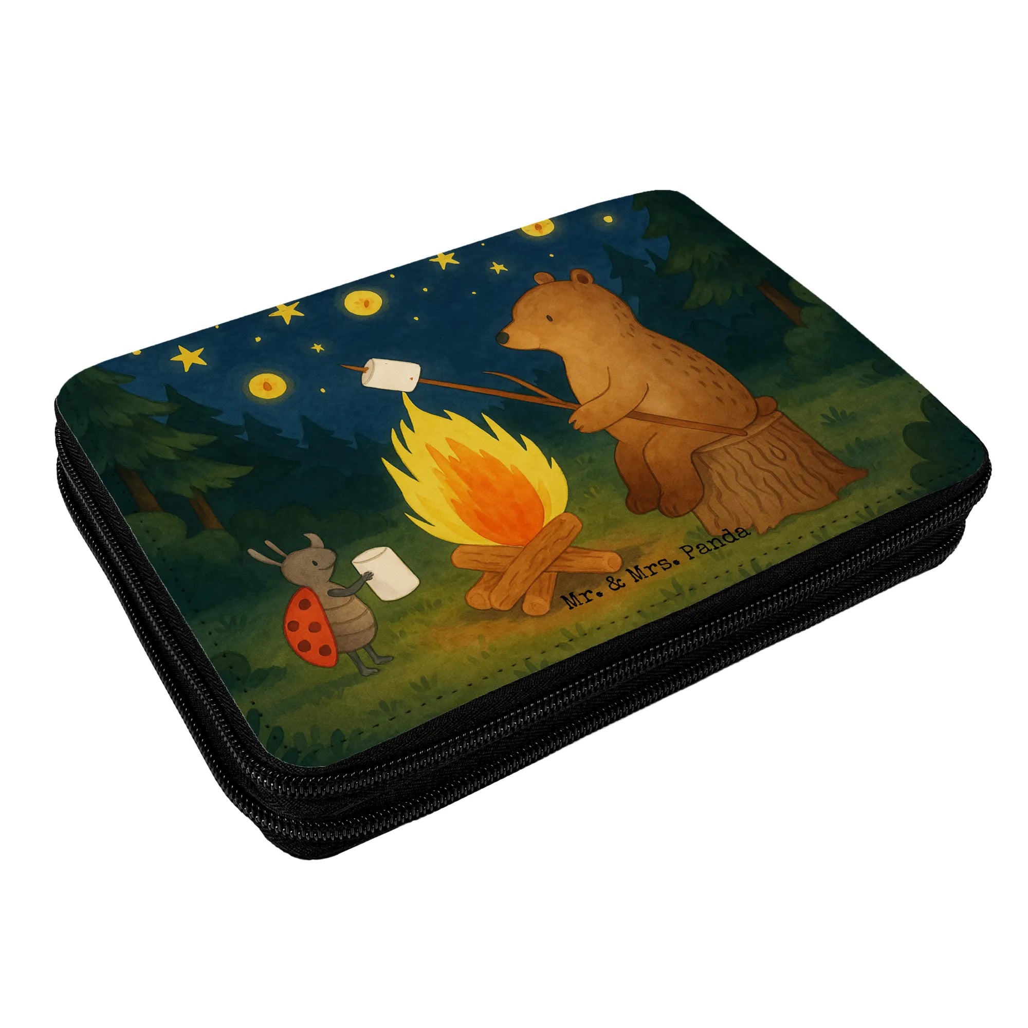 Federmappe Bär & Marienkäfer Lagerfeuer Design