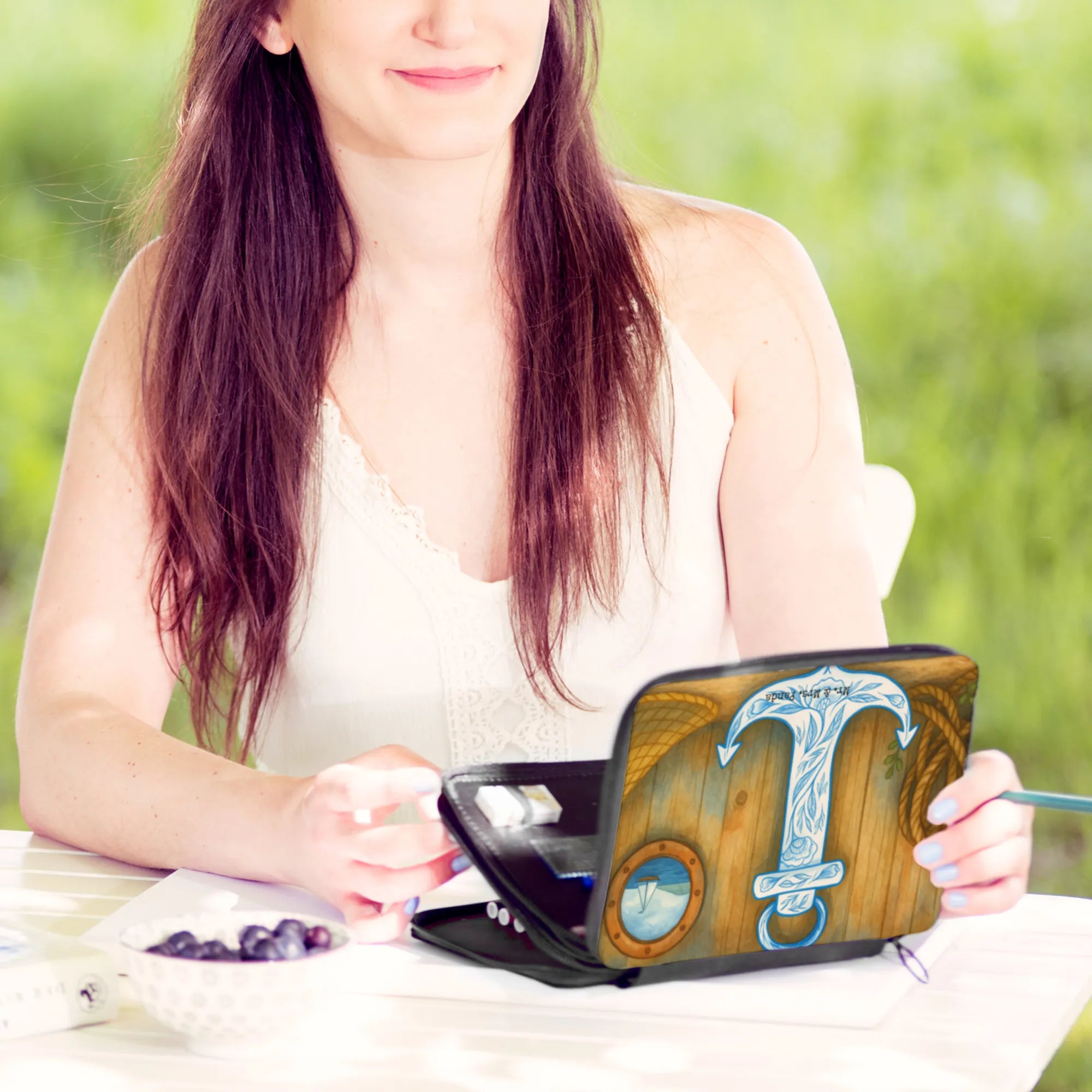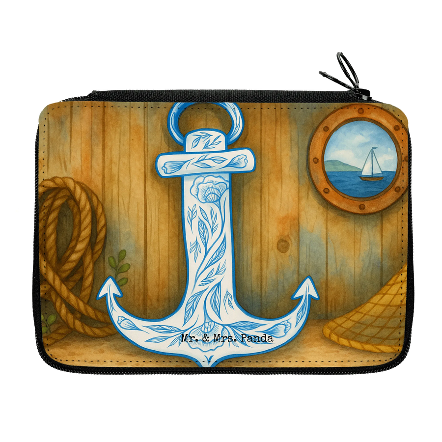 Leather folder anchor Blue Design Federmappe, Stiftetasche, Stifte Etui, Schule, Einschulung, Geschenk, Kind, Schüler, Schülerin, Stifterolle, Federmäppchen, Motiv, Grundschule, Federmäppchen bedruckt, Büro Stifte Etui, Bestückte Federmappe, Kinder Federmappe, Federmappe Einschulung, Tiermotive, Gute Laune, lustige Sprüche, Tiere