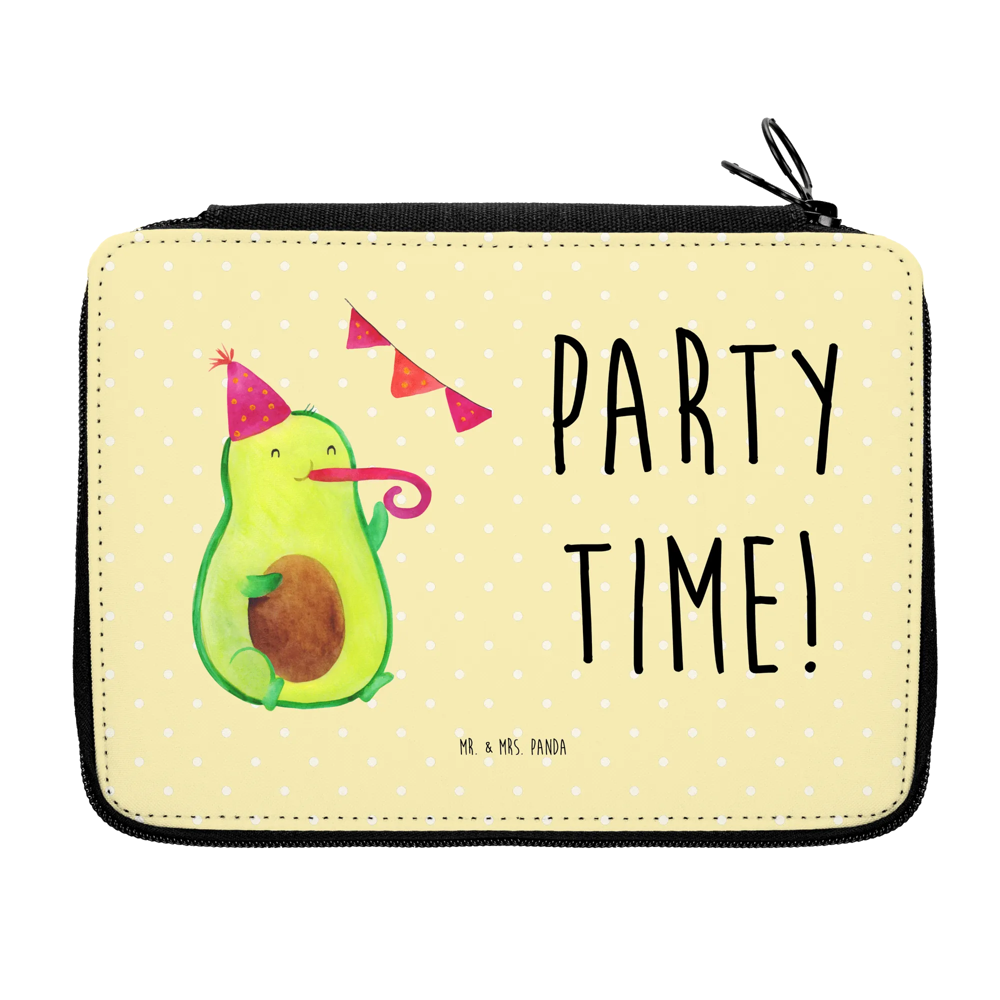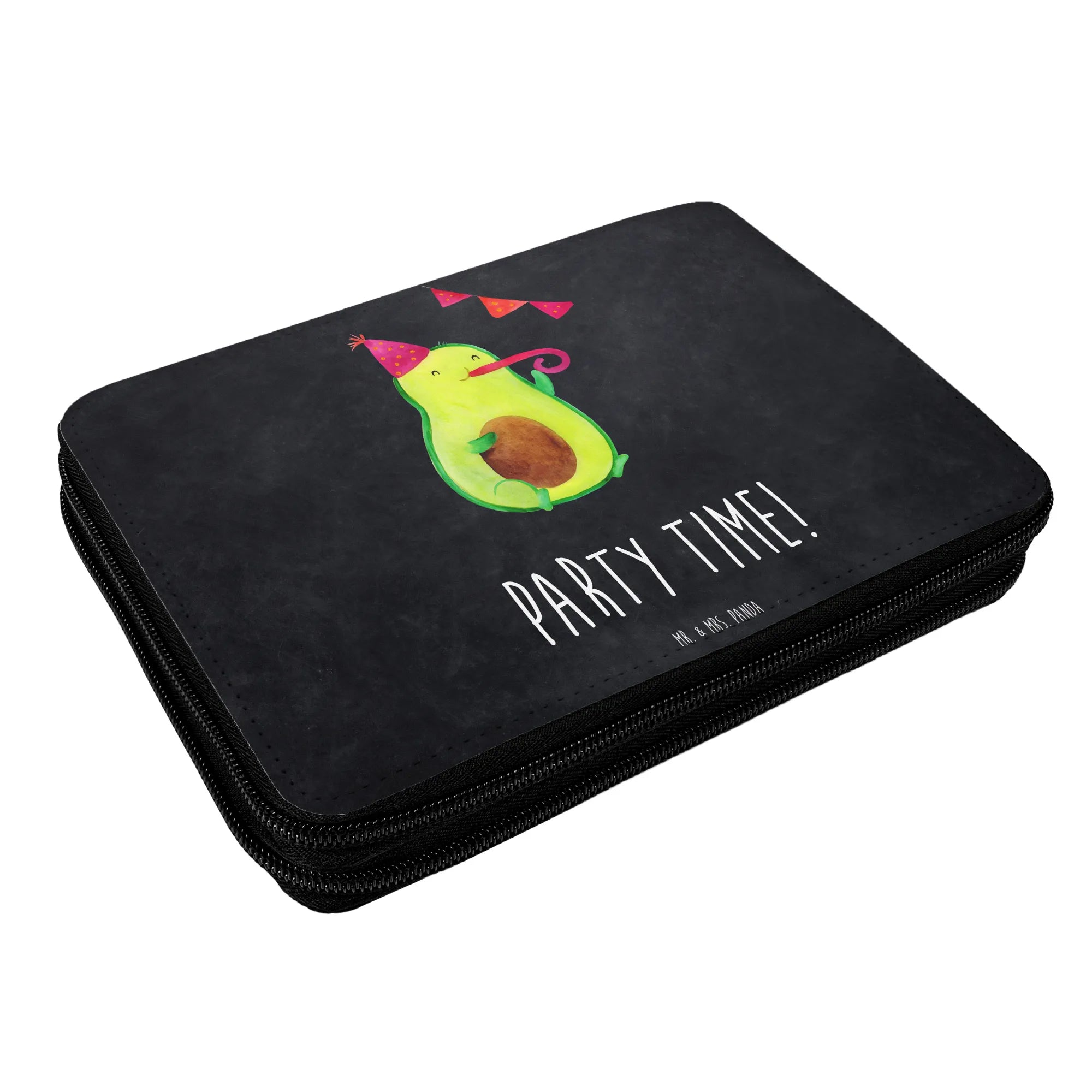 Introducing the adorable Mr. & Mrs. Panda Leather Folder featuring the delightful "Avocado Party Time" motif! This unique pencil case is the perfect companion for every child starting their school journey.