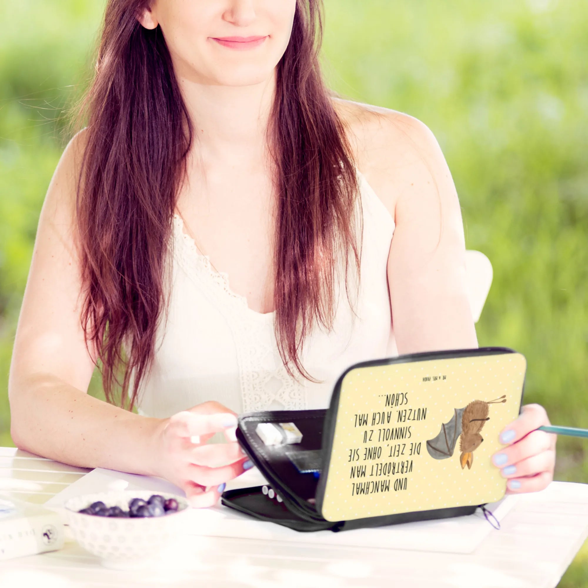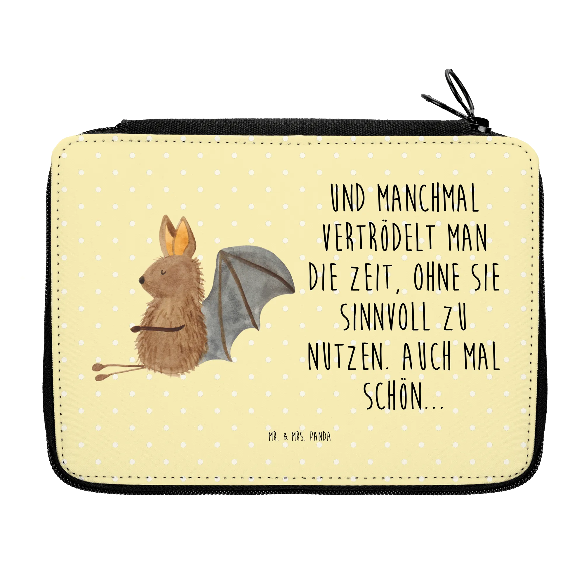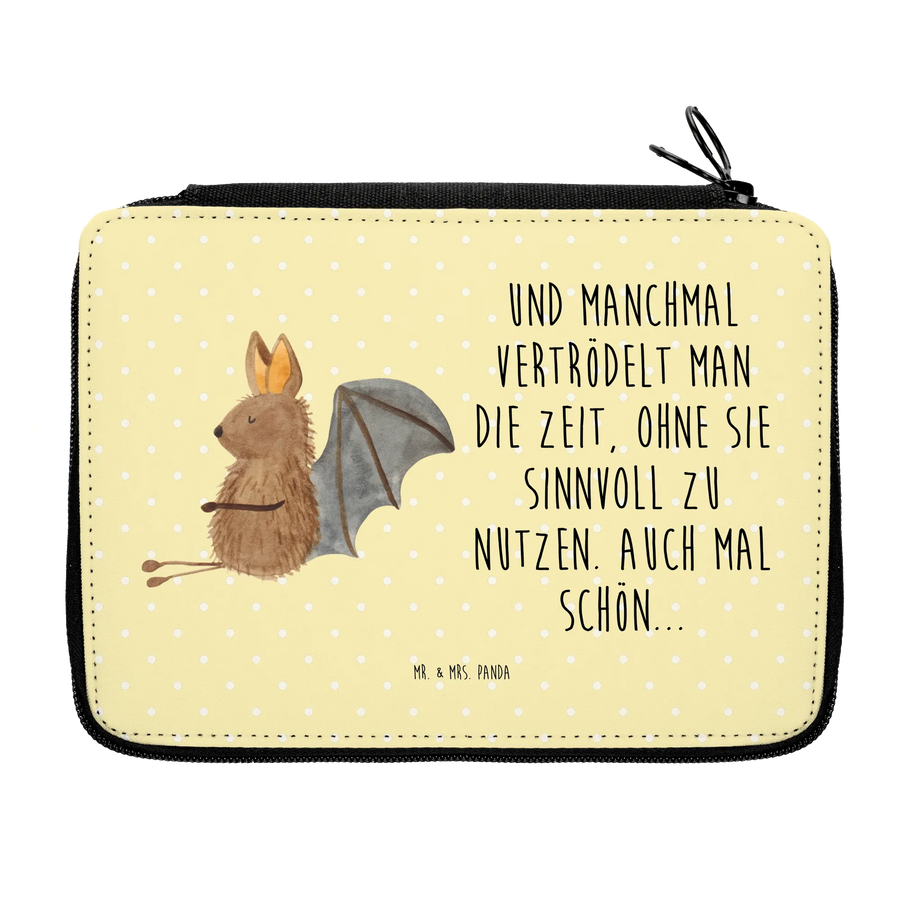 Plus, it comes complete with all the essentials: colored pencils, felt tip pens, pencils, a ruler, an eraser, and a sharpener, so everything needed for art and homework is in one place. The Sitting Bat motif is a delightful representation of nature that engages children's imagination, making it much more than just a pencil case.