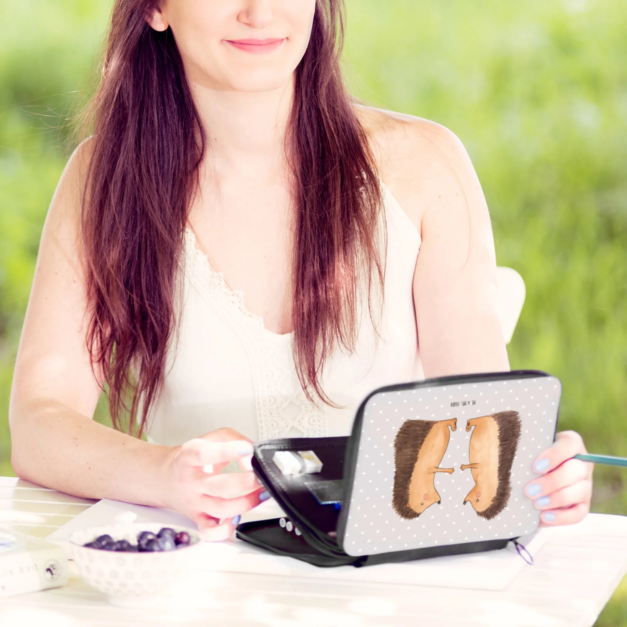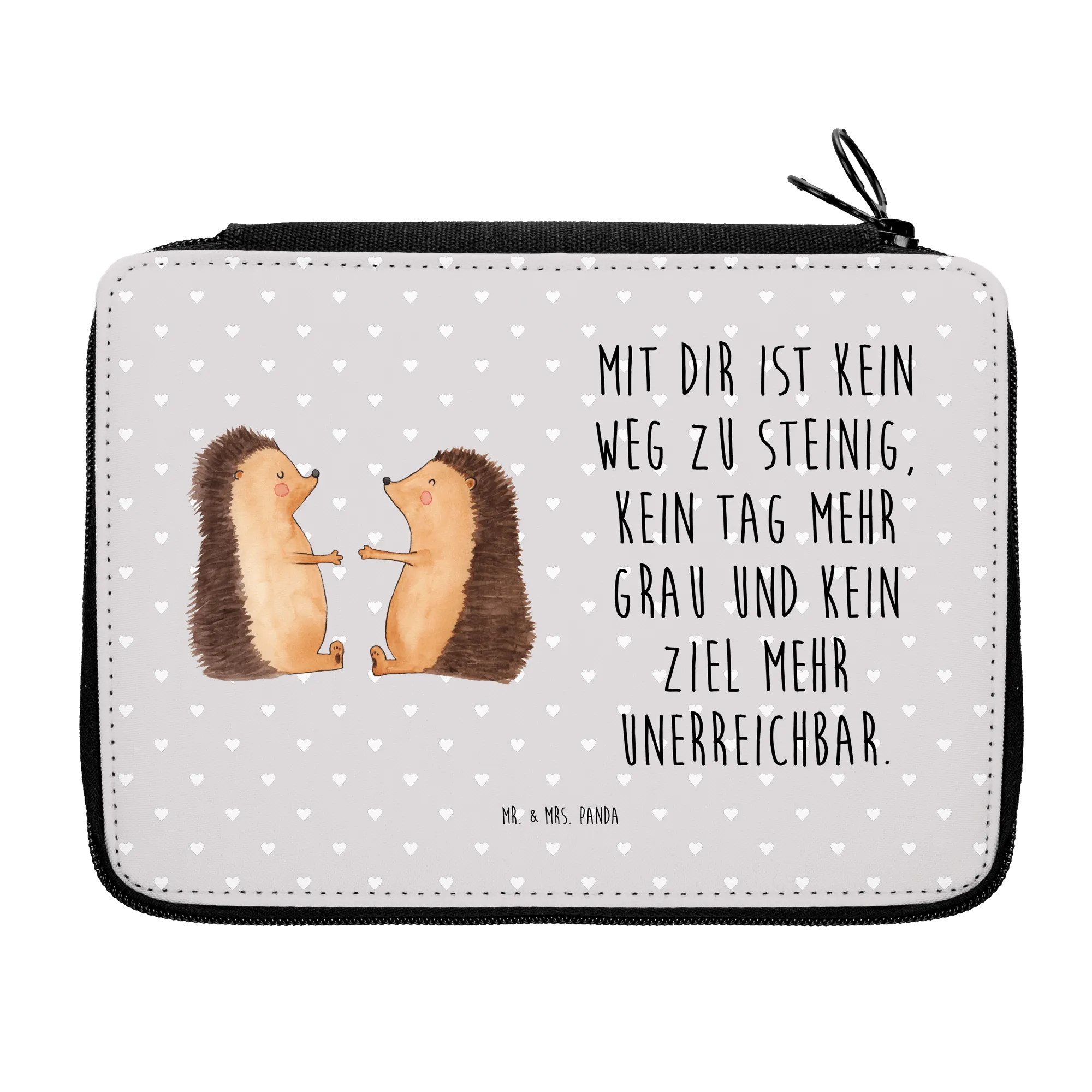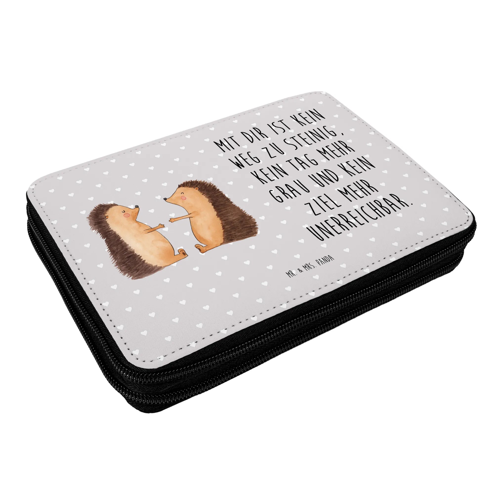 Searching for the perfect gift for that special little one embarking on their school journey? Look no further than the beautiful Leather Folder featuring our adorable "Hedgehogs in Love" motif from the Mr. & Mrs. Panda Love collection! This delightful pencil case is perfect for any child or pupil ready to take on the world of school supplies. With its charming design, showing a pair of hedgehogs expressing tender affection, it not only serves a practical purpose but also adds a touch of love and warmth to their school day.