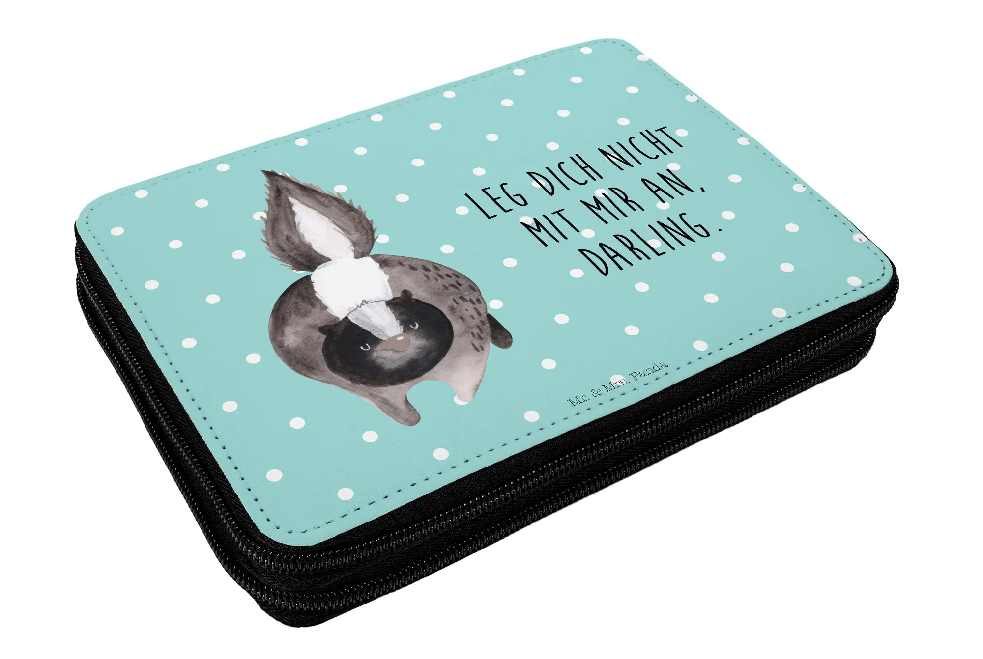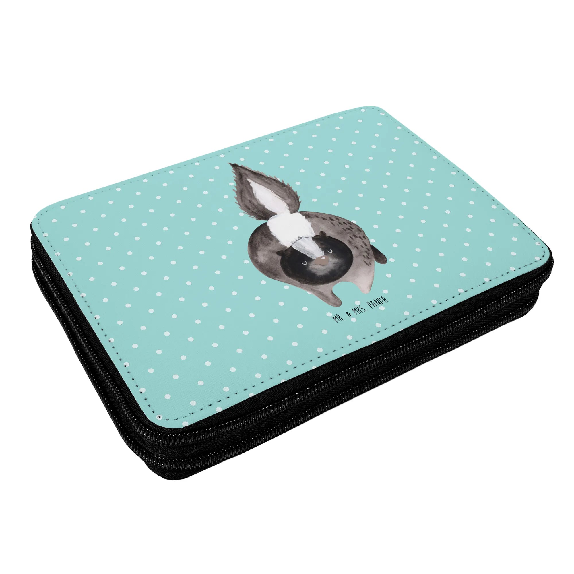 Are you on the hunt for the perfect gift to give a little superstar in your life? Look no further than the Mr. & Mrs. Panda Leather Folder featuring the adorable Skunk Attack design from the delightful Skunk - Collection! This isn't just any old pencil case; it's a vibrant and creative accessory that is sure to captivate young schoolchildren and inspire them to express their artistic talents. The bold, watercolor skunk motif is not only eye-catching but also sparks curiosity and excitement!
