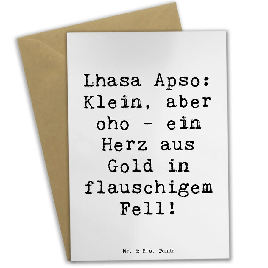 Greetings card Saying Lhasa Apso: Klein, aber oho - ein Herz aus Gold in flauschigem Fell! - White