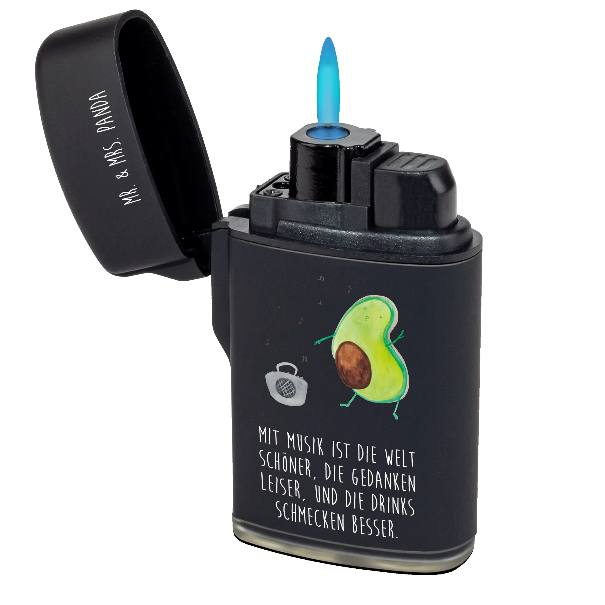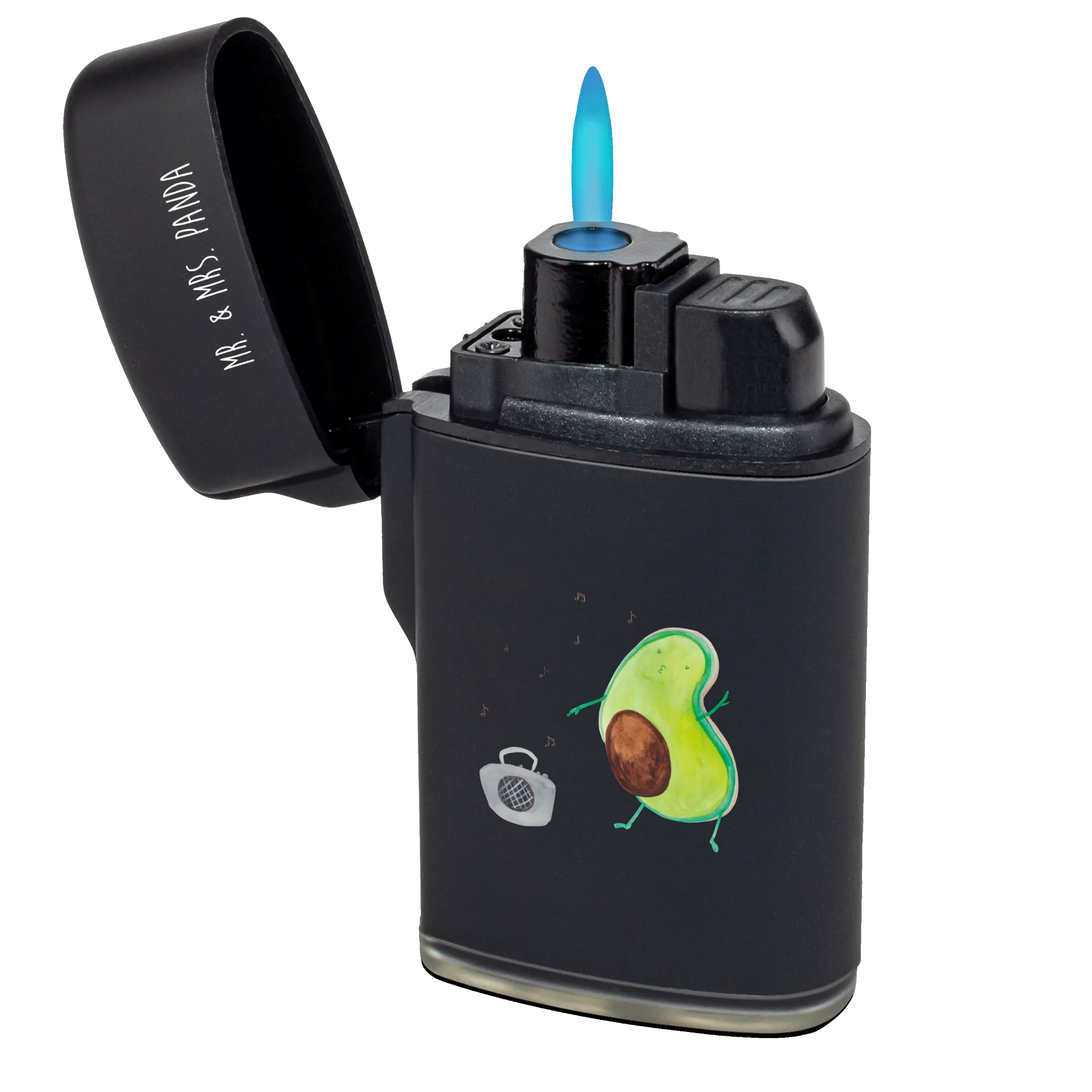 Are you looking for a delightful gift that brings a smile to your loved ones while being functional too? Look no further! The Mr. & Mrs. Panda Dancing Avocado Lighter is the perfect combination of charm and practicality. This stunning lighter features a hand-drawn design of a joyful avocado dancing in front of a Ghettoblaster, perfectly embodying a vibrant and fun-loving spirit.