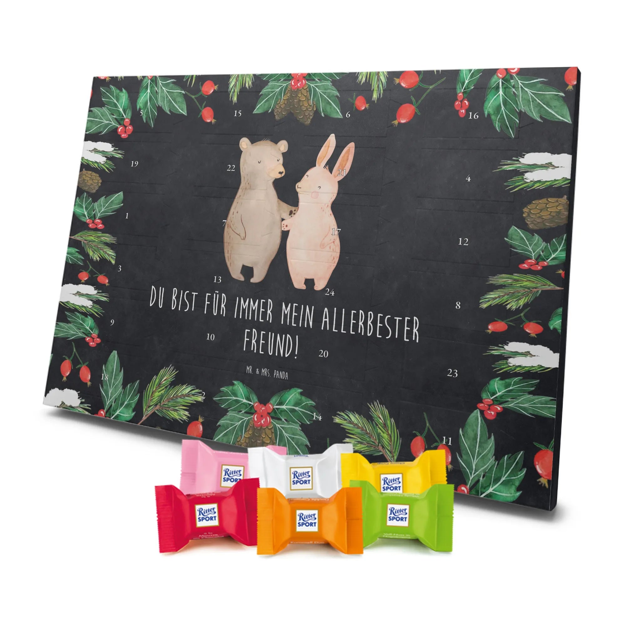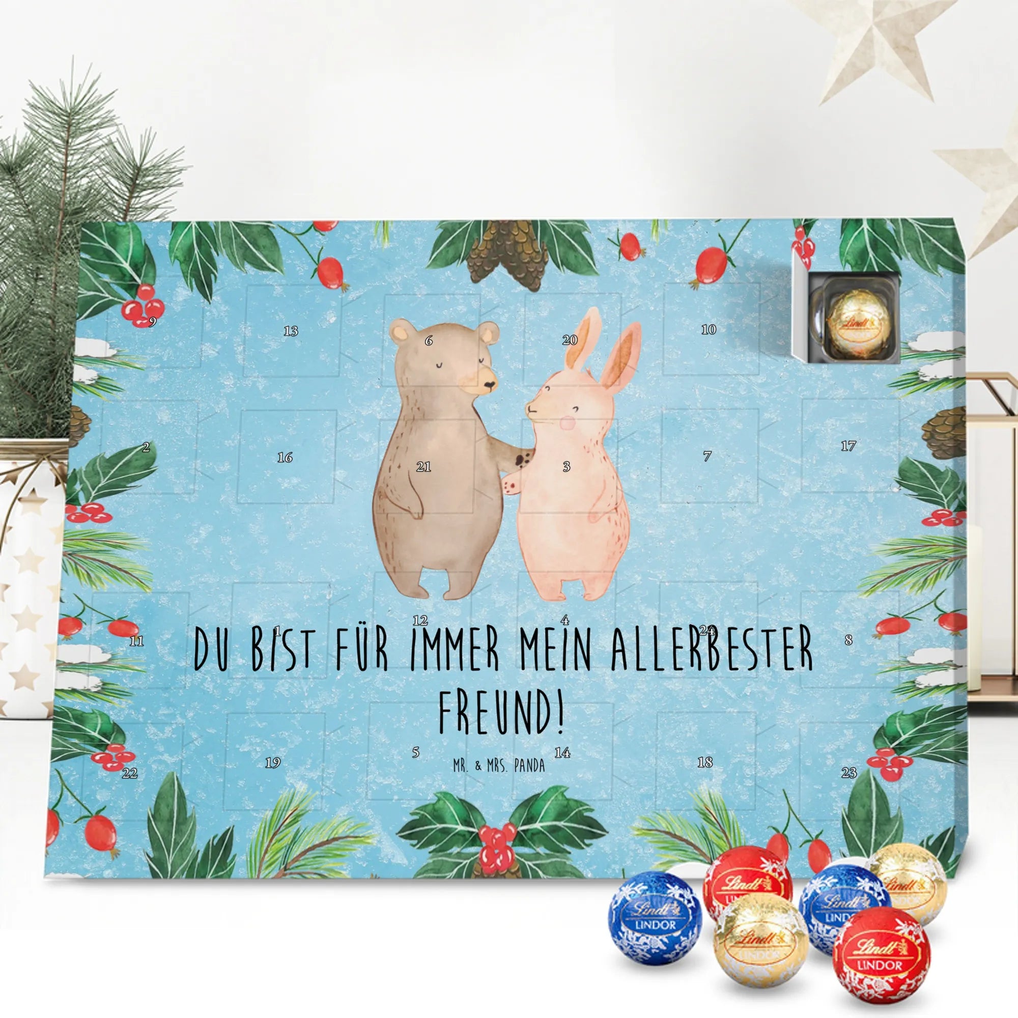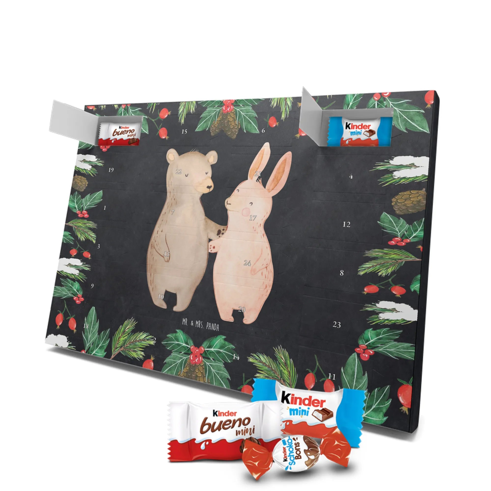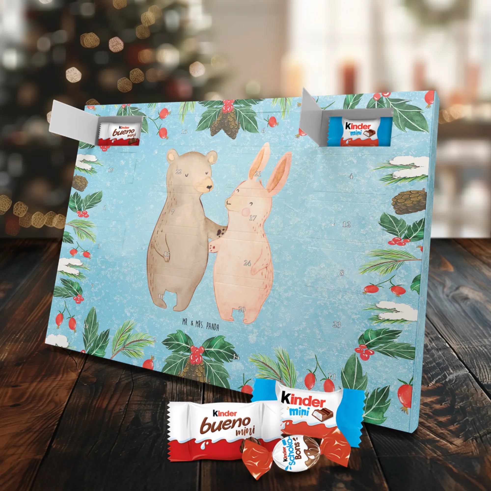 Chocolate advent calendar bear and rabbit Embrace - Classic - with saying - Ice Blue