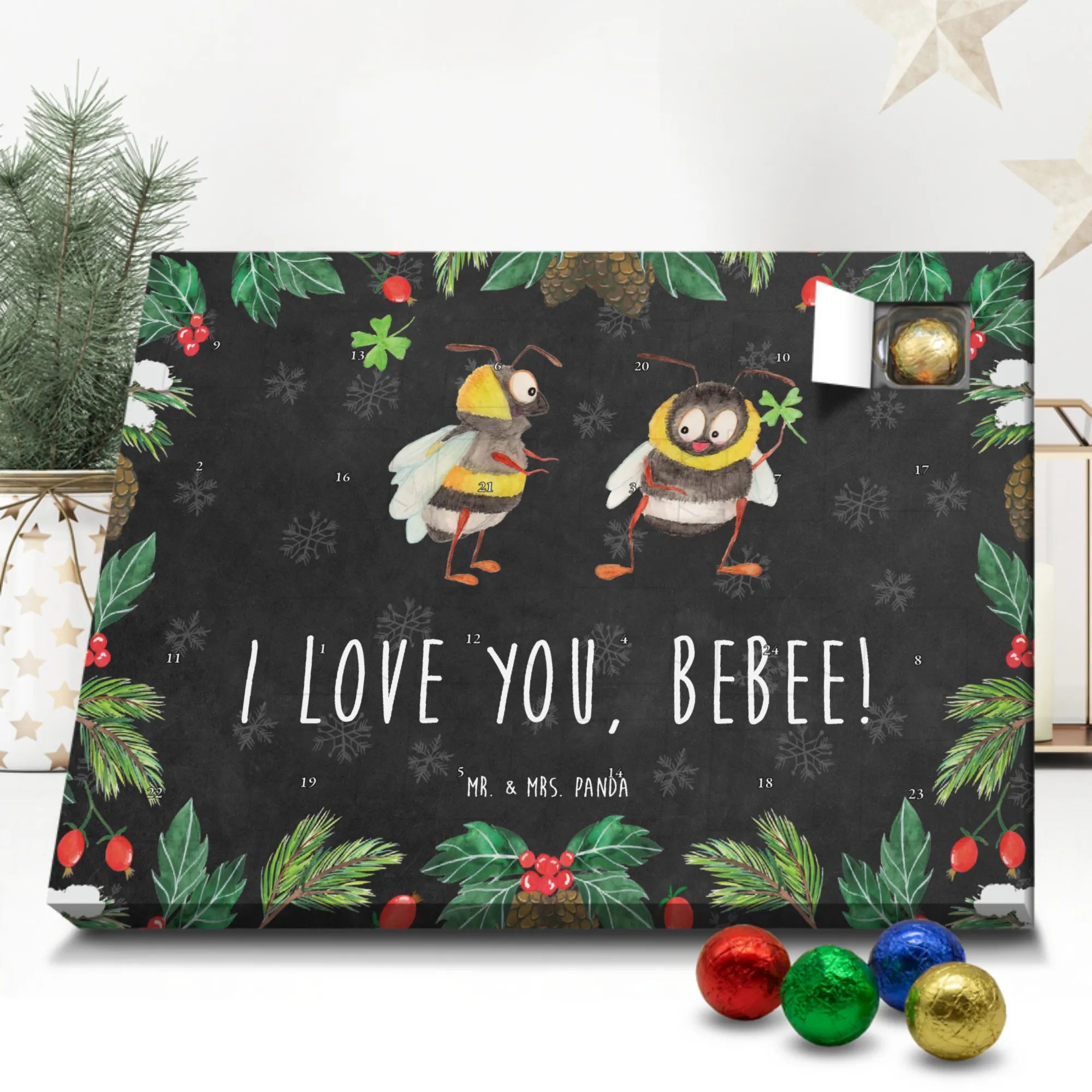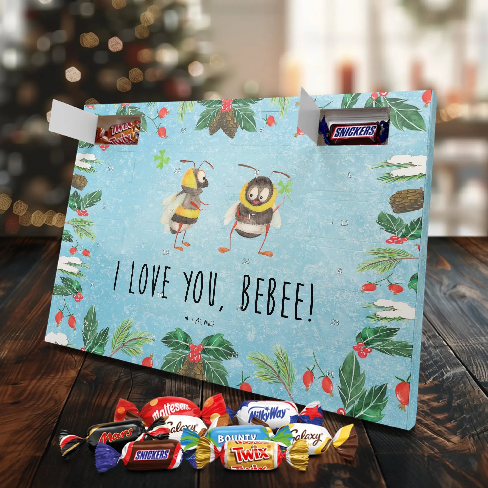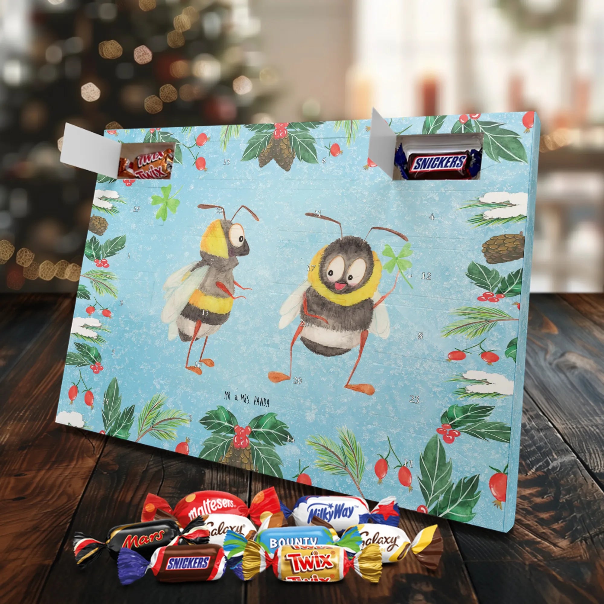 Chocolate advent calendar bees Pair - Classic - with saying - Ice Blue