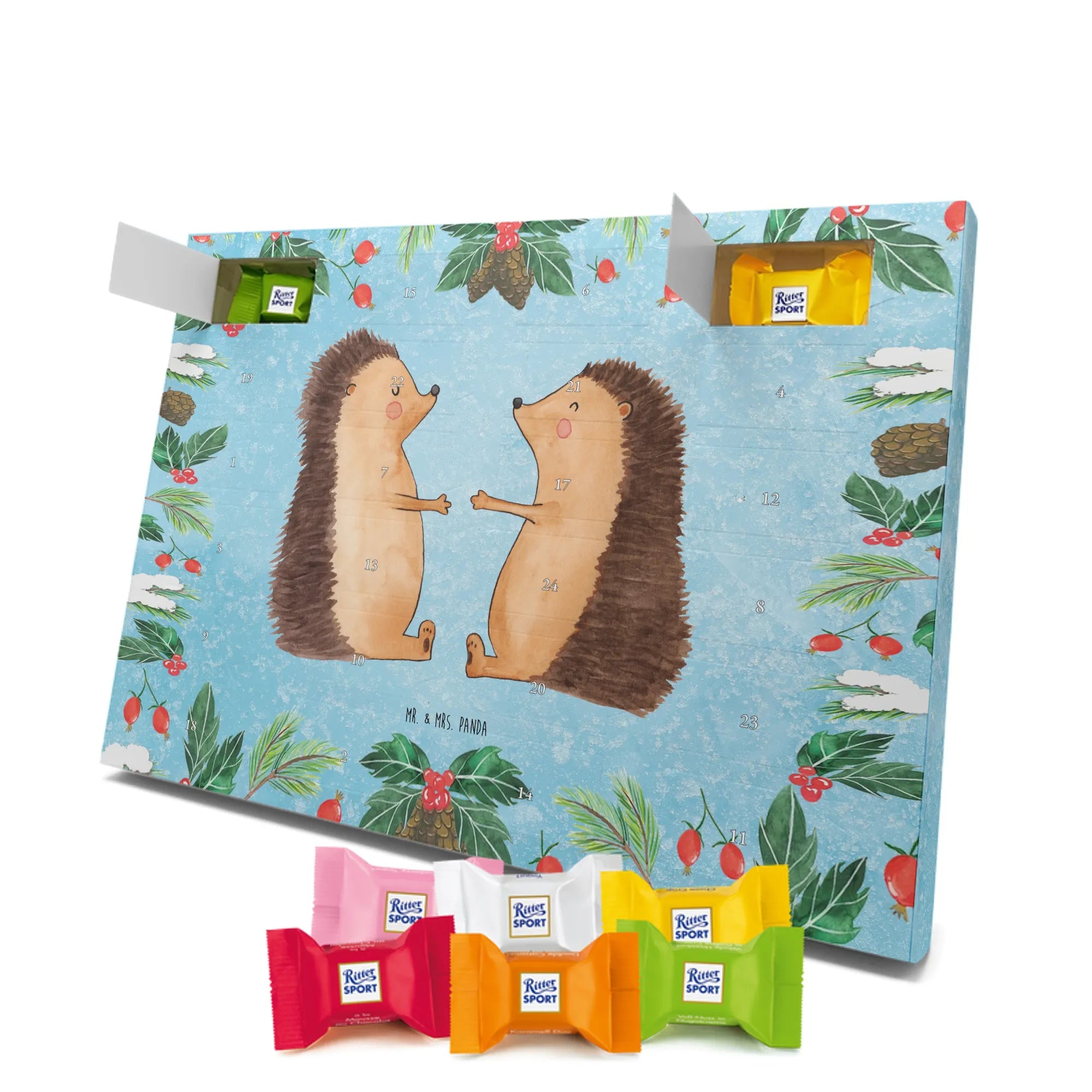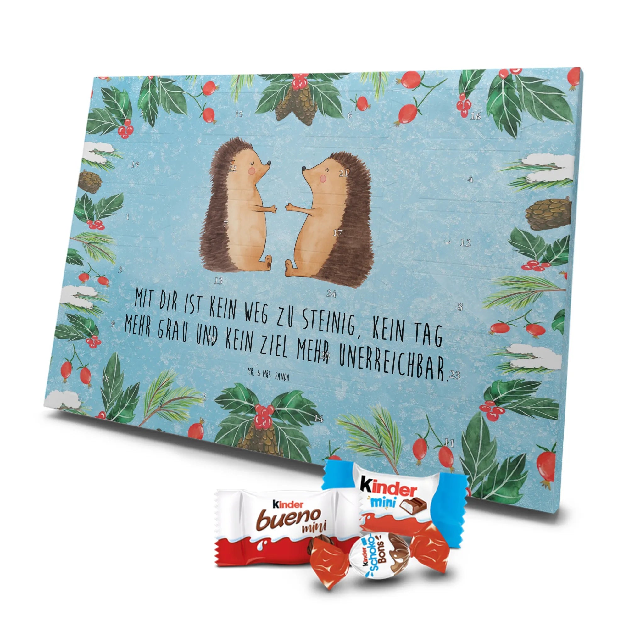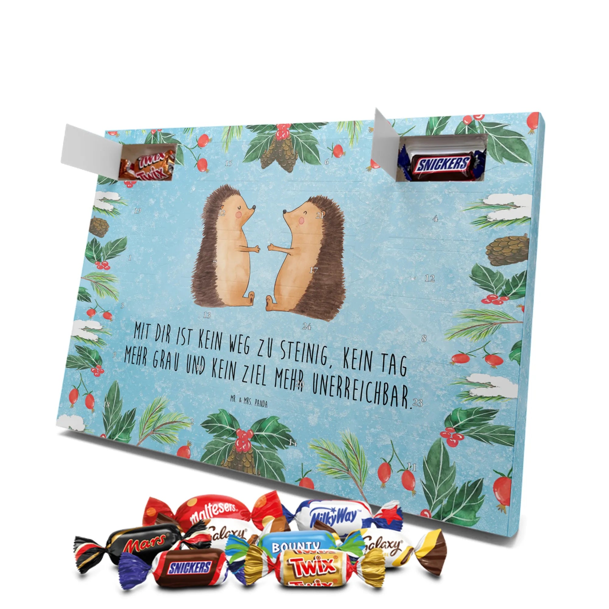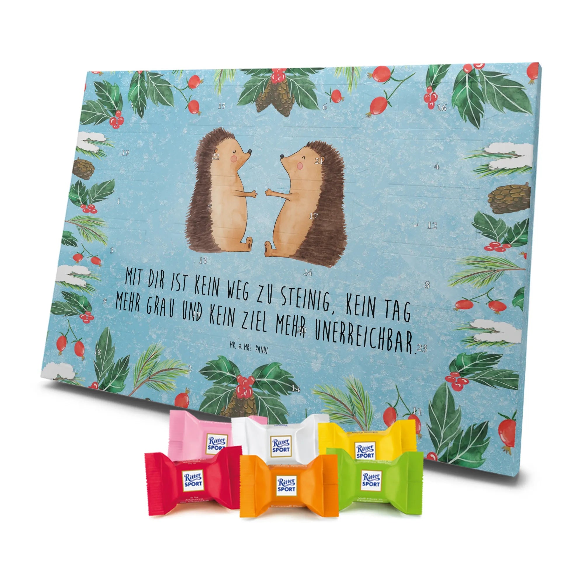 Chocolate advent calendar Hedgehogs in love - Classic - with saying - Ice Blue