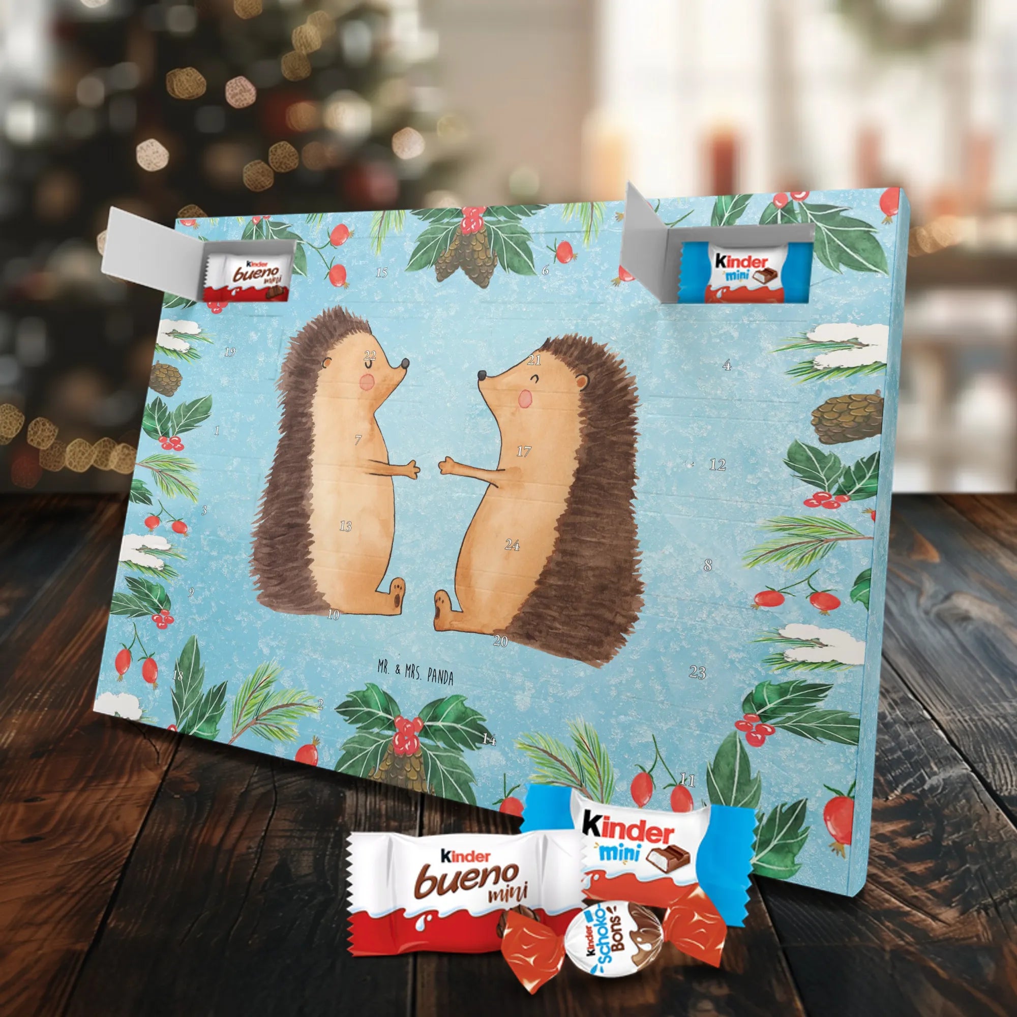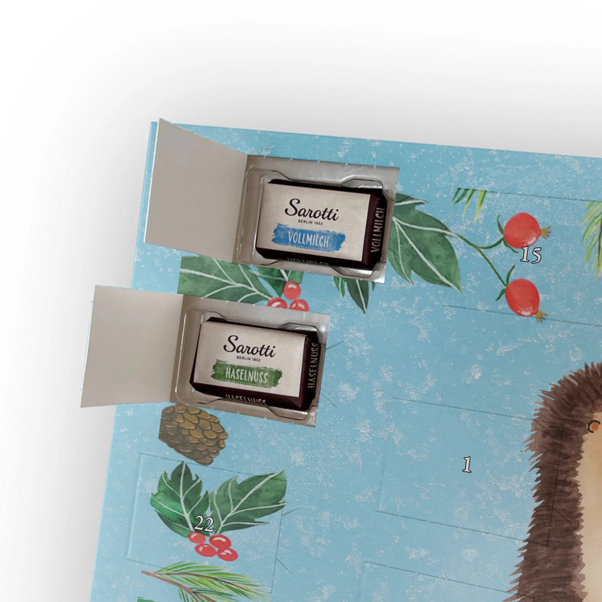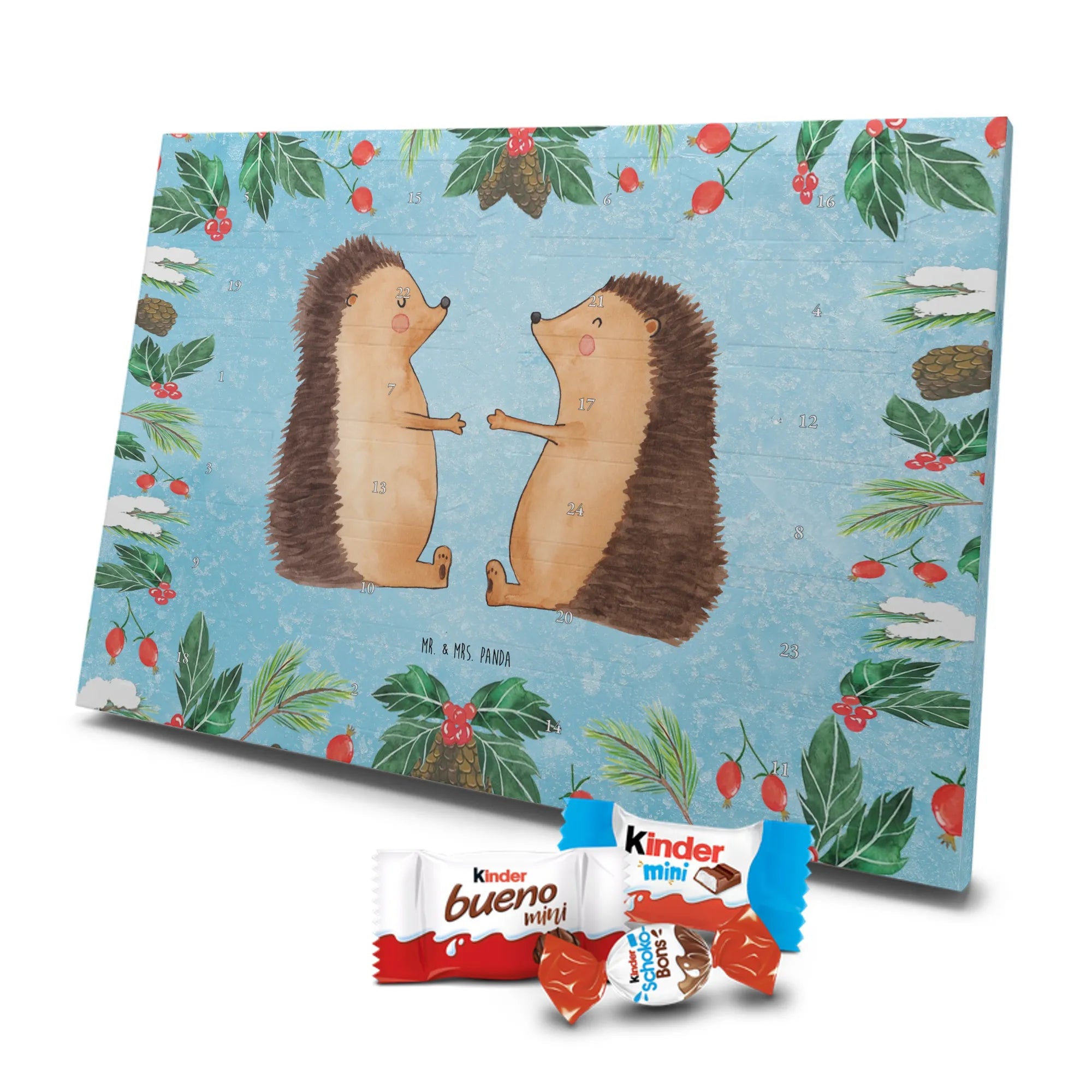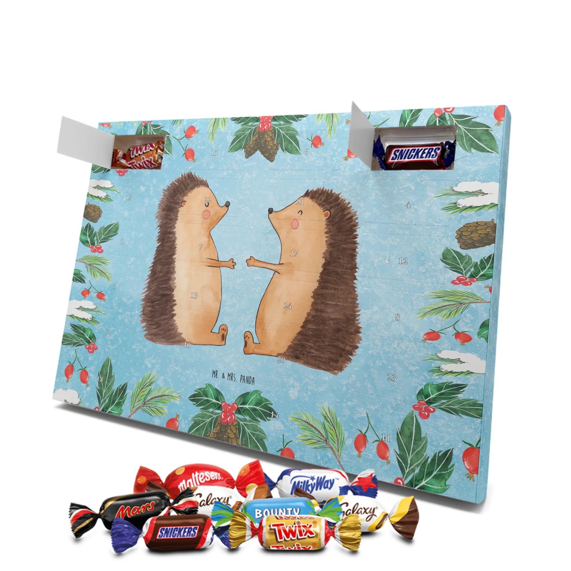 Chocolate advent calendar Hedgehogs in love - Classic - with saying - Ice Blue