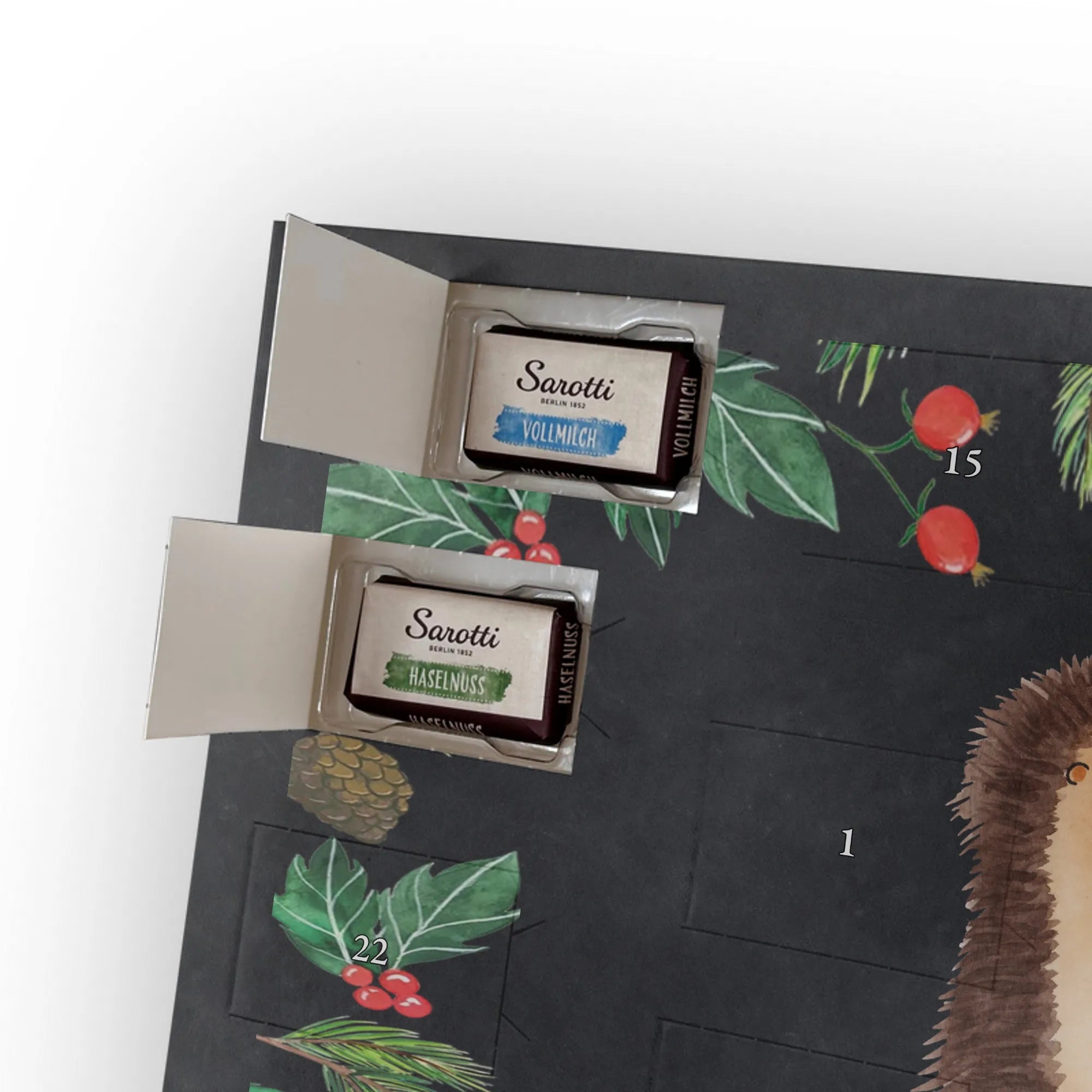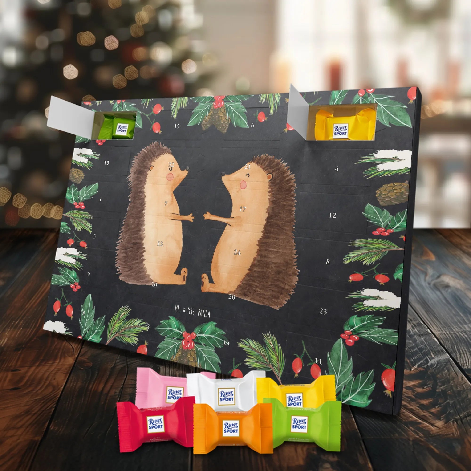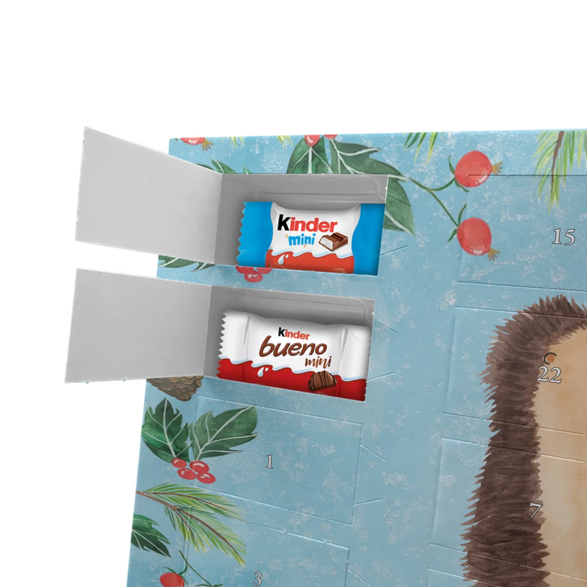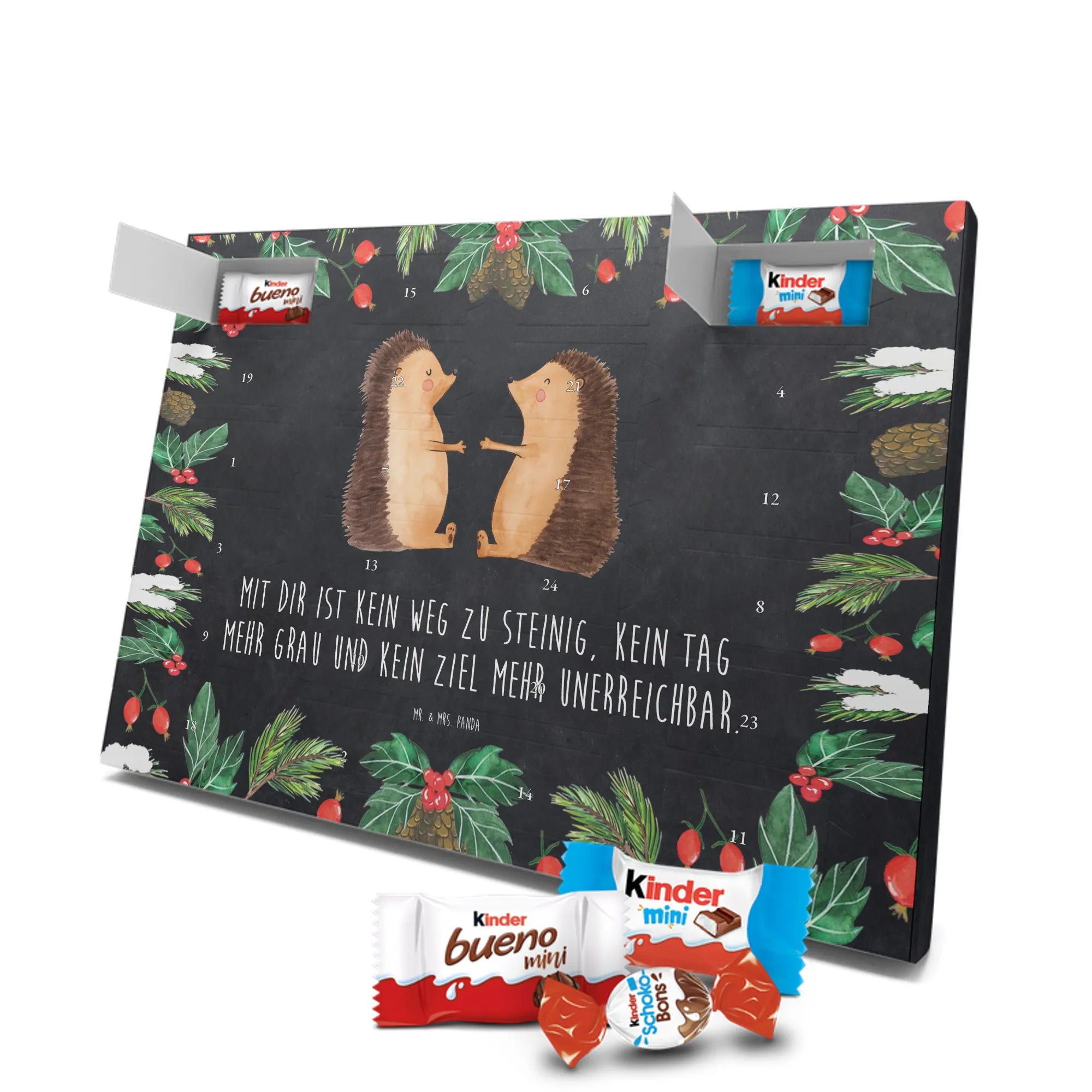Chocolate advent calendar Hedgehogs in love - Classic - with saying - Ice Blue