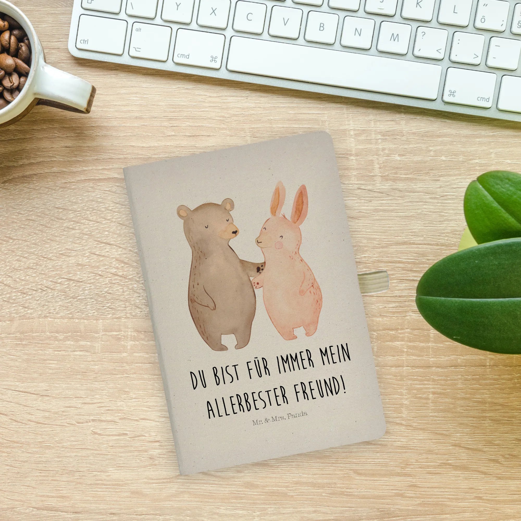 Cotton notebook bear and rabbit Embrace - DIN A5 Baumwoll Notizbuch - with saying