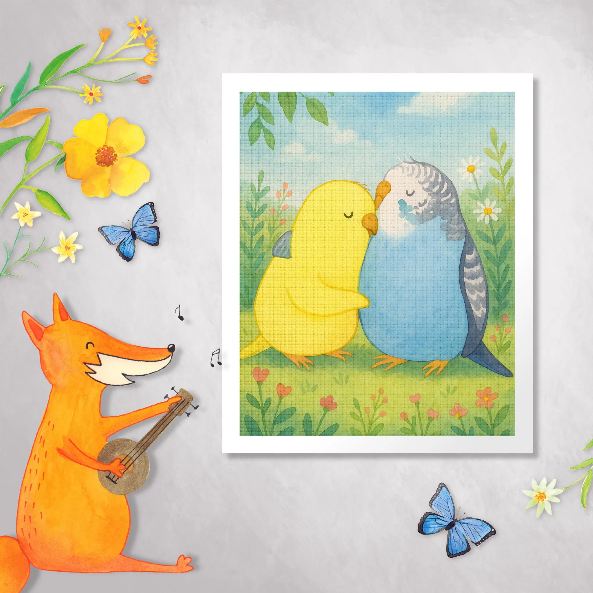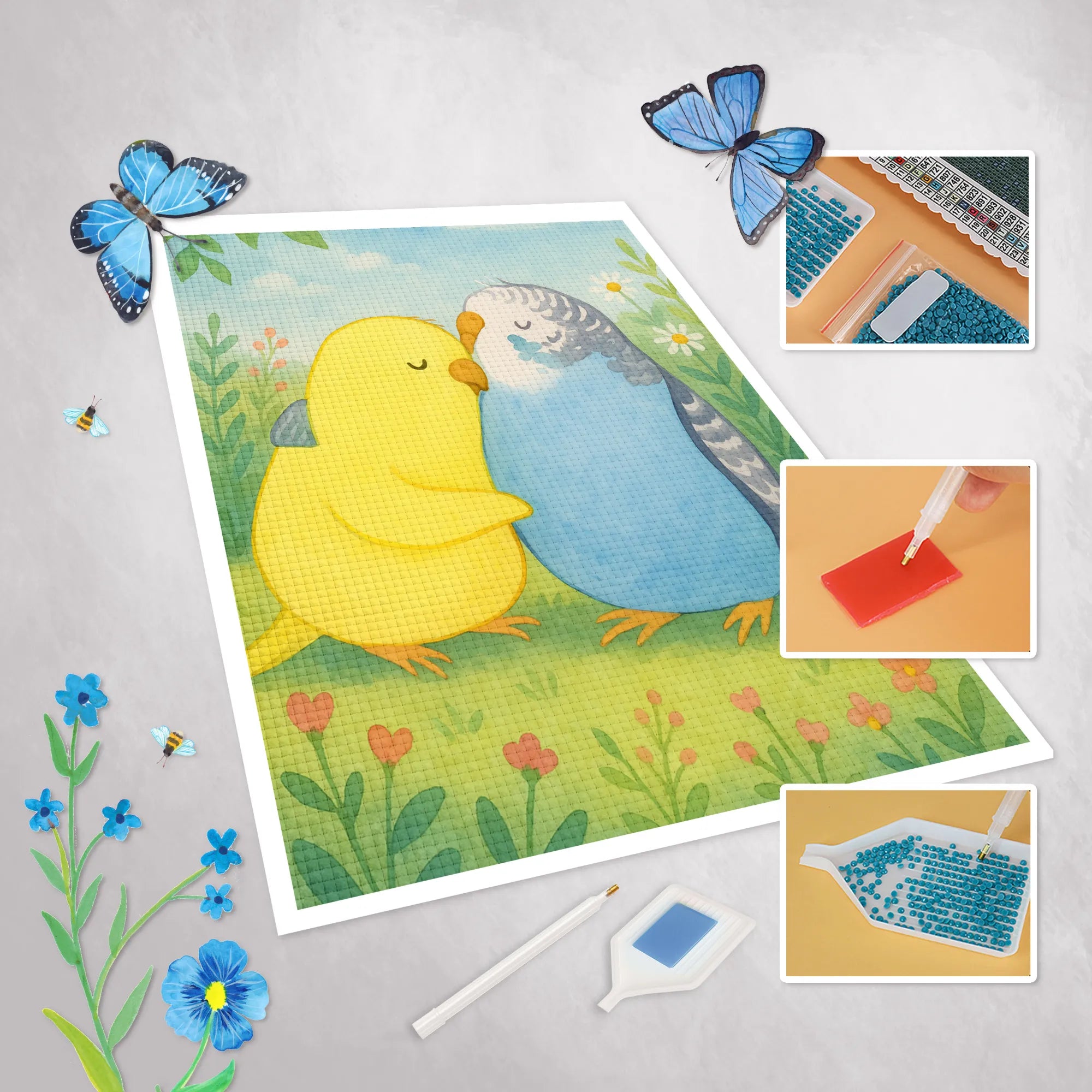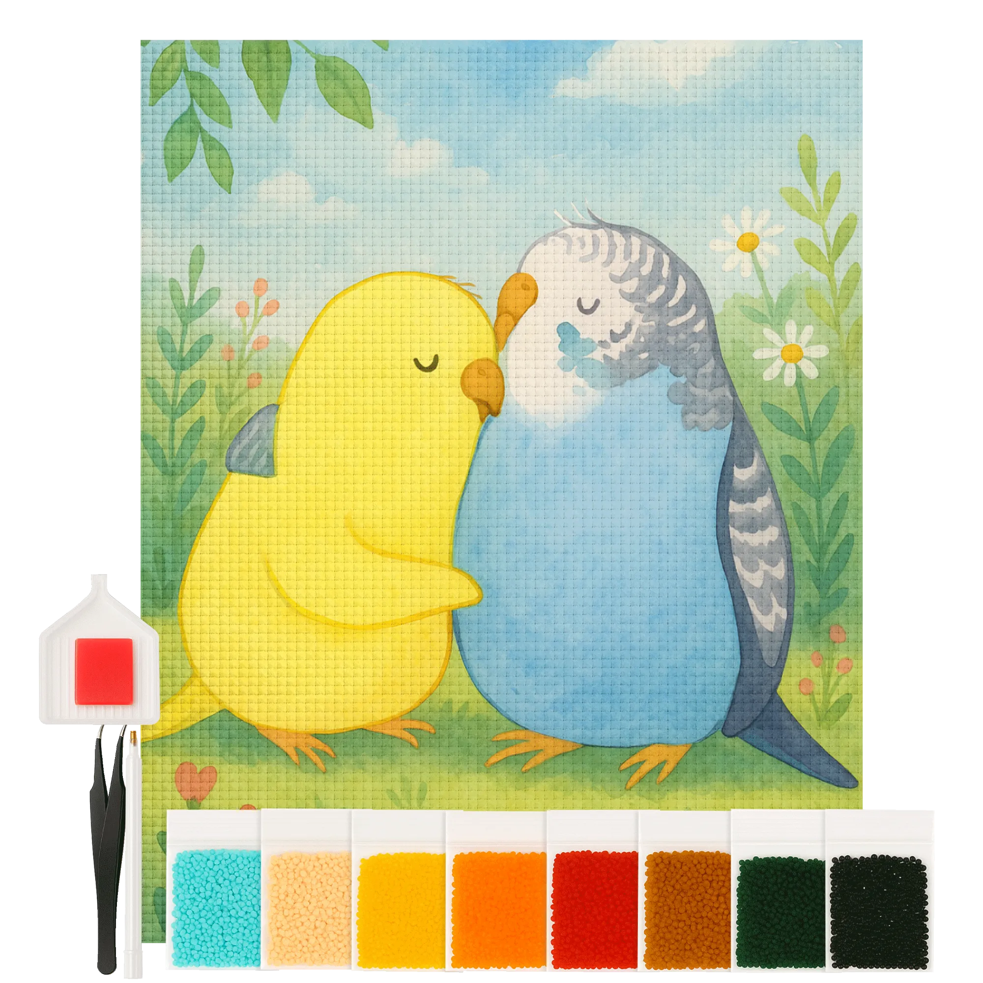Diamond Painting Parakeets in love Design - Ohne Rahmen
