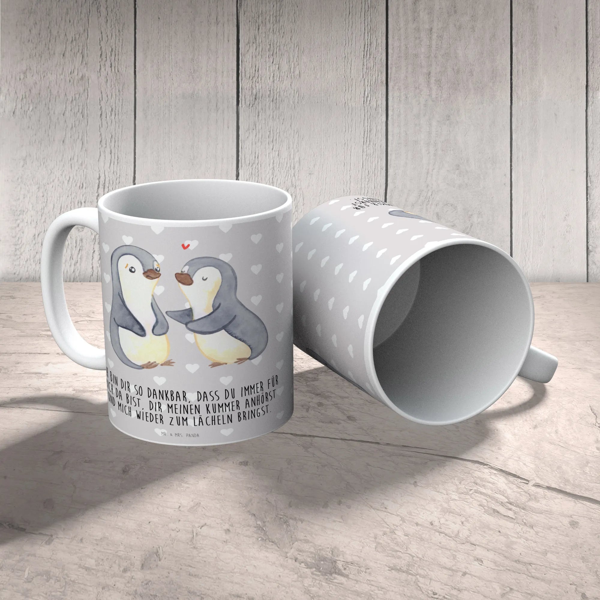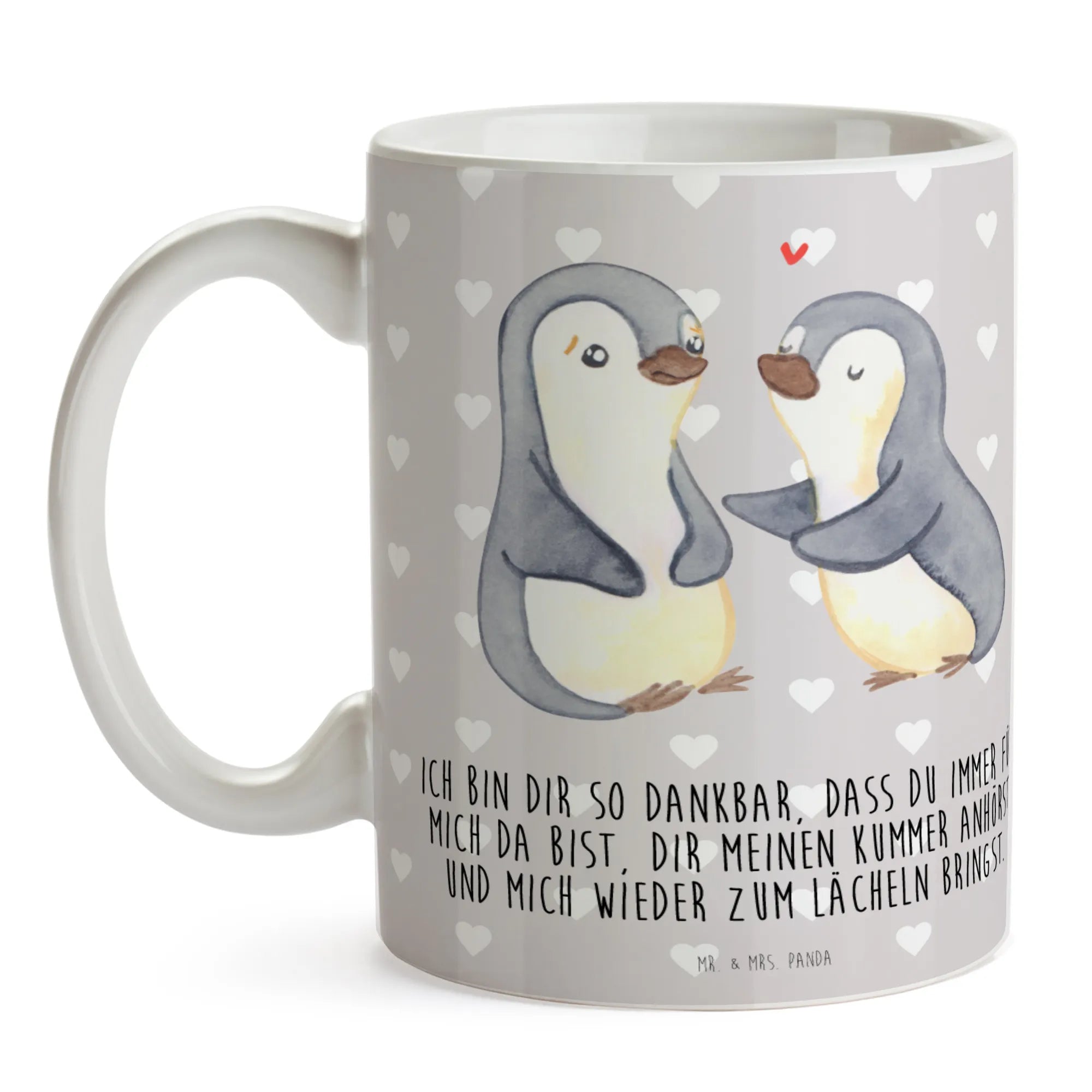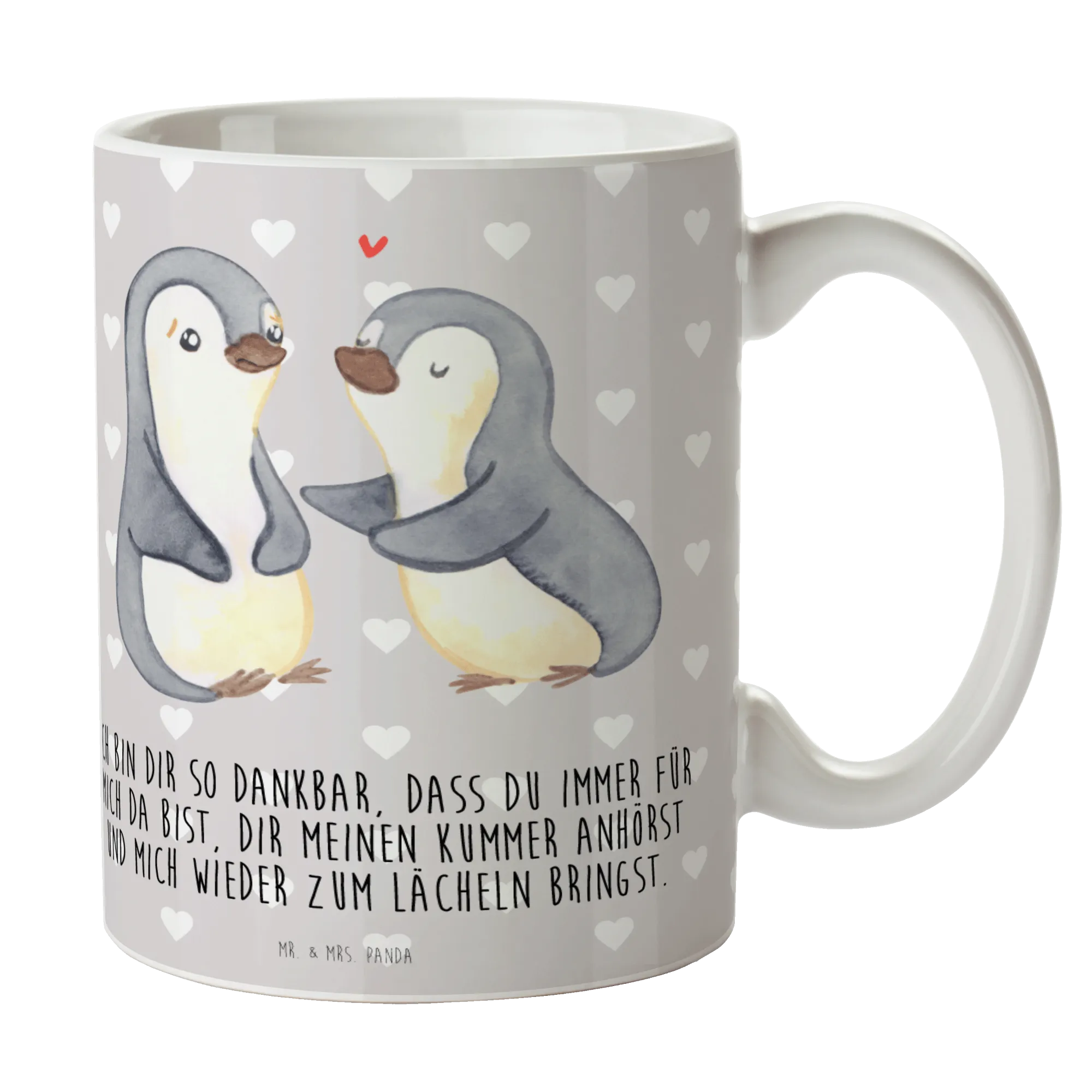 Discover our heartwarming comfort penguins, an enchanting expression of love and togetherness. These two delightful creatures are captured in a tender moment, leaning against each other with such profound care and empathy. Their gentle body language and expressive eyes evoke a sense of security and warmth, making them an ideal addition to any loving home. Adorned in soothing shades of gray, white, and light yellow, they convey peace and affection. The motto, 'Ich bin dir so dankbar, dass du immer für mich da bist, dir meinen Kummer anhörst und mich wieder zum Lächeln bringst,' perfectly encapsulates the spirit of appreciation for that special someone. Whether you’re searching for a meaningful Valentine’s Day gift or a thoughtful gesture for an anniversary, these penguins are a delightful reminder to celebrate those who are always there to lift our spirits and bring happiness back into our lives.