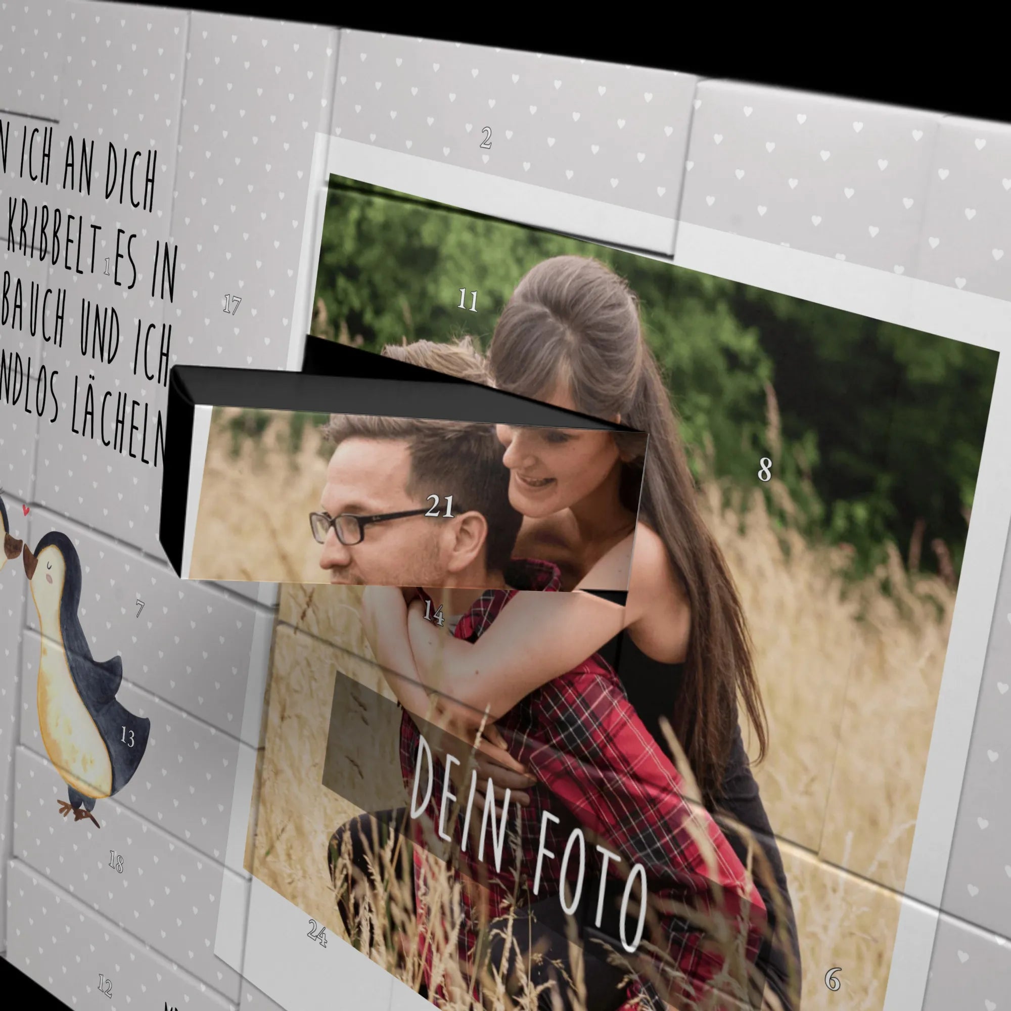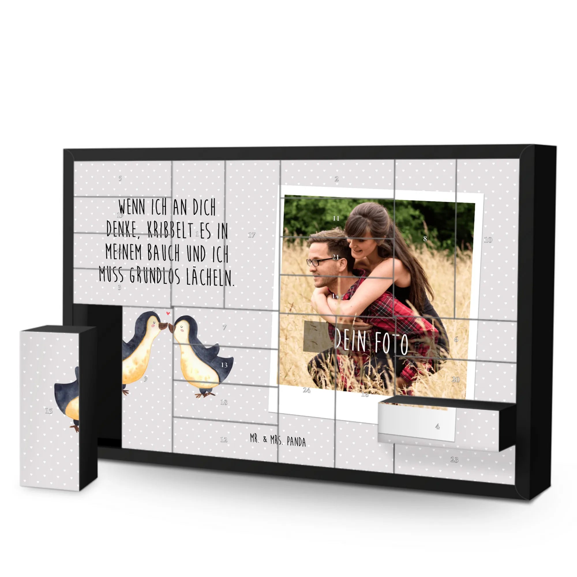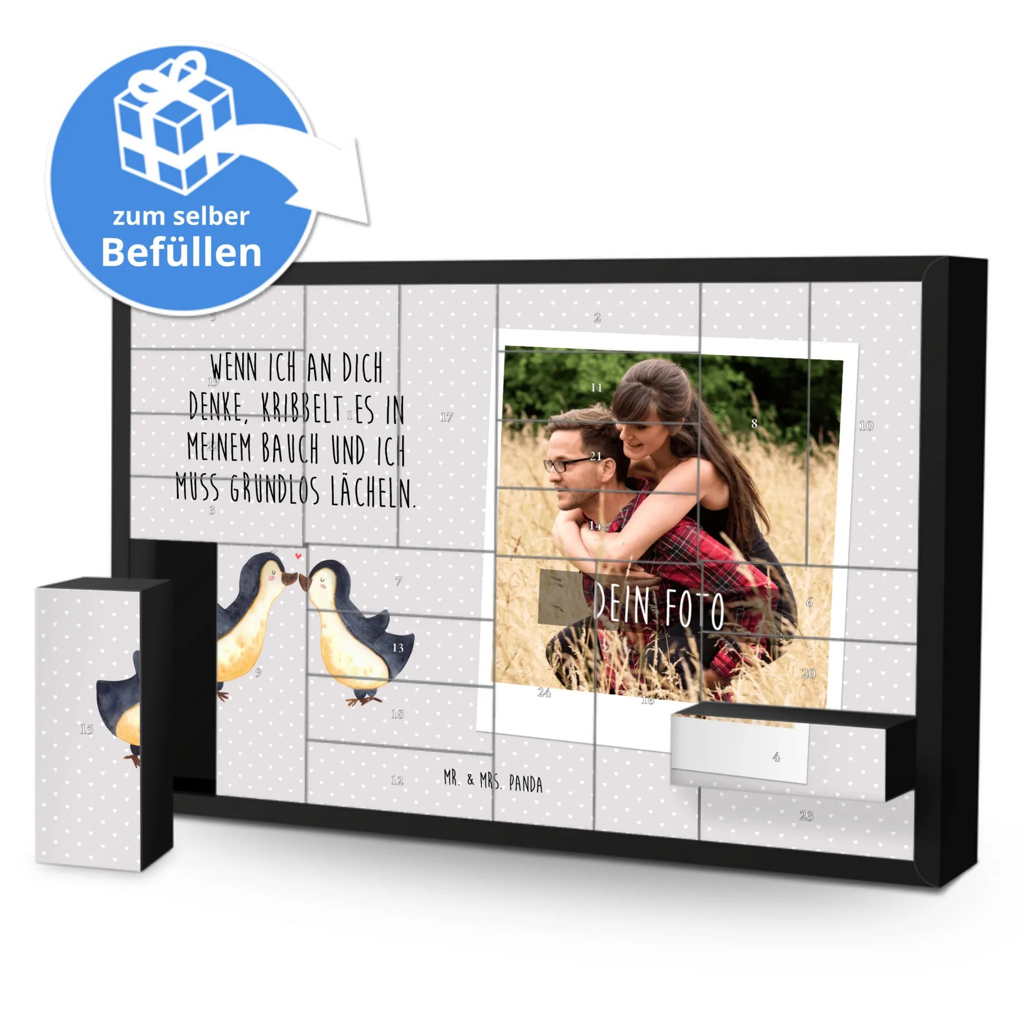 Der personalisierbare, befüllbare Foto Adventskalender von Mr. & Mrs. Panda ist das perfekte Geschenk für all jene, die ihre Liebe auf besondere Art und Weise ausdrücken möchten! Mit dem bezaubernden Motiv der Pinguine, die sich voller Zärtlichkeit küssen, wirst du die Herzen deiner Liebsten höher schlagen lassen. Dieser Adventskalender ist mehr als nur ein Countdown bis Weihnachten – er ist eine Liebeserklärung, die jeden Tag auf ein Neues Freude bereitet.