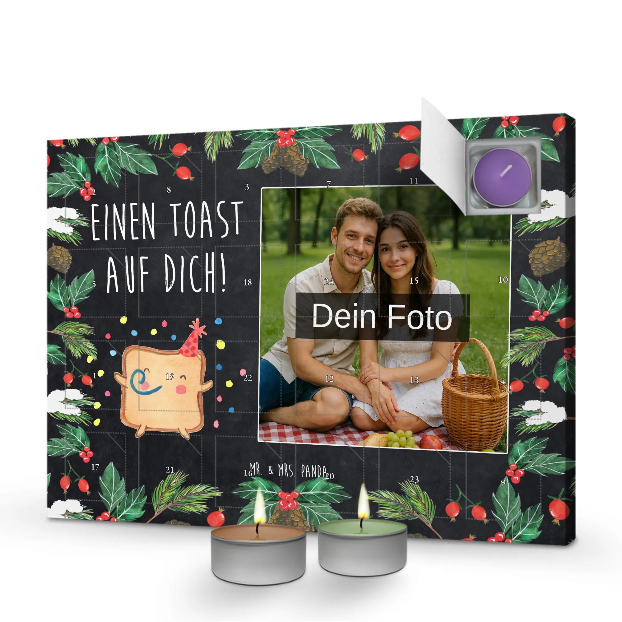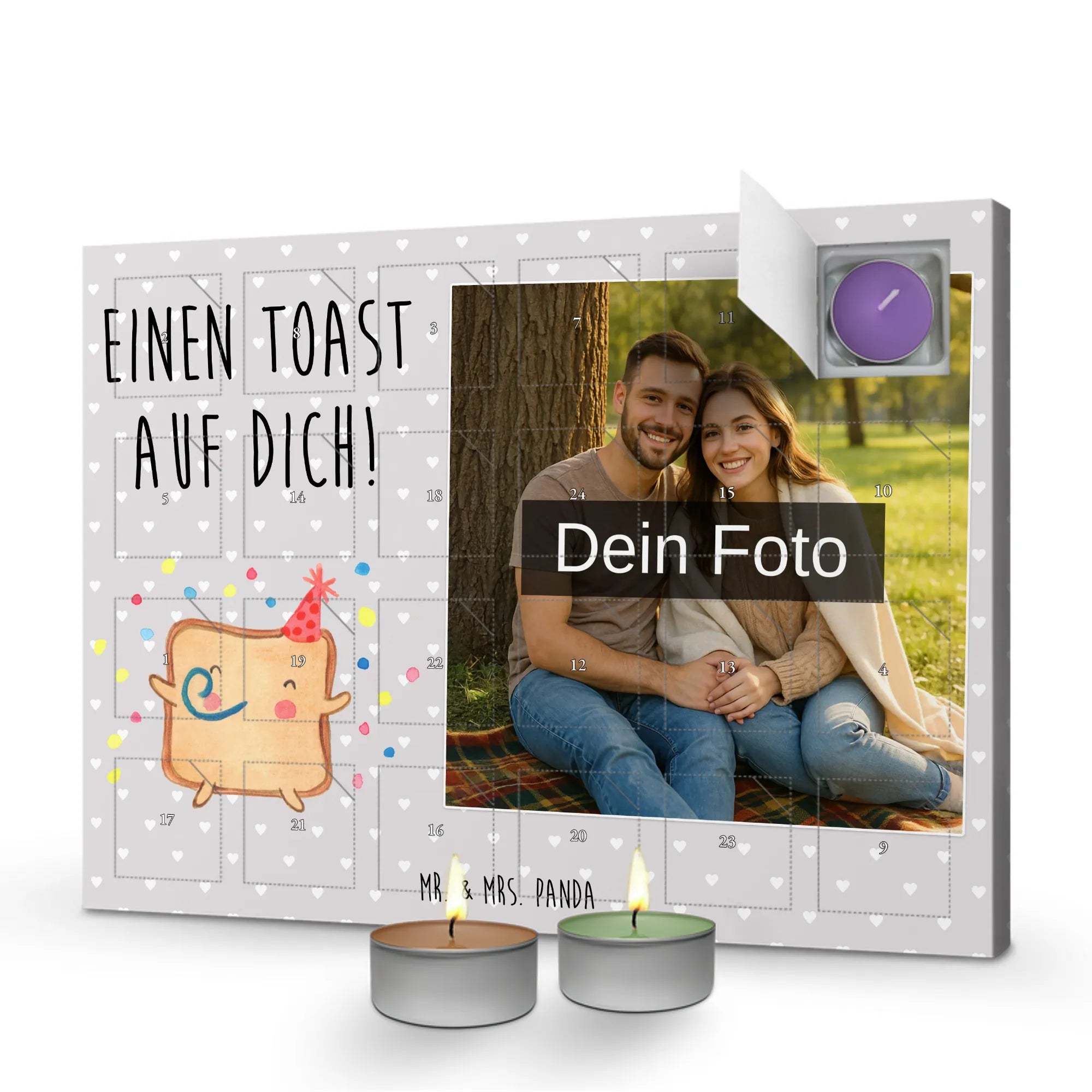 Personalisierter Duftkerzen Foto Adventskalender Toast Party - Grau Pastell