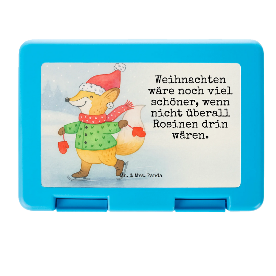 Juhuu — die Winter Kollektion ist da! Unsere Brotdose "Fuchs Schlittschuhe" von Mr. & Mrs. Panda bringt winterliche Freude in jede Pause. Auf dem Deckel siehst du einen fröhlichen Fuchs mit Schlittschuhen, grünem Mantel, rotem Schal und Weihnachtsmütze. Der liebevoll platzierte Slogan „Weihnachten wäre noch viel schöner, wenn nicht überall Rosinen drin wären.“ sorgt für ein Schmunzeln bei Groß und Klein.