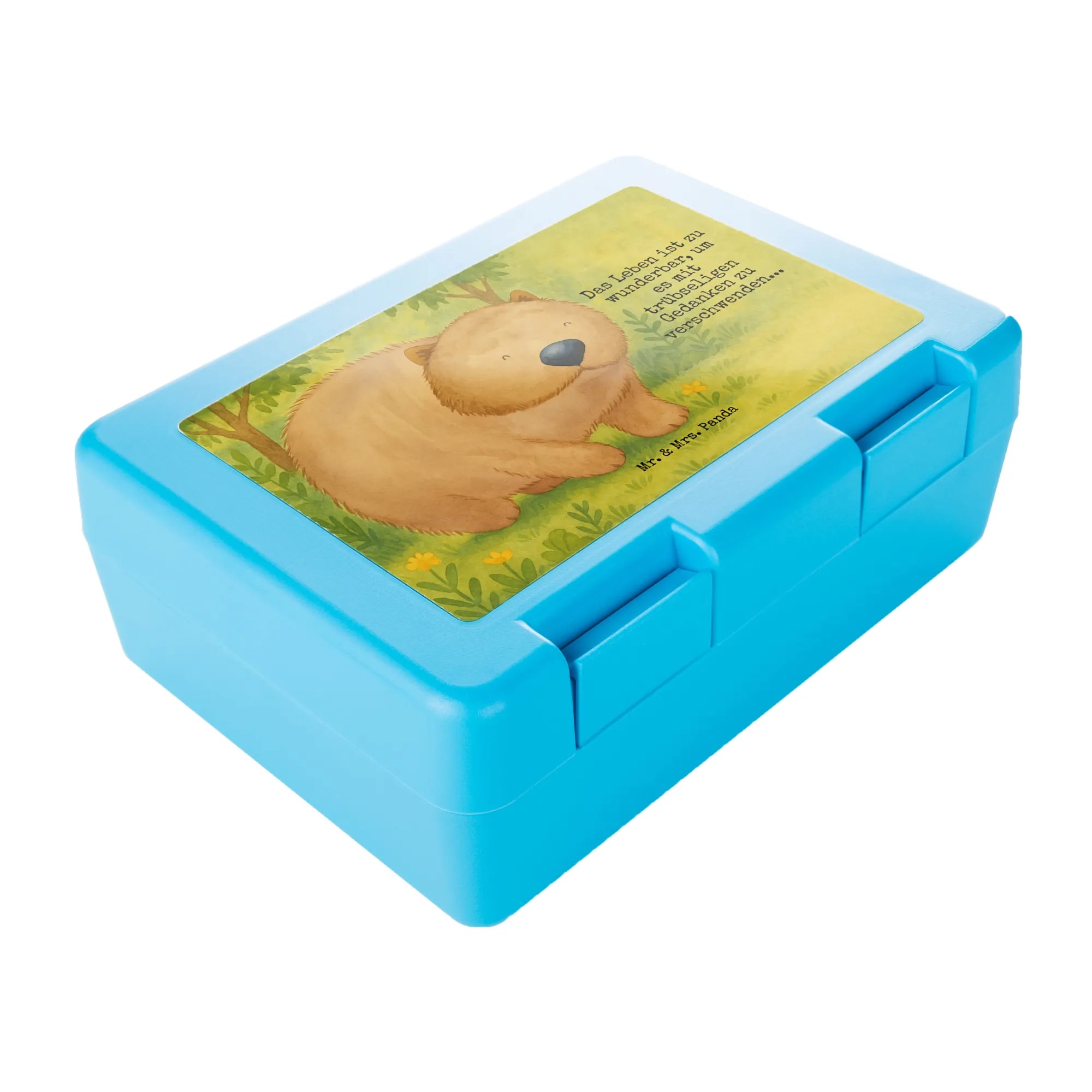 Das sanfte Aquarellmotiv von Mrs. Panda zeigt den Wombat in warmen Farben und weichen Linien – ein Motiv, das Kinder und Erwachsene gleichermaßen anspricht. Die Brotdose ist ideal als Bento Box oder Snackdose für Schule, Uni und Arbeit und eignet sich wunderbar als Geschenk zur Einschulung, zum Geburtstag oder einfach als nette Aufmerksamkeit.