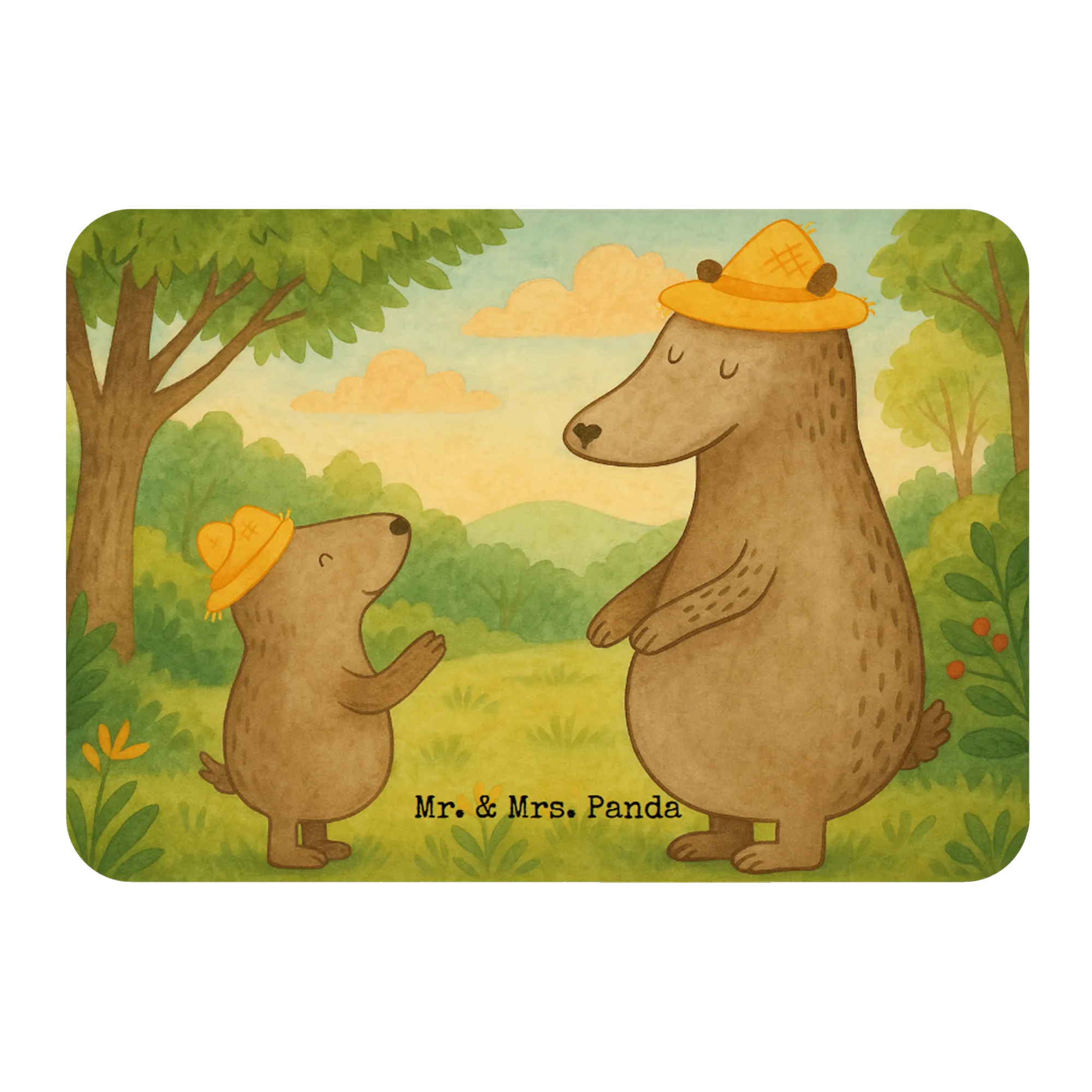 Zwei putzige Bären mit Hüten – wer könnte da widerstehen? Der große Bär, unser Papa-Bär, steht aufrecht, voller Stolz und Lebensweisheit, während der kleine Bär ihm neugierig und bewundernd zusieht. Diese Illustration fängt die Essenz der Vater-Sohn-Beziehung ein, voller Wärme und Zuneigung. Es ist, als würde man die unzertrennliche Bindung zwischen Vätern und Söhnen in einem einzigen Bild sehen. Am Vatertag oder einfach nur so – es ist eine perfekte Möglichkeit, deinem Lieblingsmenschen zu zeigen, wie wichtig er für dich ist. Hier wird das Glück zelebriert, das uns die Familie bringt. Und ganz ehrlich, wer liebt nicht die Vorstellung von gemeinsamen Abenteuern, bei denen die Bären das Leben in vollen Zügen genießen?