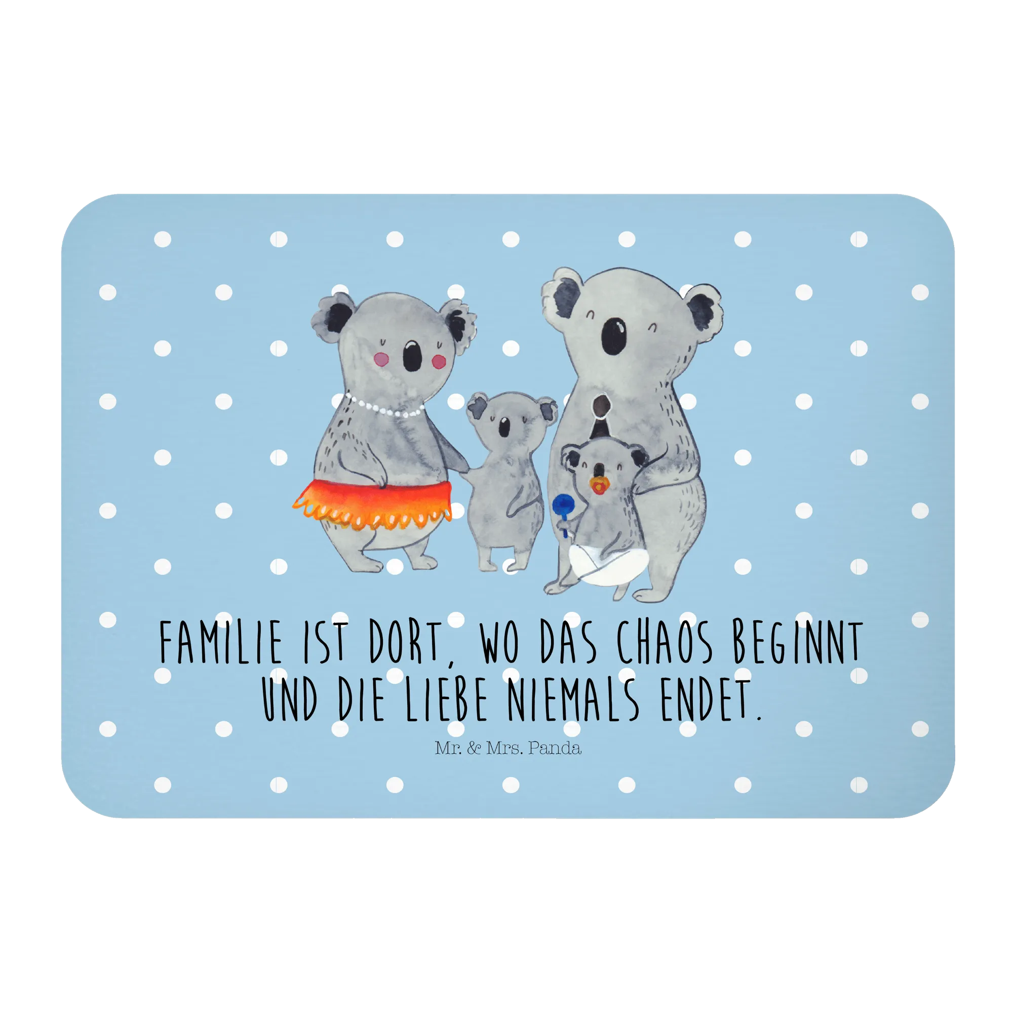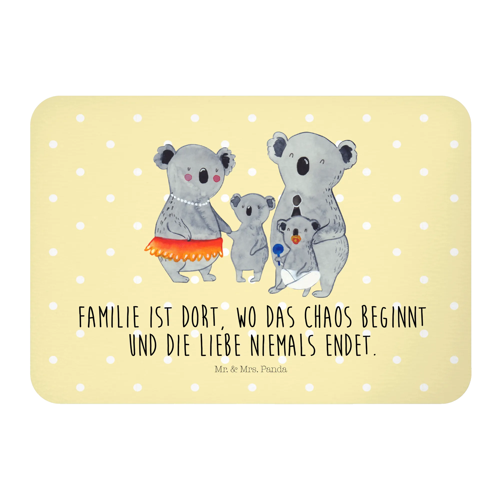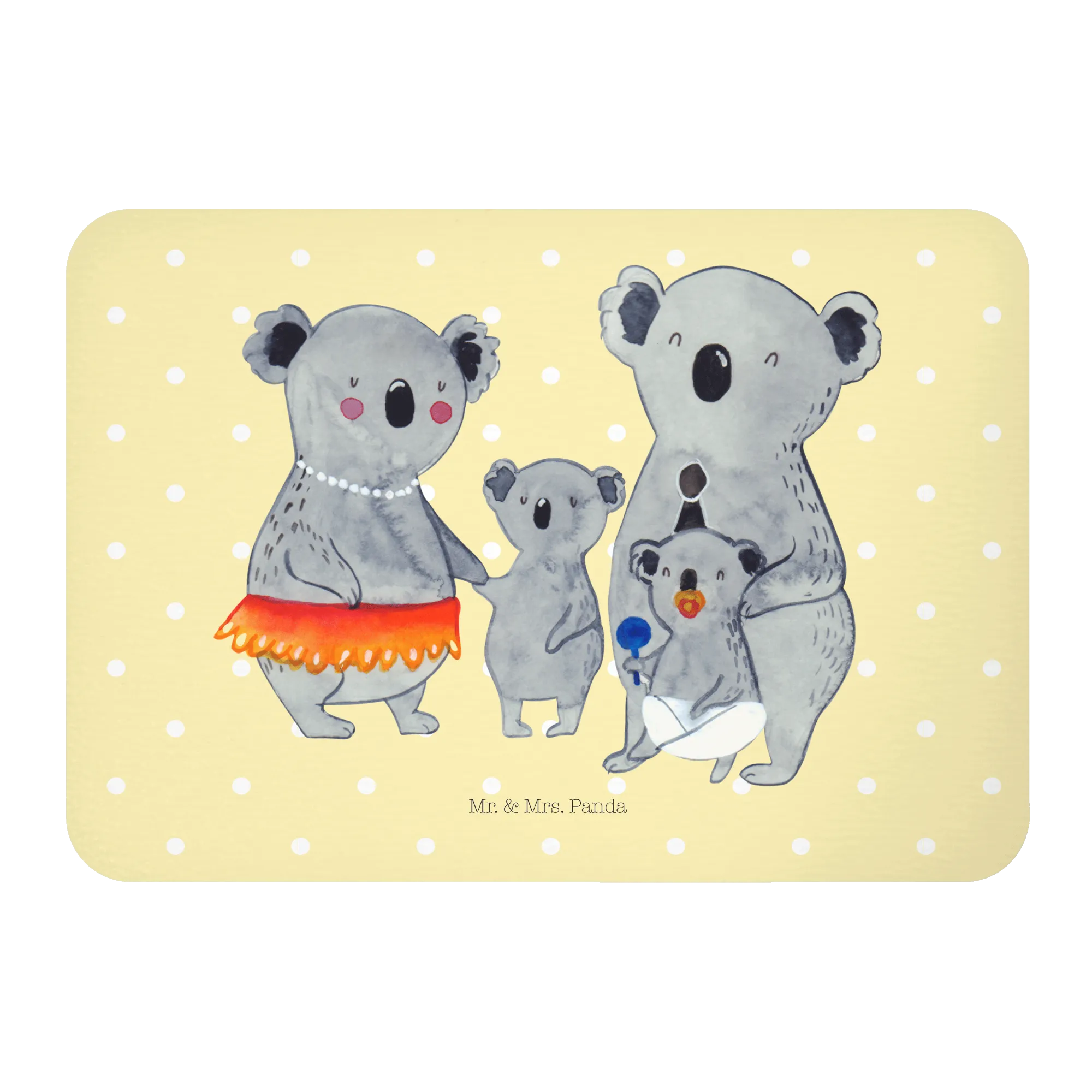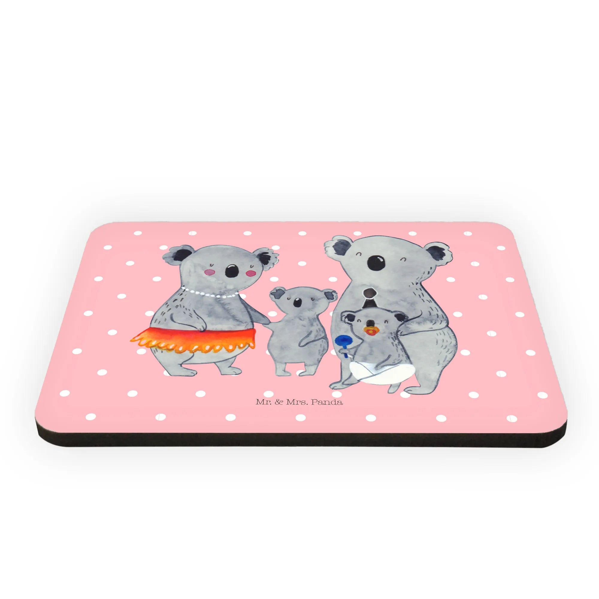 Introducing the delightful Koala Family magnet from Mr. & Mrs. Panda! This whimsical piece is more than just a refrigerator magnet—it's a heartfelt reminder of what family means. Crafted from high-quality materials and designed with love, this magnet features a charming illustration of a happy koala family, with two larger koalas adorned in cute accessories like a party hat and pearl necklace, alongside two smaller koalas engaging with a bib and a toy. This vibrant and colorful design not only brings a smile but also brightens any space, making it the perfect addition to your kitchen or office magnetic board.