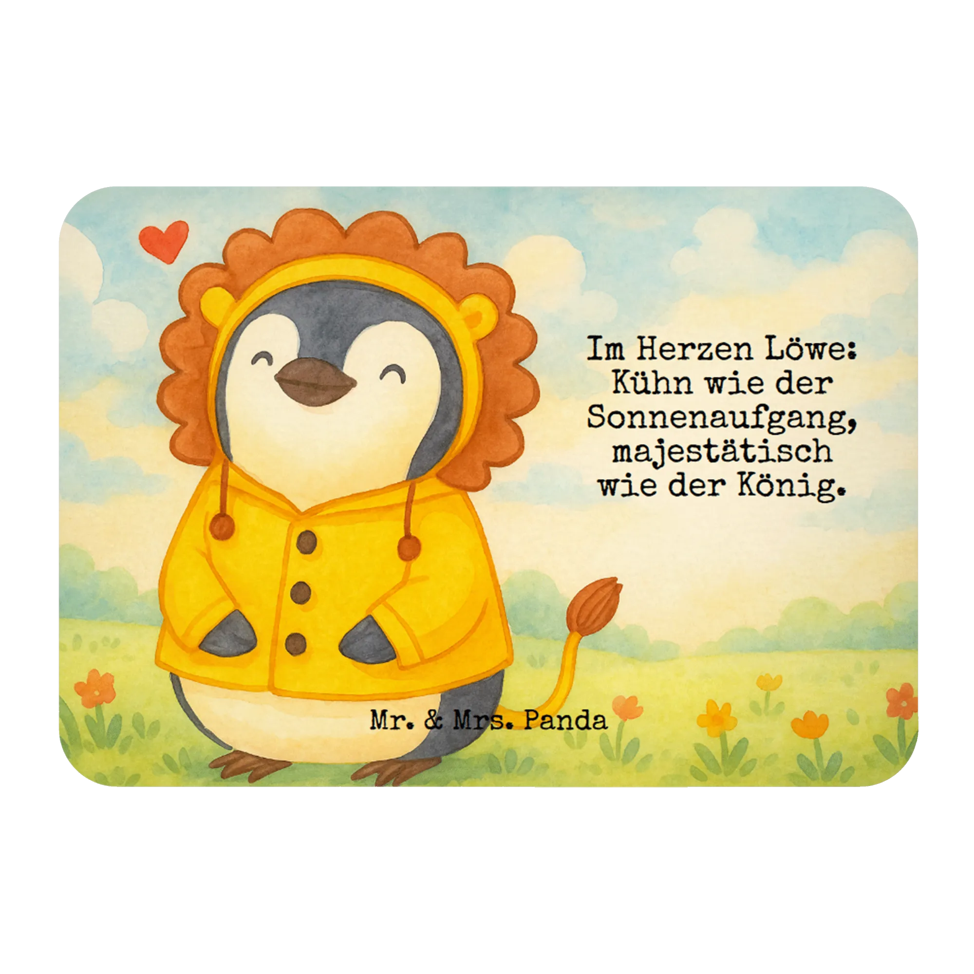 Dieser bezaubernde Pinguin, der sich im Löwenkostüm zeigt, strahlt eine ansteckende Lebensfreude aus, die unser Herz erwärmt. Mit seinen geschlossenen Augen und dem Lächeln scheinen all seine Sorgen zu verschwinden – es ist pure Glückseligkeit! Das kleine Herz, das neben ihm schwebt, steht für Liebe und Geborgenheit, die wir alle so sehr brauchen. Lass dich von diesem liebevollen Motiv, das die Aspekte des Sternzeichens Löwe symbolisiert, inspirieren. Diese Figur ist nicht nur eine großartige Geschenkidee zum Geburtstag, sondern auch ein perfekter Begleiter für jeden, der die Leidenschaft und Energie des Löwen in seinem Leben spüren möchte. Hergestellt mit viel Liebe, wird dieses Bild sicherlich jedem ein Lächeln ins Gesicht zaubern und Freude verbreiten.