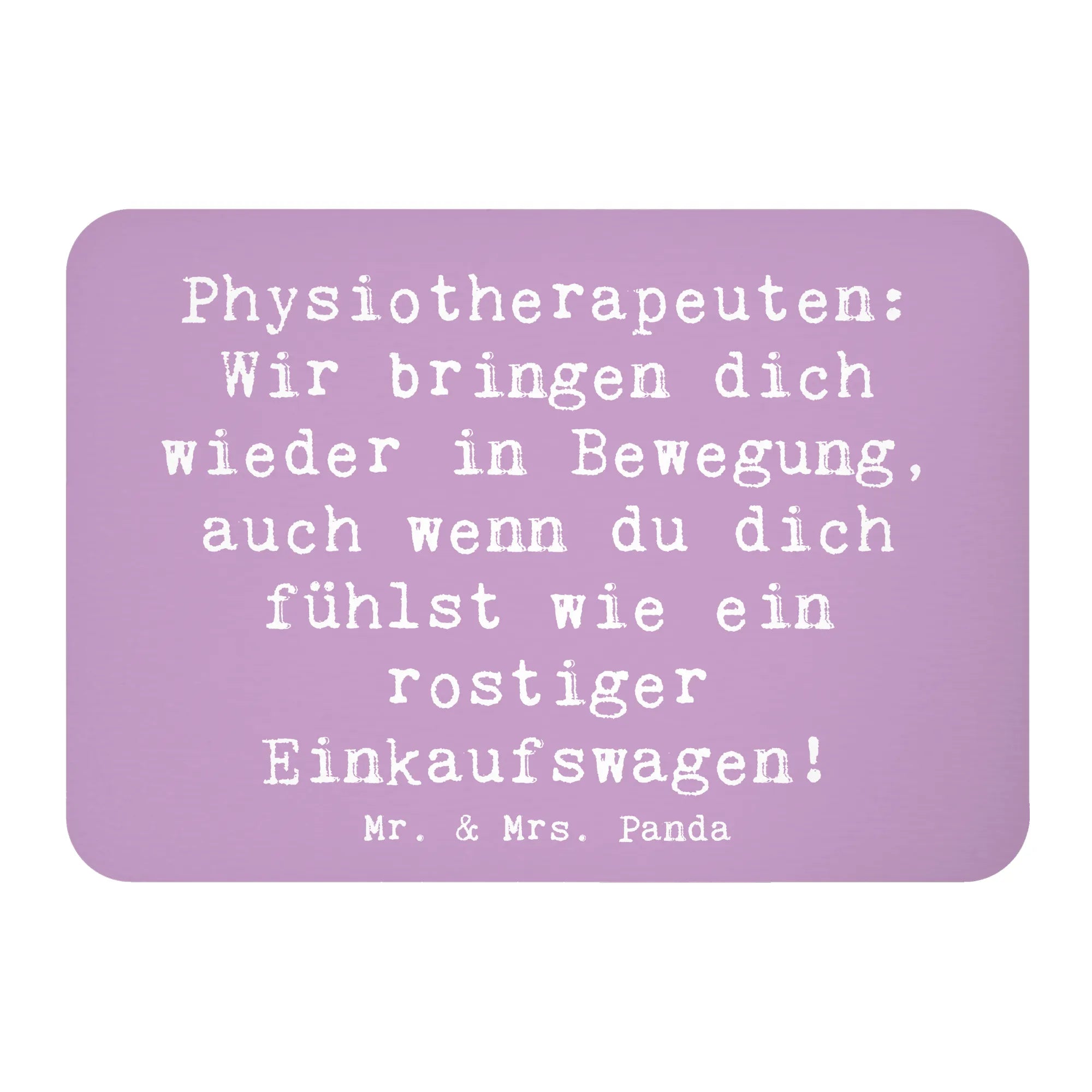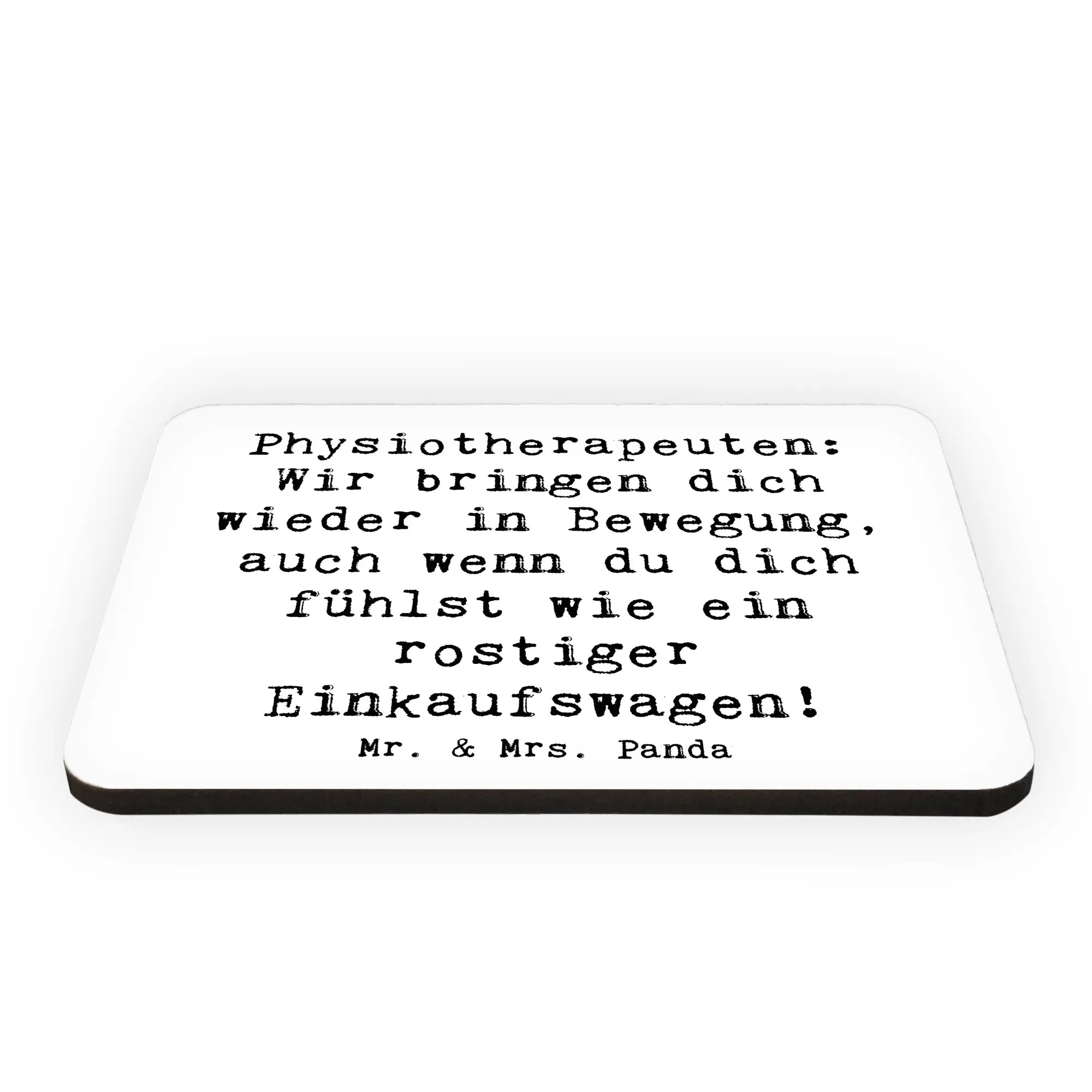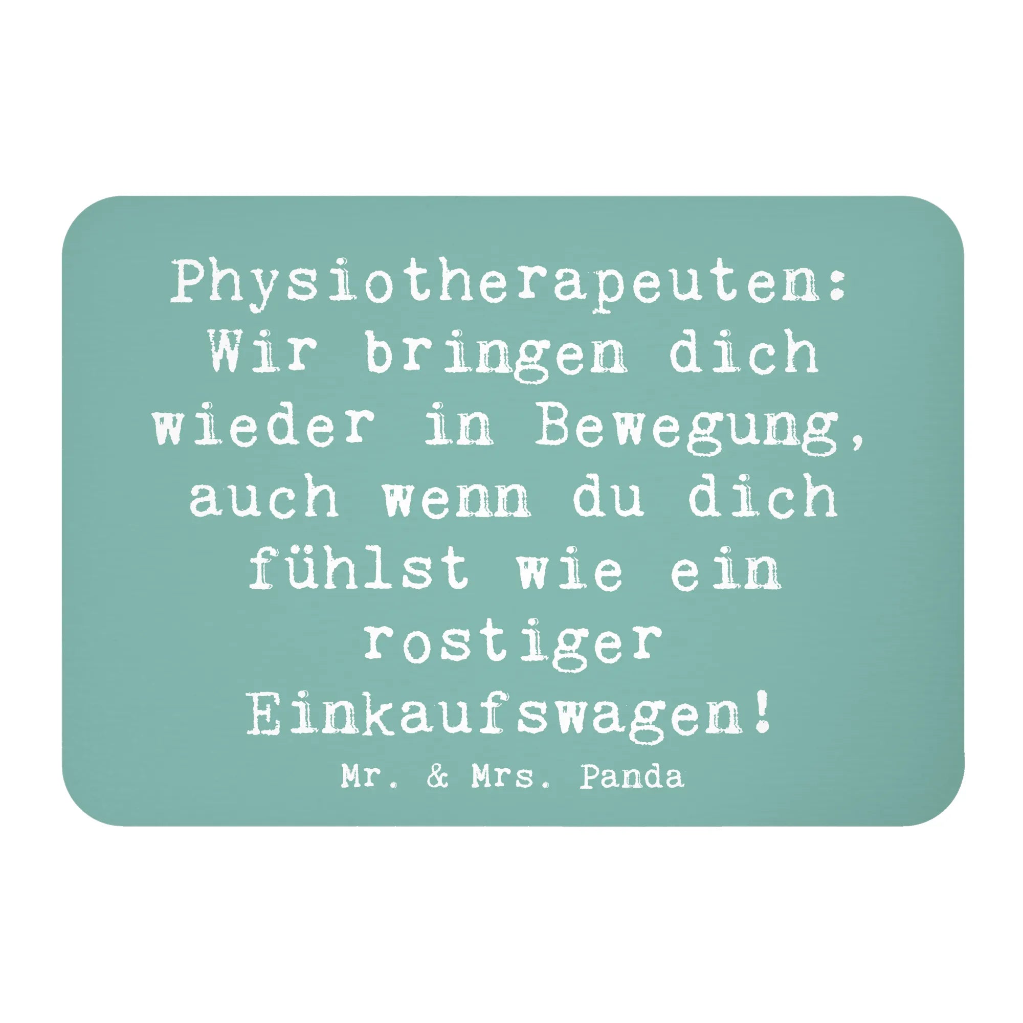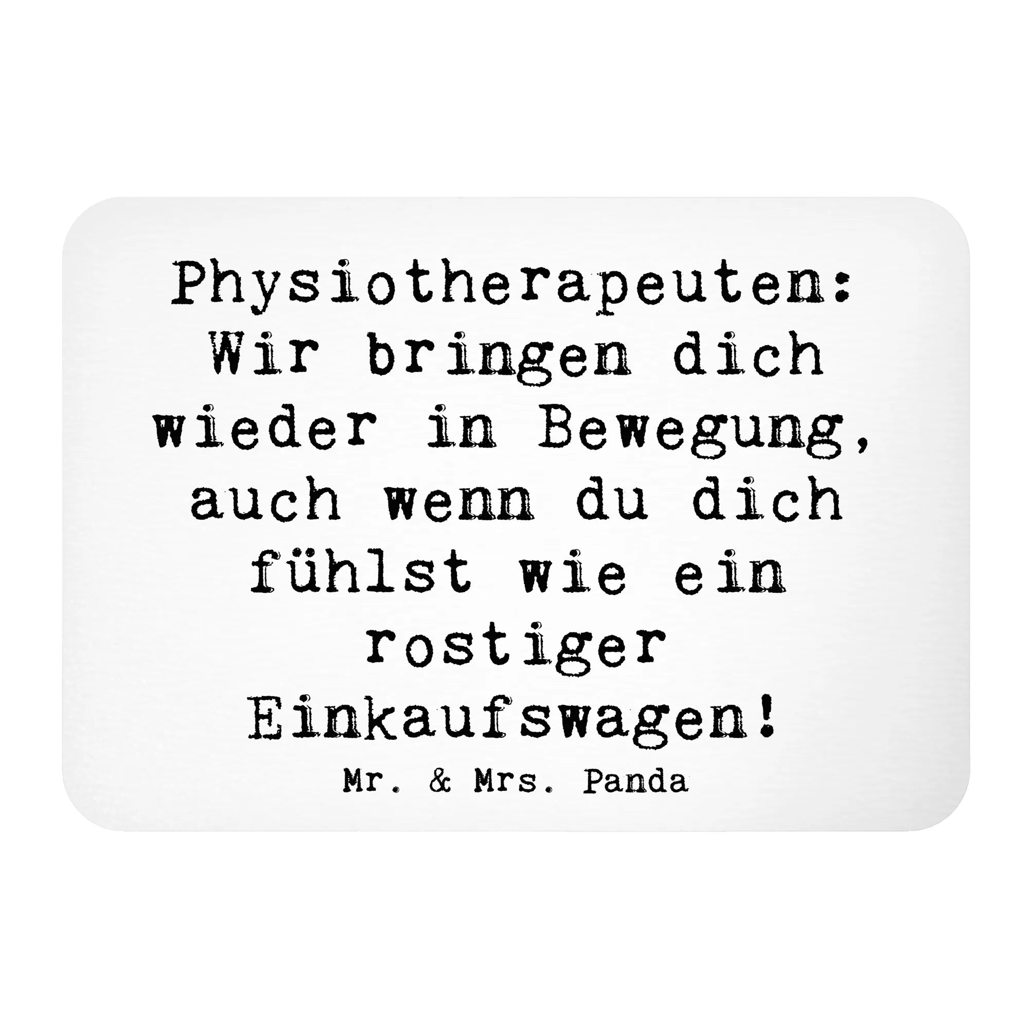 Magnet Saying Physiotherapeuten: Wir bringen dich wieder in Bewegung, auch wenn du dich fühlst wie ein rostiger Einkaufswagen! - White