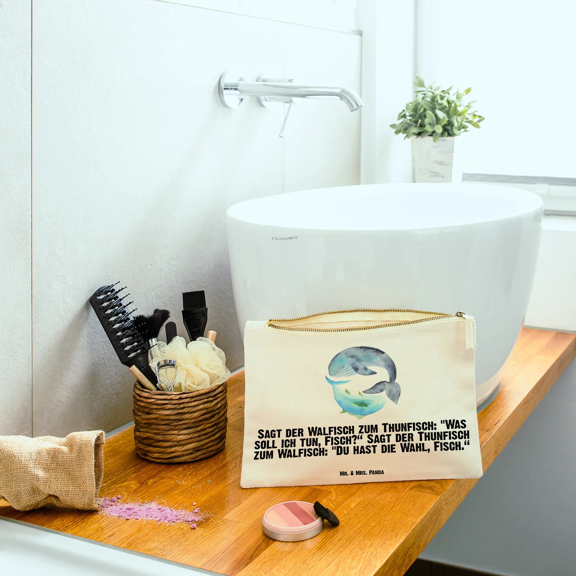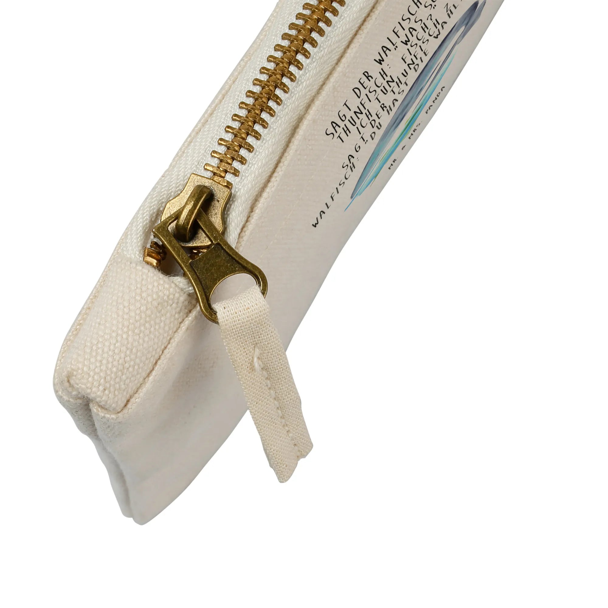 Whether you’re heading to the office, hitting the gym, or off on adventures, this fun and whimsical make-up bag is an ideal companion. It also serves as a perfect gift for birthdays, holidays, or just because! With its unique aesthetic and thoughtful message — "Sagt der Walfisch zum Thunfisch: 'Was soll ich tun, Fisch?' Sagt der Thunfisch zum Walfisch: 'Du hast die Wahl, Fisch.'" — it brings a smile and laughter to your daily routine.
