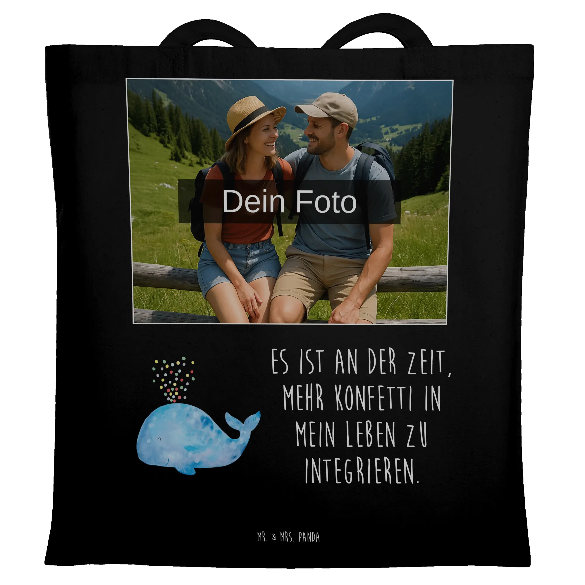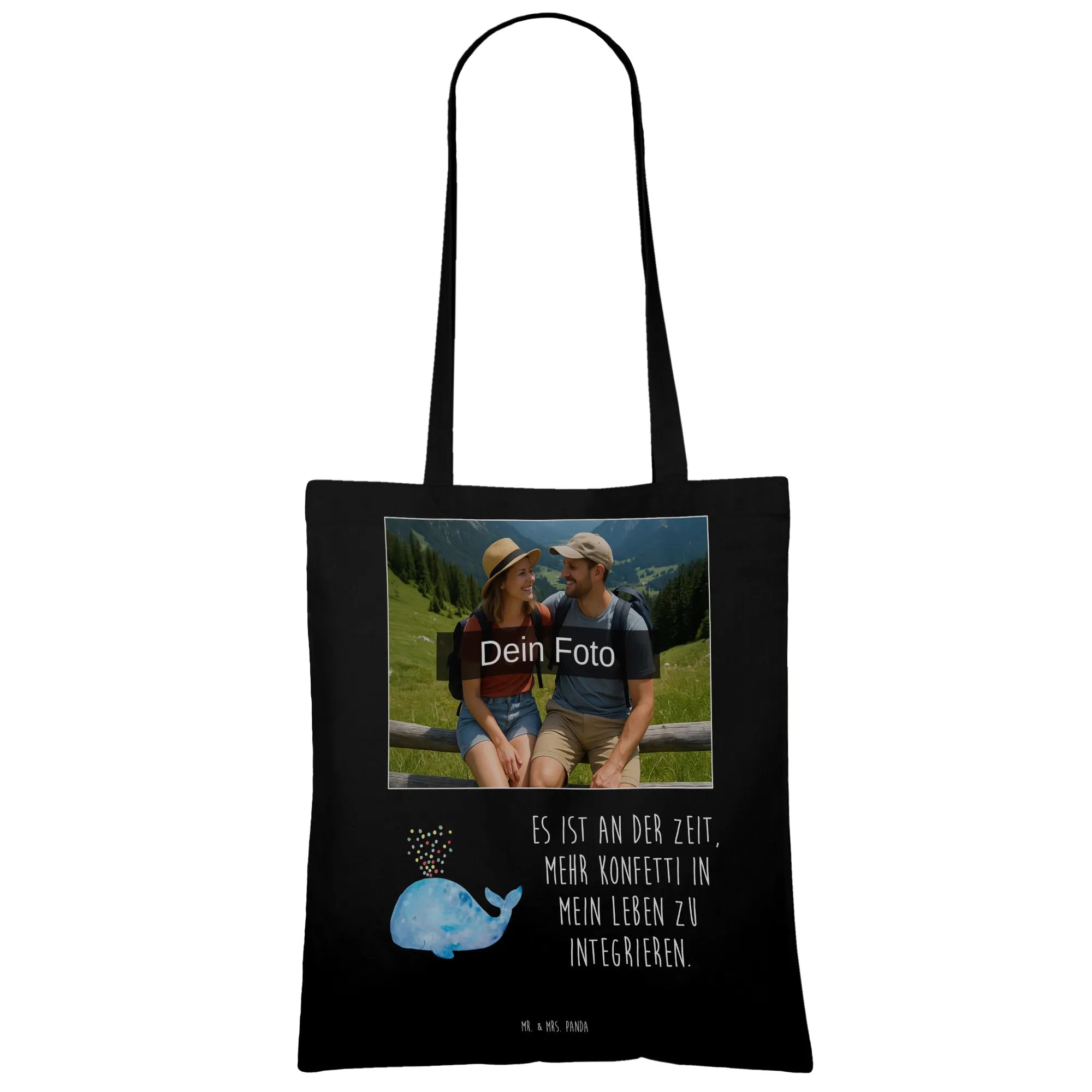 Personalisierte Foto Tragetasche Wal Konfetti - Schwarz