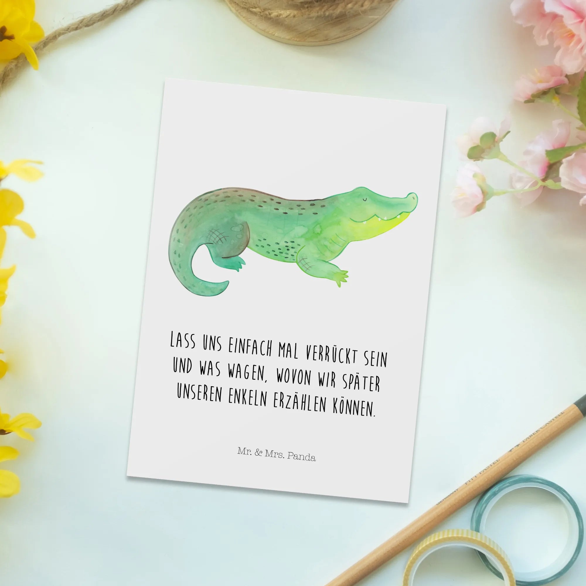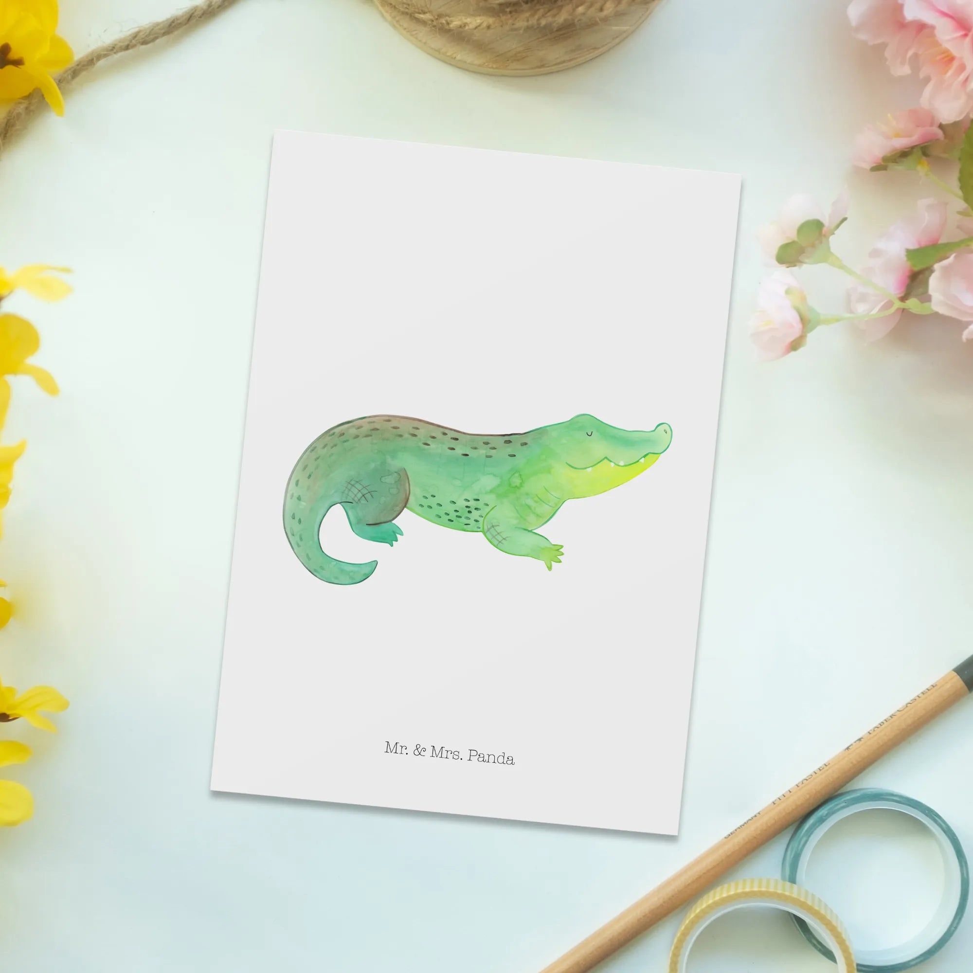 Dare to dive into a world of fun and spontaneity with our Crocodile Postcard from Mr. & Mrs. Panda’s enchanting Marine Animals collection! This isn't just any postcard; it's an invitation to embrace adventure and celebrate your favorite people in the quirkiest way possible. Perfect for spontaneous souls and those who bask in the beautiful chaos of life, this unique postcard captures a friendly crocodile swimming joyfully beneath calming waves in soft greens and blues.