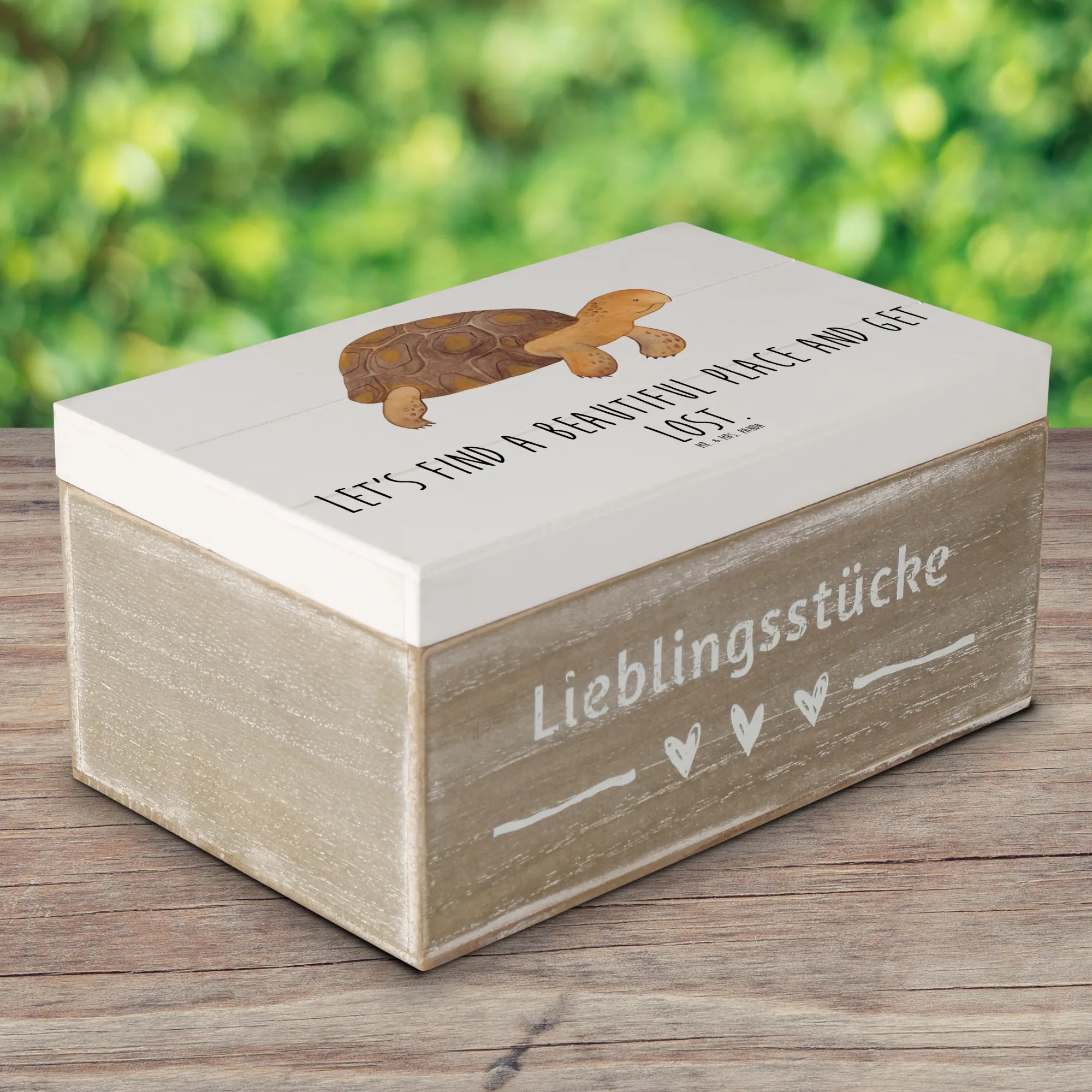 Wooden chest tortoise March - 22 x 15 cm - with saying - White