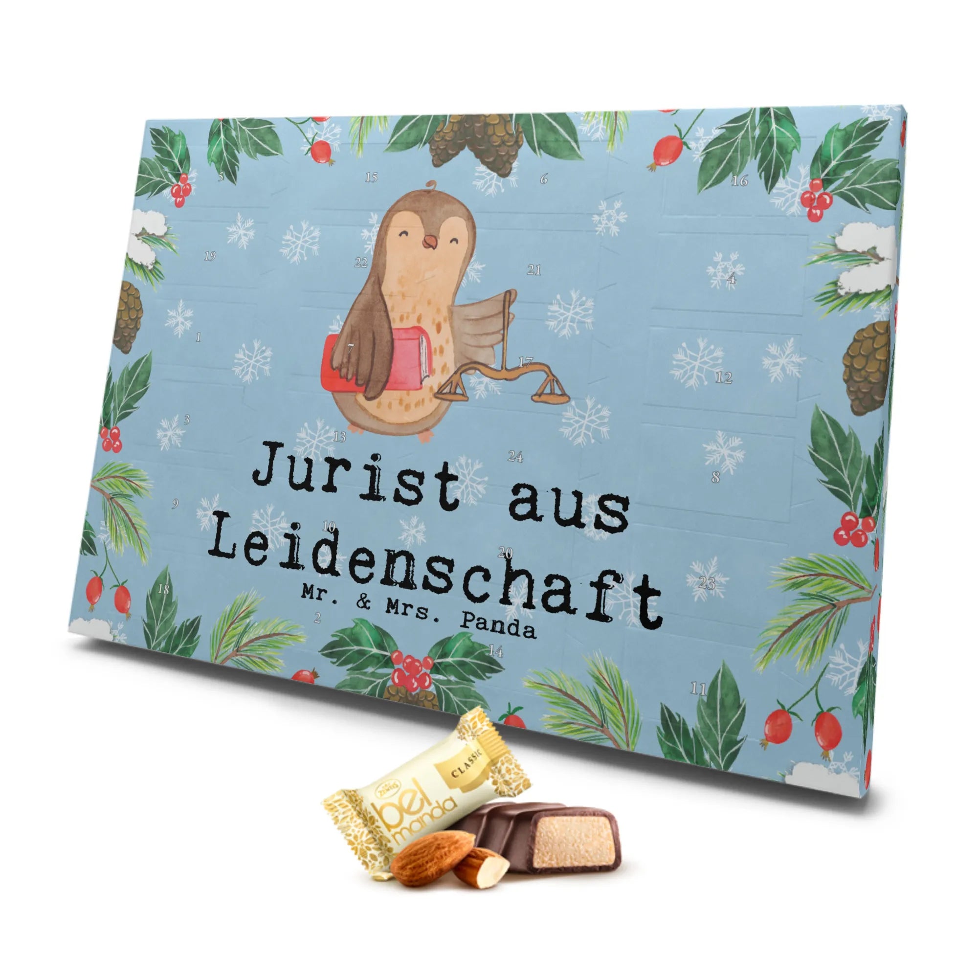 Der wunderschöne Marzipan Adventskalender 'Jurist aus Leidenschaft' von Mr. & Mrs. Panda ist das perfekte Geschenk für alle Jura-Studenten, frischgebackene Juristen und alle, die das Jurastudium mit viel Engagement und Leidenschaft verfolgen. Egal, ob zum bestandenen Staatsexamen, zum Abschluss des Jurastudiums oder einfach nur um einem lieben Kollegen oder einer Kollegin für ihren Einsatz zu danken – dieser Adventskalender sorgt für süße Vorfreude in der Adventszeit.