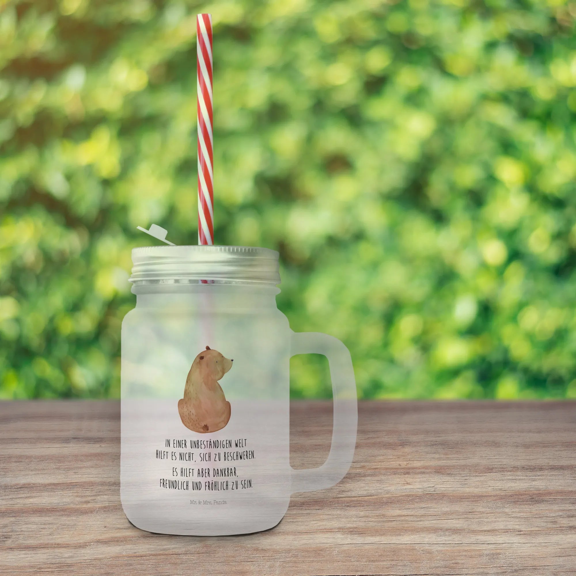 Mason jar drinking glass bear shoulder look glass, handle glass, cocktail glass, summer glass, Mason Jar, preserving glass, drinking glass, bear, teddy, teddy bear, cuddly toy, self-esteem, motivation, wisdom, bears, bear love, world view