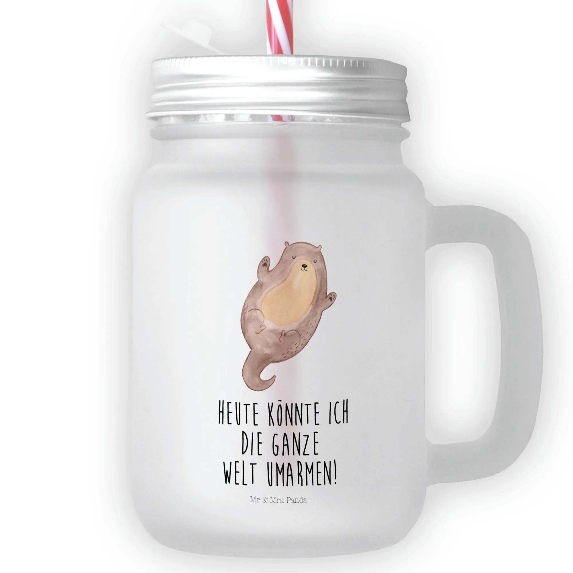 Introducing the delightful Mason Jar Drinking Glass featuring the charming motif of an Otter Hugging, straight from our beloved Otter Collection by Mr. & Mrs. Panda!