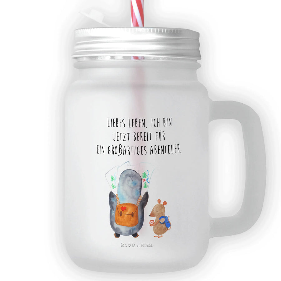 Mason jar drinking glass Penguin & Mouse Hiker glass, handle glass, summer glass, Mason Jar, cocktail glass, drinking glass, preserving glass, Penguin, North Pole, Winter, Penguins, road trip, excursion, penguins, hiking, penguin, adventurer, adventure, wanderlust