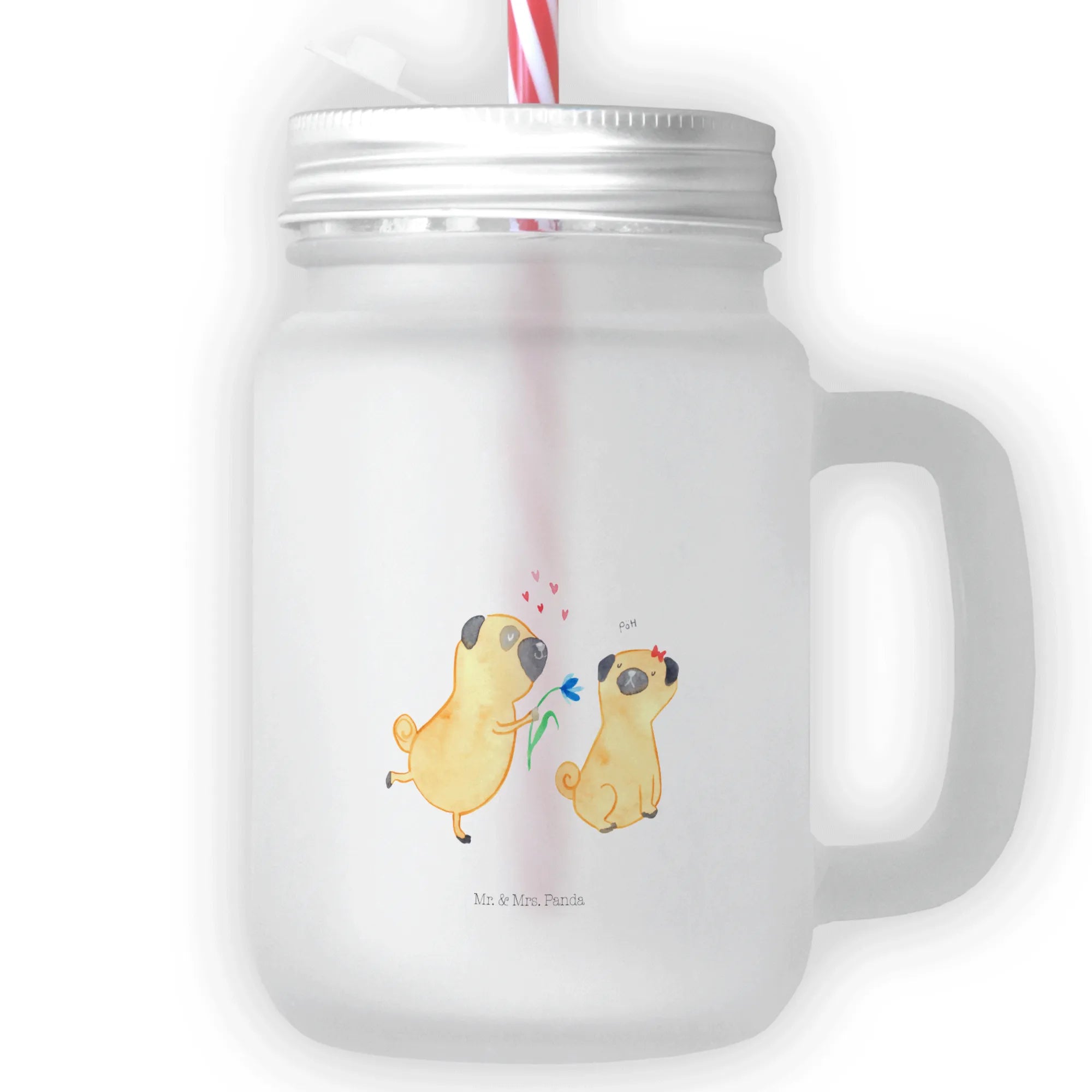 Are you searching for the perfect gift that instantly brings a smile to the face of a dog lover in your life? Look no further than our delightful Mason Jar Drinking Glass featuring the ever-adorable "Pug in Love" motif from the Dog Collection by Mr. & Mrs. Panda!