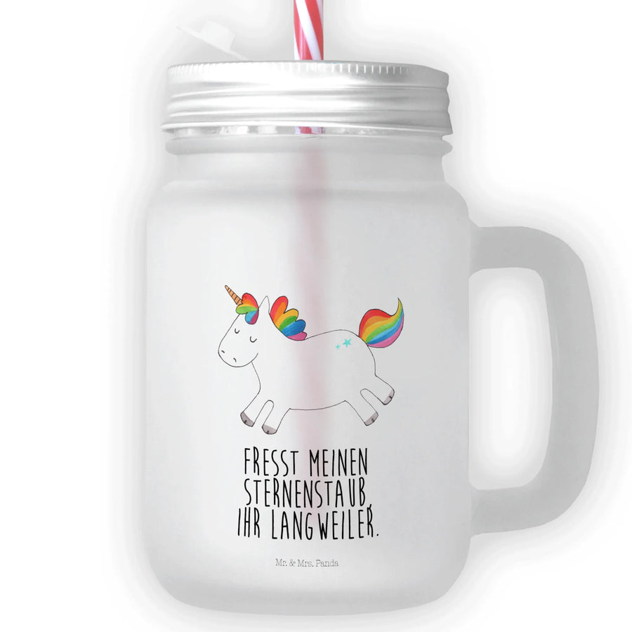 Introducing the enchanting Mason Jar Drinking Glass Unicorn Happy from the delightful Unicorn Collection by Mr. & Mrs. Panda! 🦄 This charming glass is designed to fill your summer moments with joy, making it the perfect gift for anyone looking to add a splash of cheerfulness to their drinks.