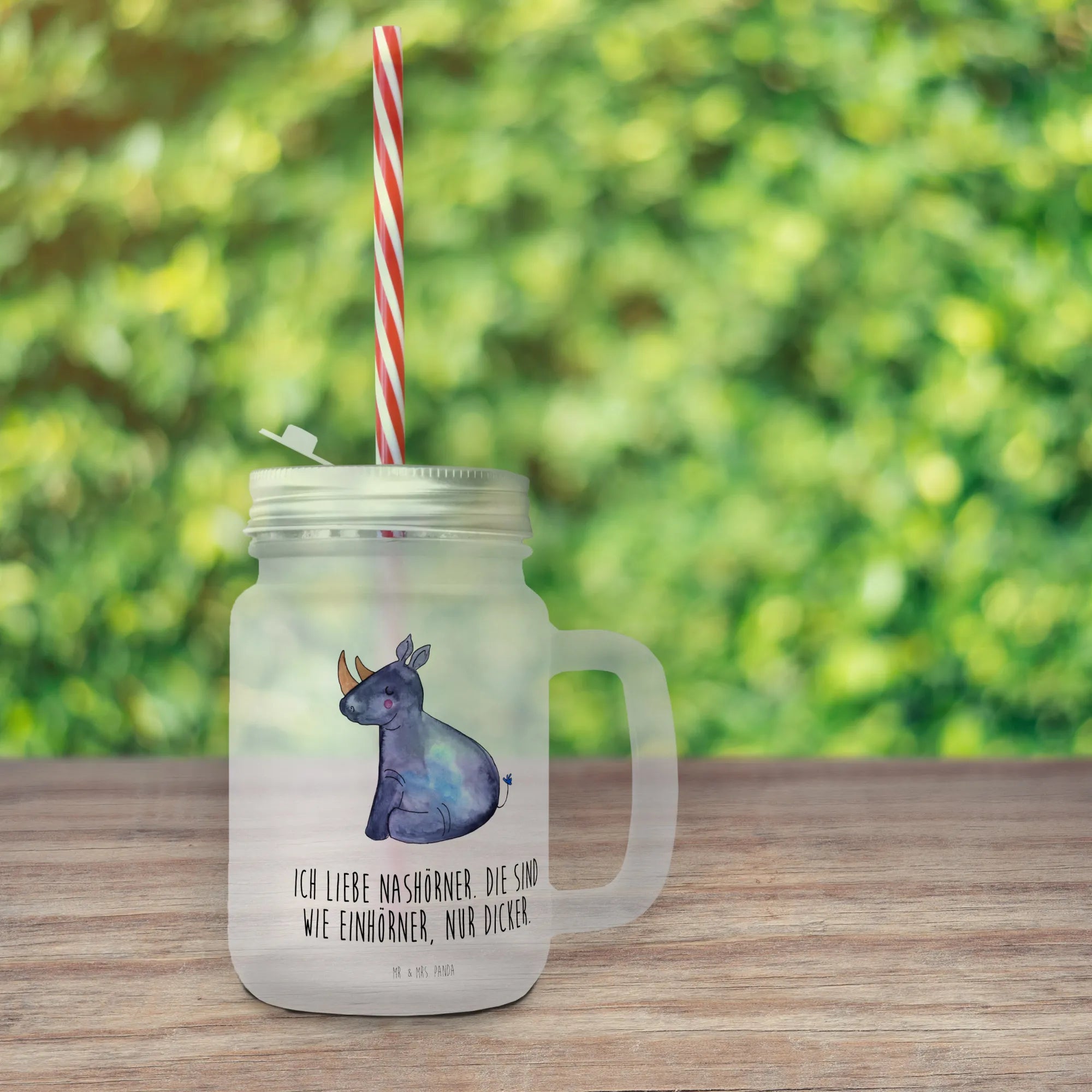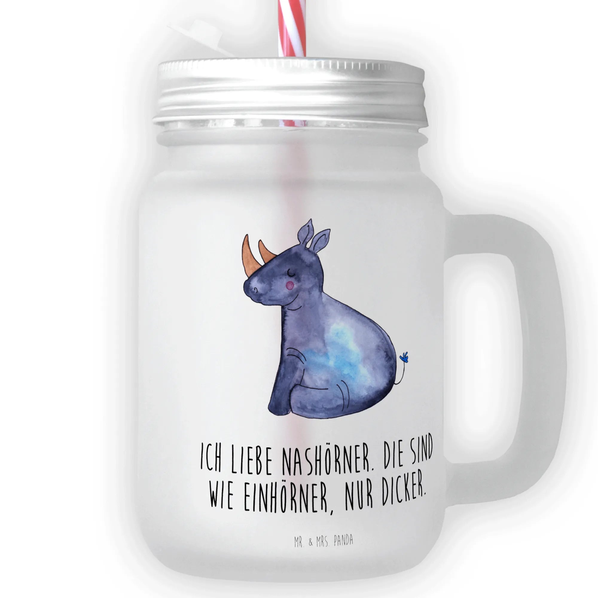 Mason jar drinking glass unicorn rhino - with a saying