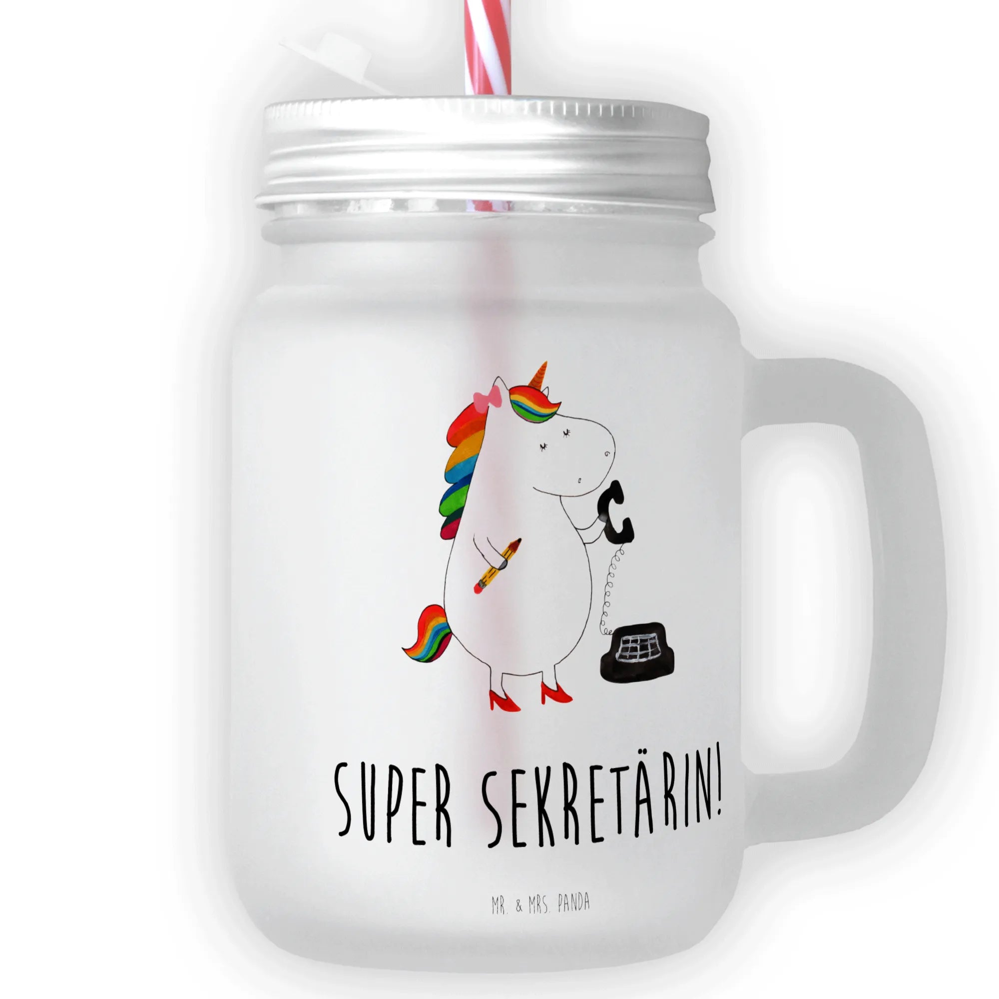 Introducing the charming Mason Jar Drinking Glass - Unicorn Secretary from the delightful Unicorn Collection by Mr. & Mrs. Panda! This beautifully designed glass is more than just a drinking vessel; it's a piece of art that will bring joy to every sip, making it the perfect gift for office workers, secretaries, and unicorn lovers alike.