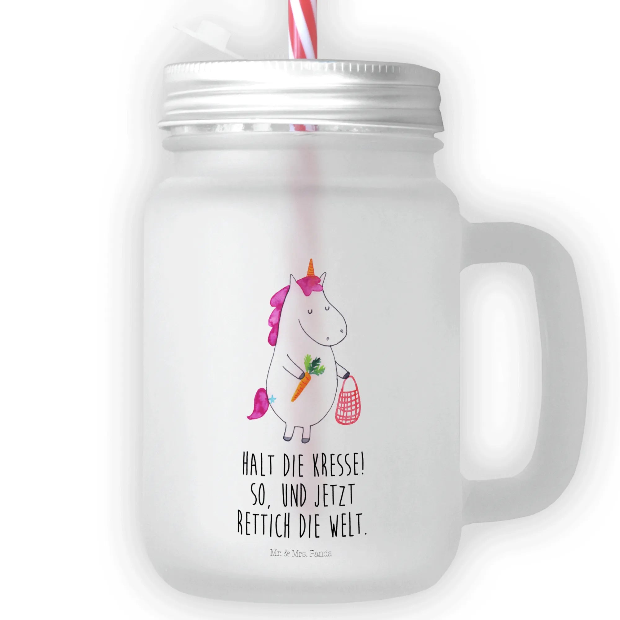 Transform your beverage experience with the Mr. & Mrs. Panda Mason Jar Drinking Glass! This stylish item measures 130 mm x 80 mm (5 inch x 3 inch) and weighs 415 g (15 oz), crafted from high-quality satin-finish glass. The adorable quotes and designs bring personality to your drink, making each sip enjoyable. The practical silver metal lid not only looks great but protects your drinks from dust and insects, making it perfect for outdoor fun! Ideal for cold drinks like cocktails and iced teas, this gorgeous glass also comes with a chic reusable straw. Depending on your beverage, the glass highlights different colors in a fun way! Keep it clean with gentle hand-washing to retain its beauty. Discover the joy of drinking with Mr. & Mrs. Panda!