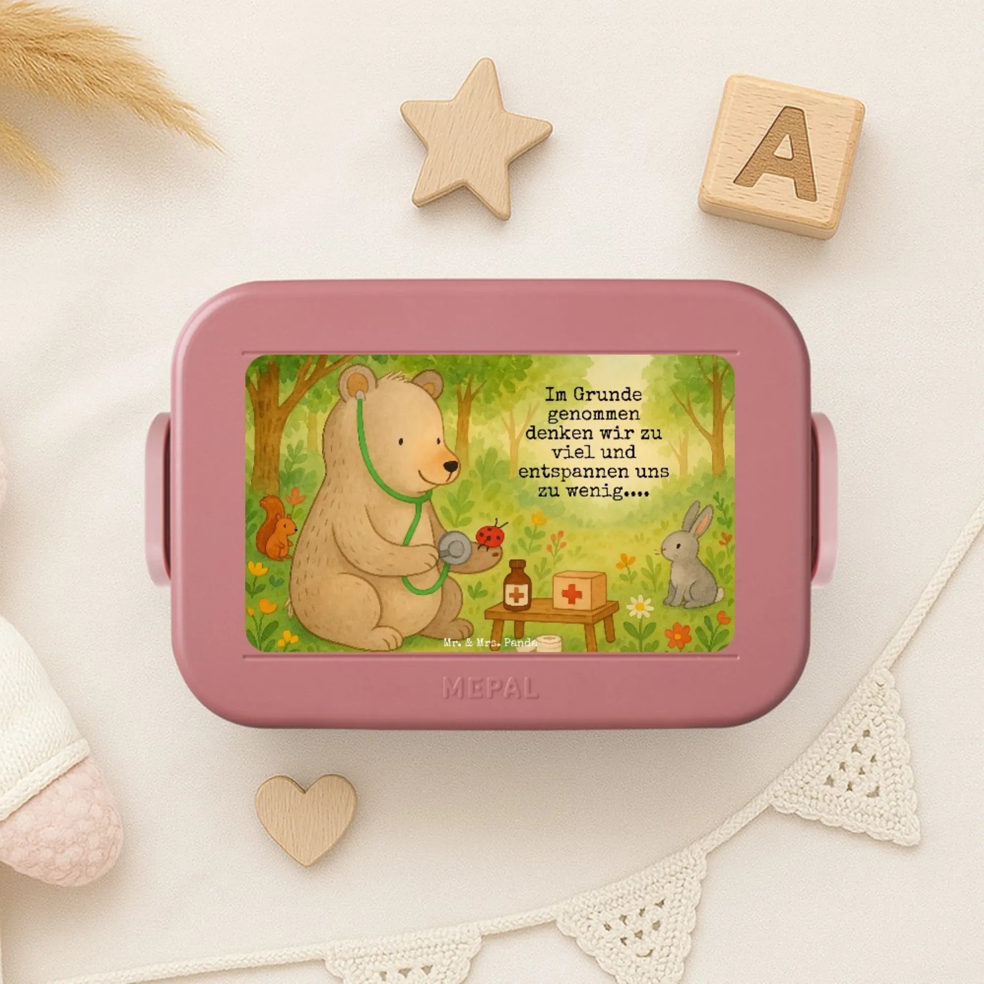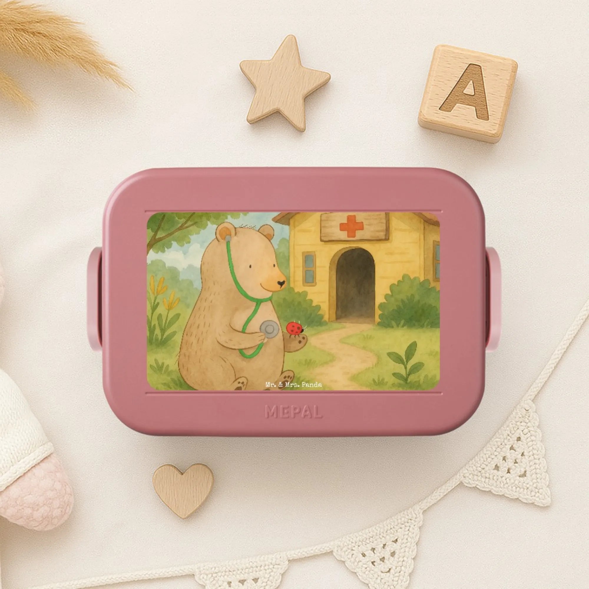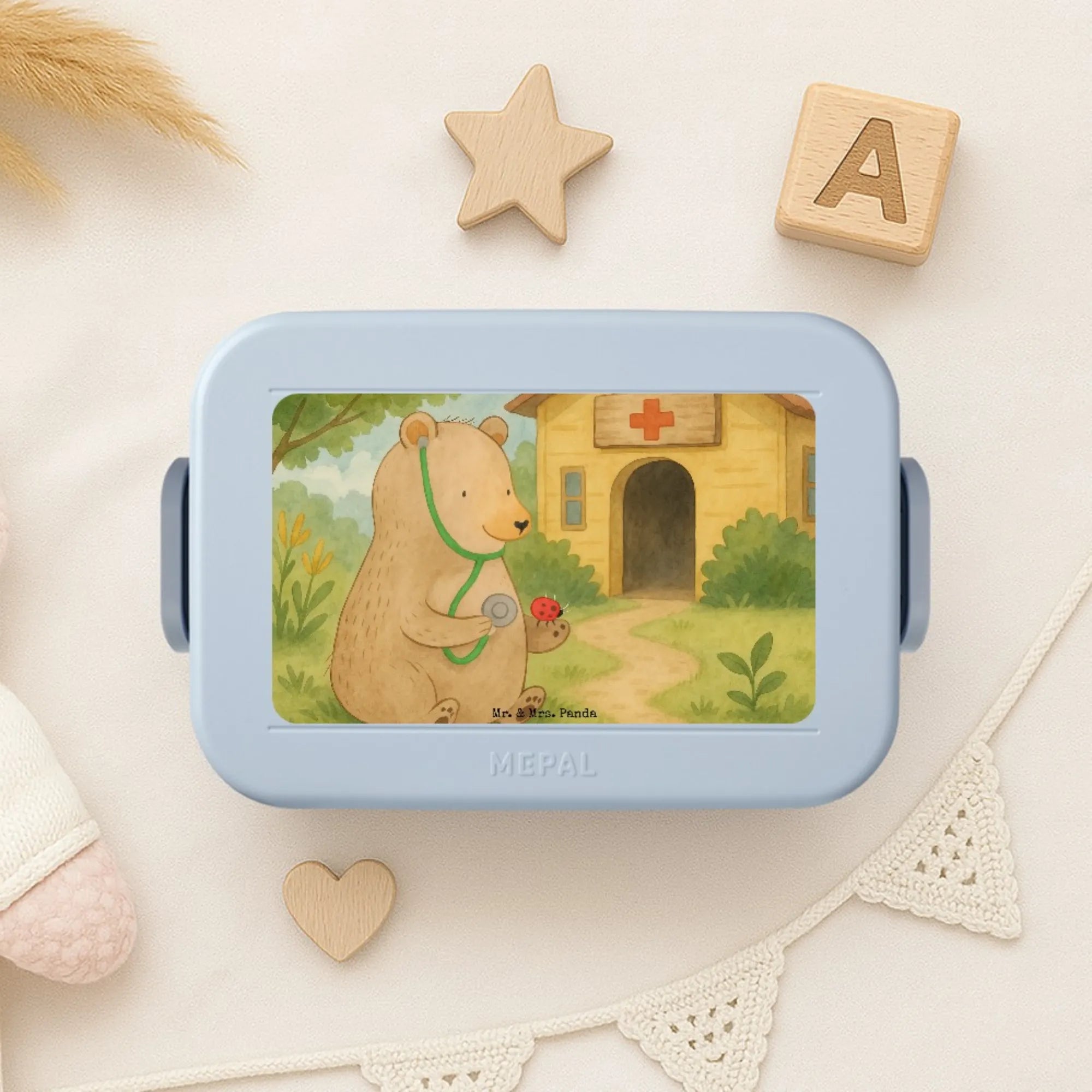 MEPAL Bentobox Bär Arzt Design - mit Spruch - Blau Pastell