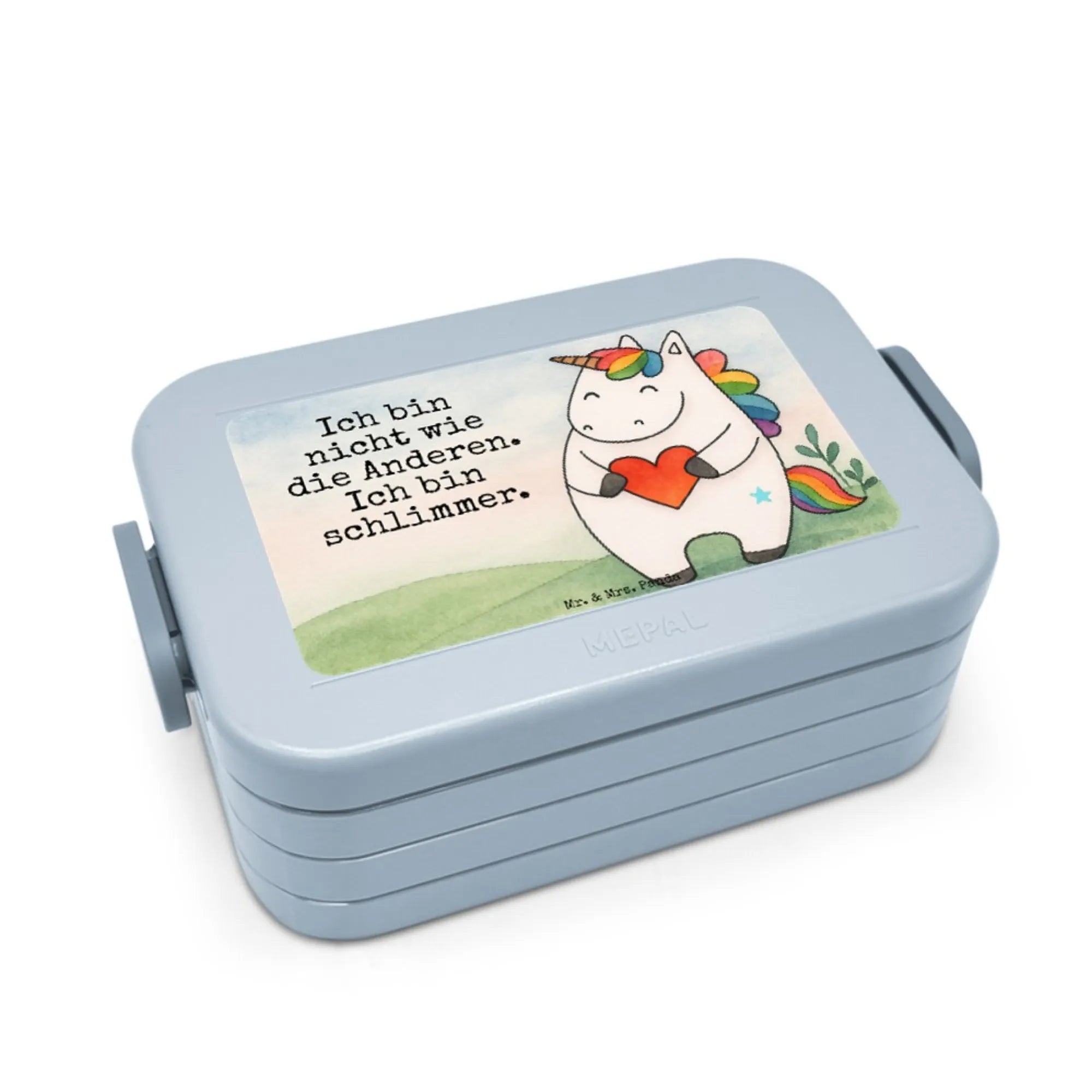 MEPAL Bentobox Einhorn Herz Design - mit Spruch - Blau Pastell