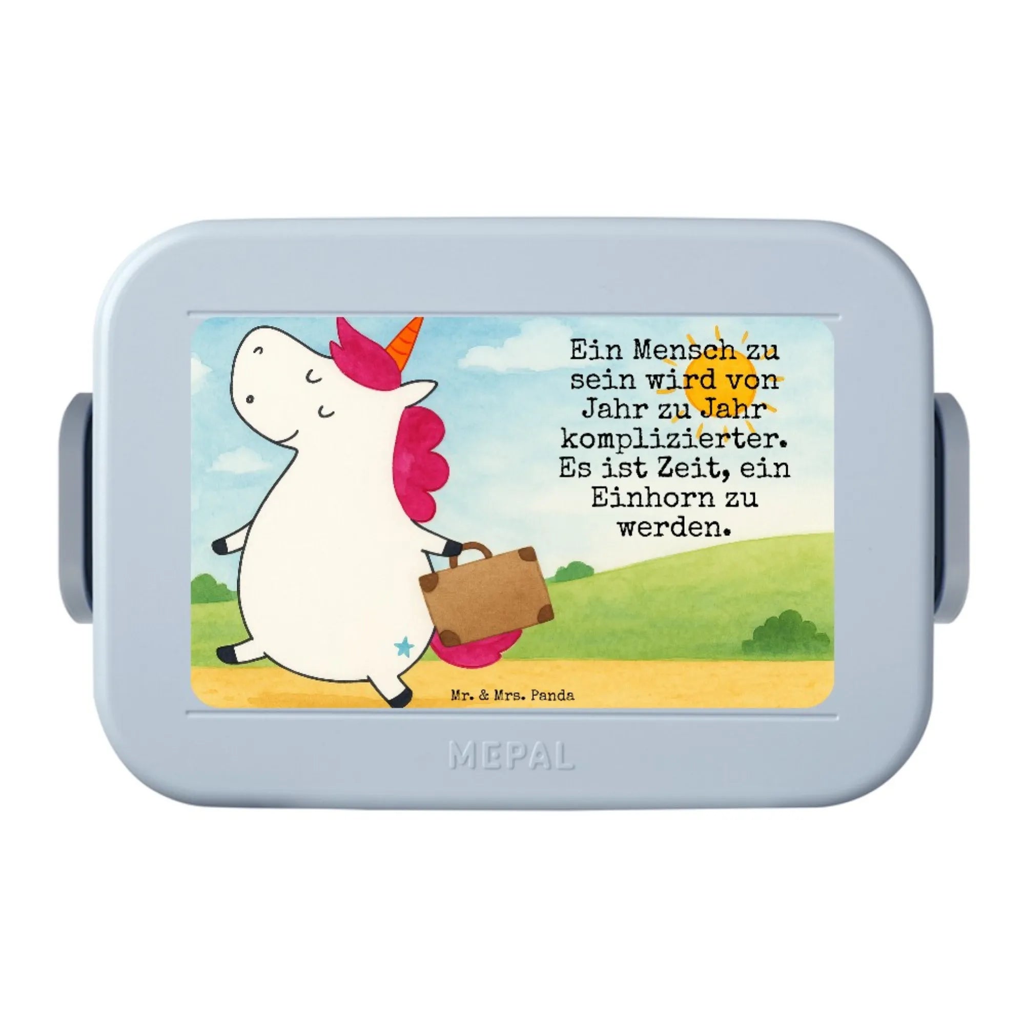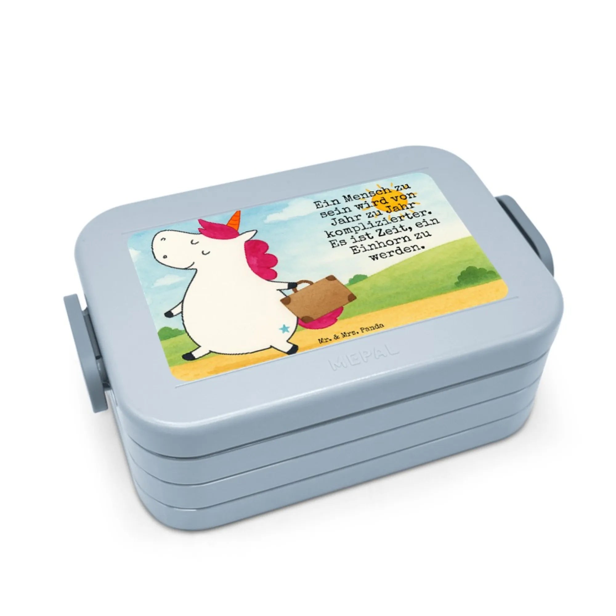 MEPAL Bentobox Einhorn Koffer Design - mit Spruch - Blau Pastell