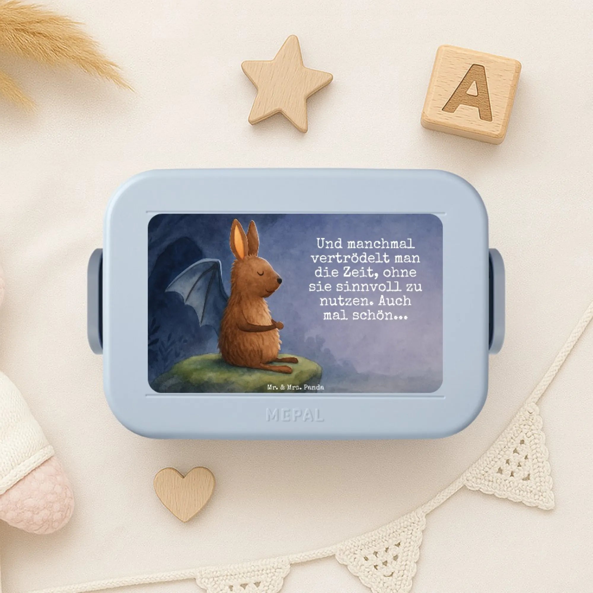 MEPAL Bentobox Fledermaus Sitzen Design - mit Spruch - Blau Pastell