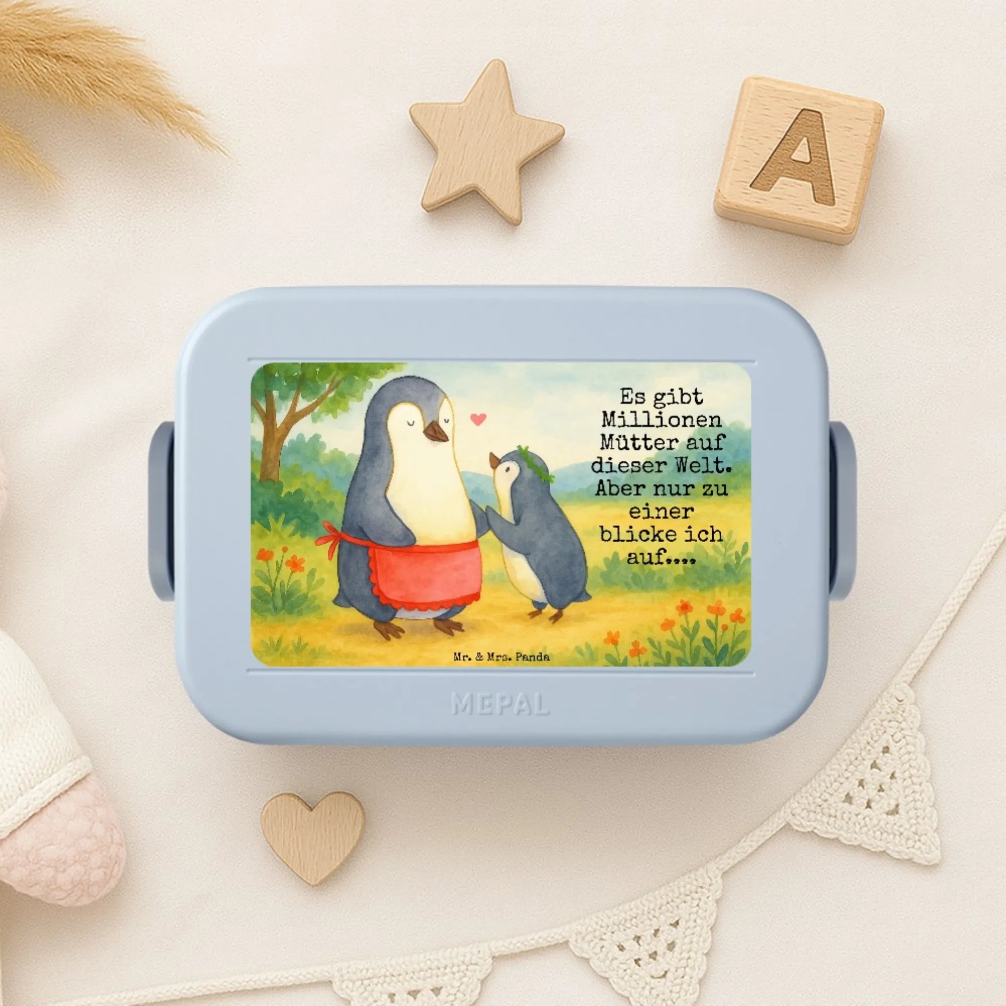 MEPAL Bentobox Pinguin mit Kind Design - mit Spruch - Blau Pastell