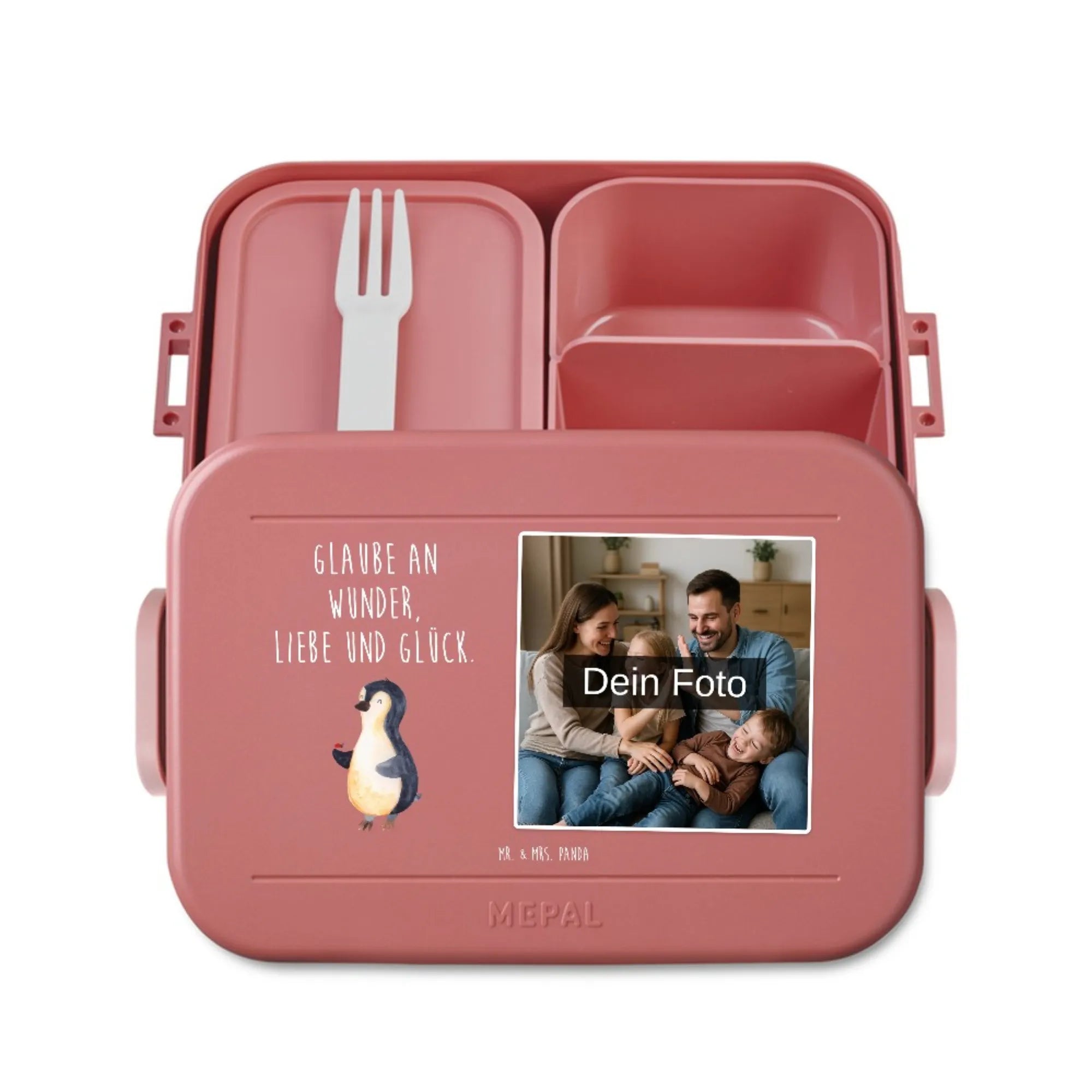 Die MEPAL Foto Bentobox von Mr. & Mrs. Panda ist deine neue Lieblings-Brotdose – personalisierbar mit deinem Wunschfoto und voller praktischer Details für den Alltag. Dank der herausnehmbaren Bento-Einsätze kannst du Snacks und Hauptspeisen sauber trennen und jederzeit neu arrangieren. Eine praktische Snackgabel ist inklusive, perfekt für Obst, Gemüse oder kleine Happen. Die Schüssel und die Einsätze sind mikrowellengeeignet (ohne Deckel), sodass du dein Essen schnell erwärmen kannst. Natürlich ist die Dose BPA-frei, lebensmittelecht und spülmaschinenfest, sodass Reinigung und Nutzung besonders einfach sind. Du kannst aus drei sanften Farben wählen: Salbeigrün, Hellblau oder Pastellrot – passend zu deinem Stil. Die MEPAL Foto Bentobox hat eine Größe von 188 mm x 61 mm x 61 mm und fasst 900 ml Inhalt, bei einem Gewicht von 325 g. Gefertigt ist sie aus hochwertigen Materialien: PP, TPE und ABS. Die Druckfläche für dein Wunschfoto beträgt 130 mm x 79 mm – so wird dein persönliches Motiv klar und strahlend präsentiert. Ob für Schule, Büro oder Picknick: diese Bento-Brotdose ist praktisch, schön und individuell. Verschenke Freude oder gönn dir selbst eine kleine, tägliche Portion Persönlichkeit und Funktionalität – Mr. & Mrs. Panda sorgt dafür, dass dein Essen sicher, hübsch und organisiert bleibt.