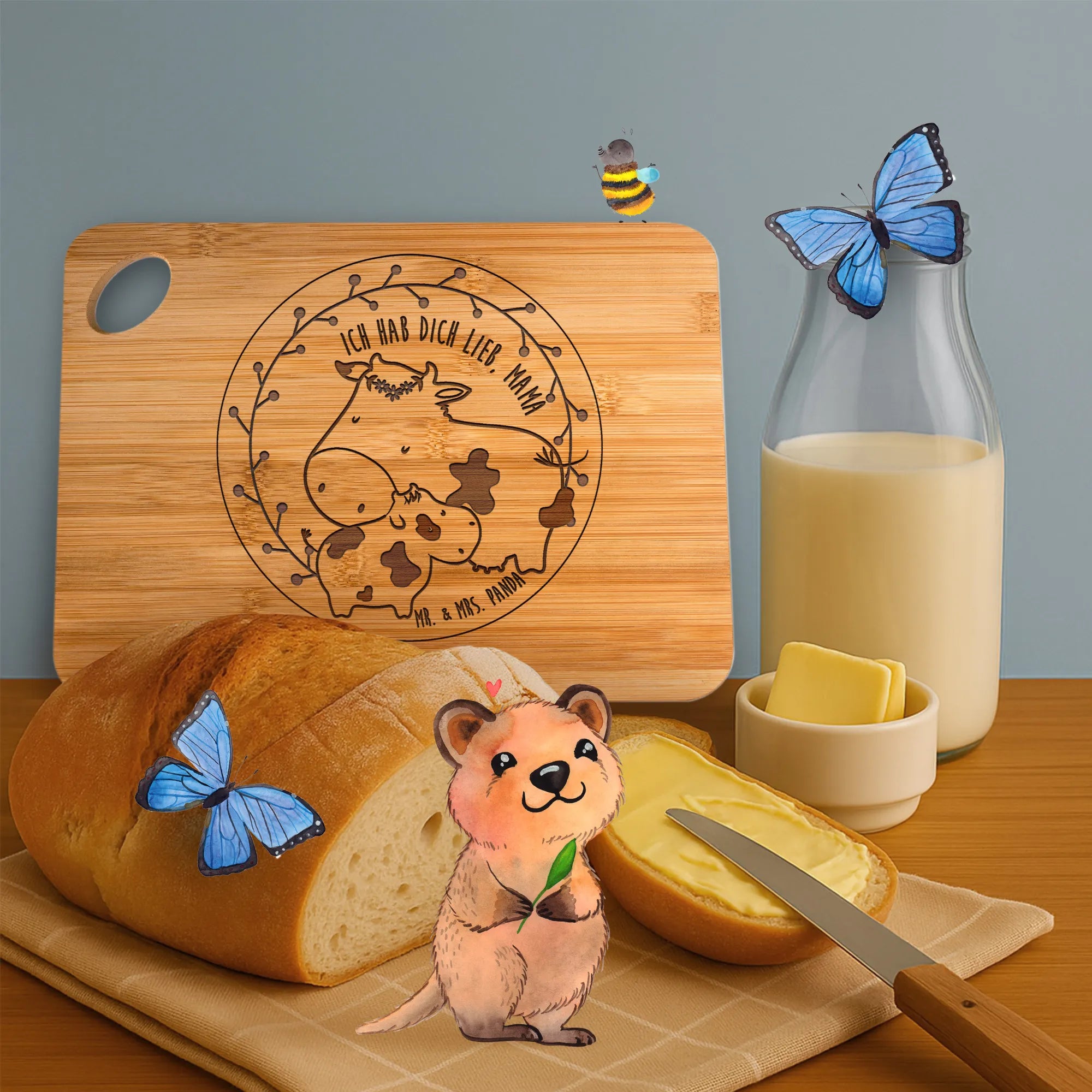 Starte deinen Tag mit einem Lächeln – hol dir das gravierte Frühstücksbrett von Mr. & Mrs. Panda und mache jeden Morgen besonders!