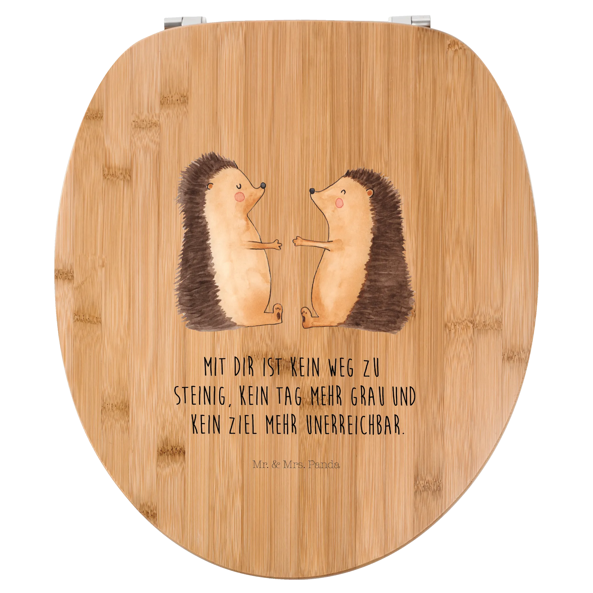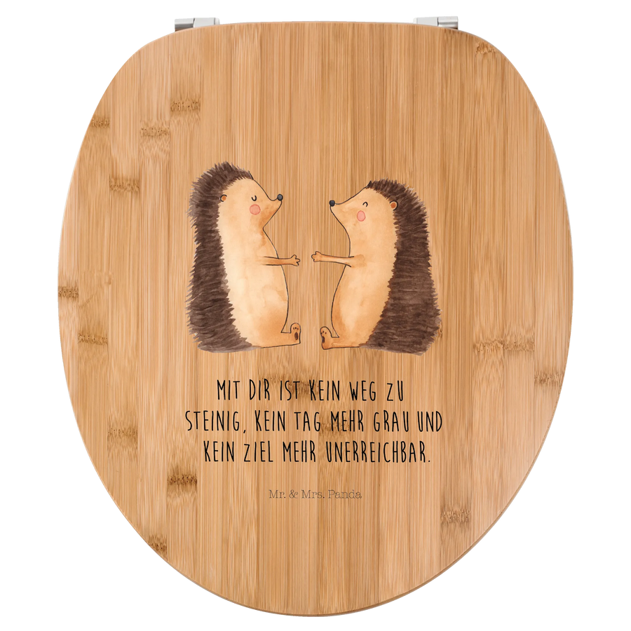 Motif toilet seat Hedgehogs in love - with a saying - Bamboo - Transparent