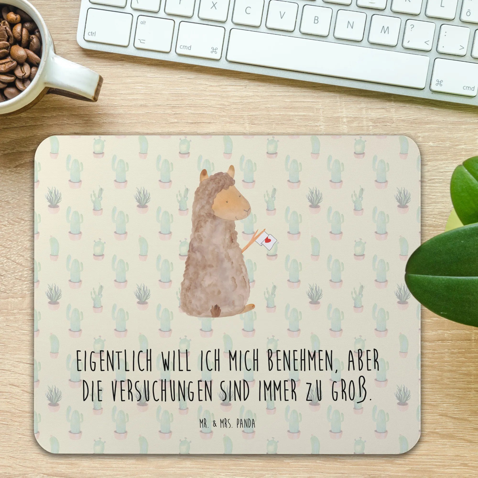 Mouse mat alpaca banner - with saying - Cactus Green