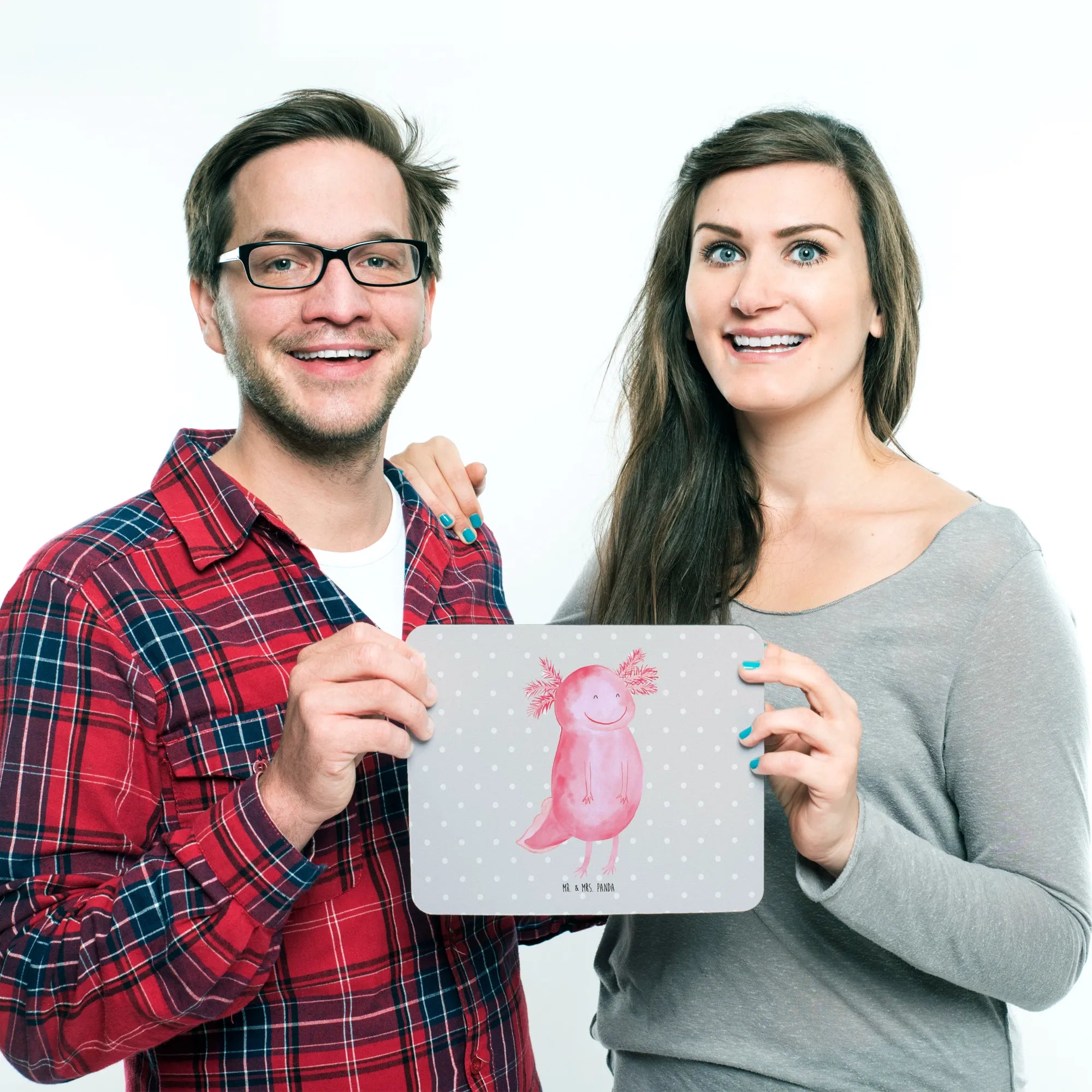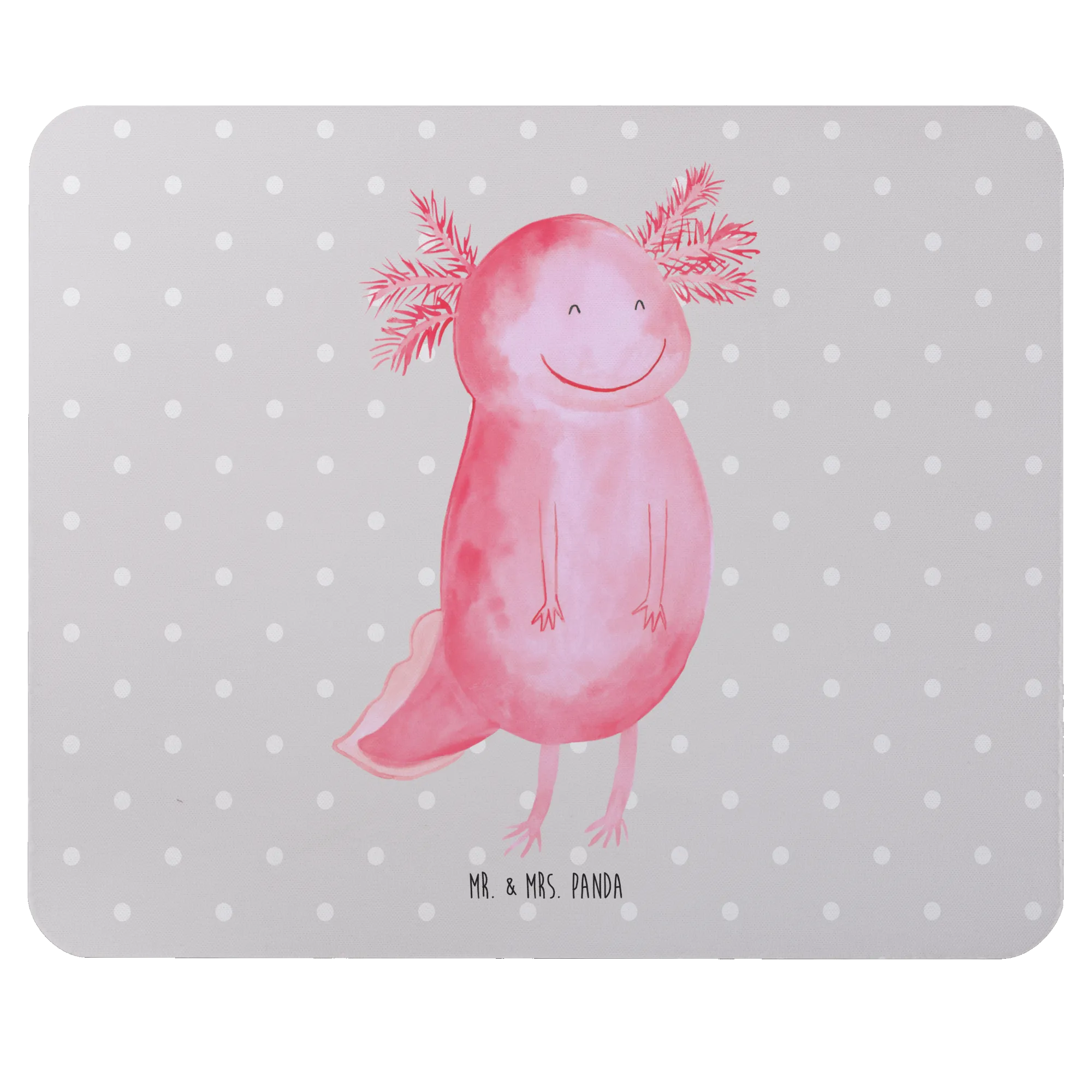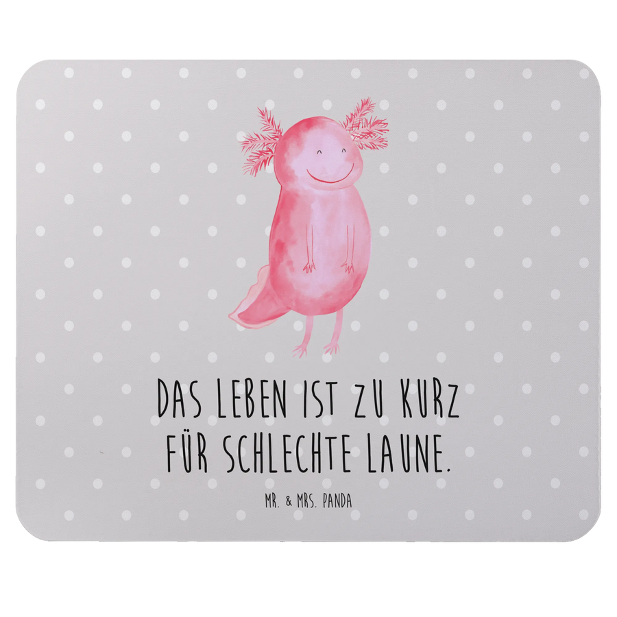 Mouse mat axolotl Happy - with a saying - Pastel Gray